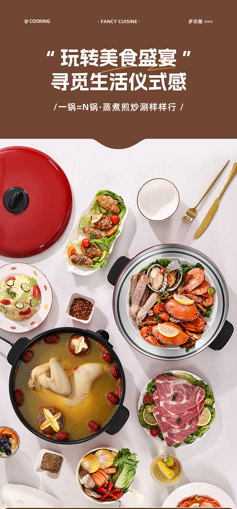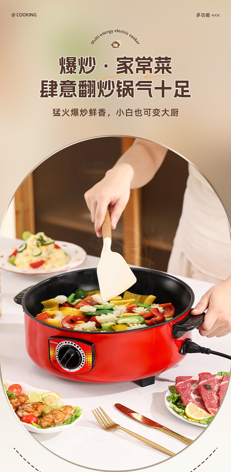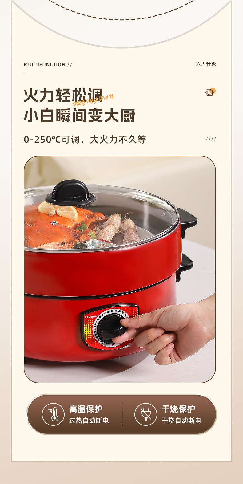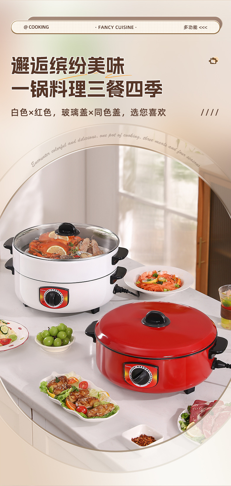 电煮锅多功能宿舍学生不粘锅家用蒸锅电火锅带蒸格蒸煮一体锅批发
