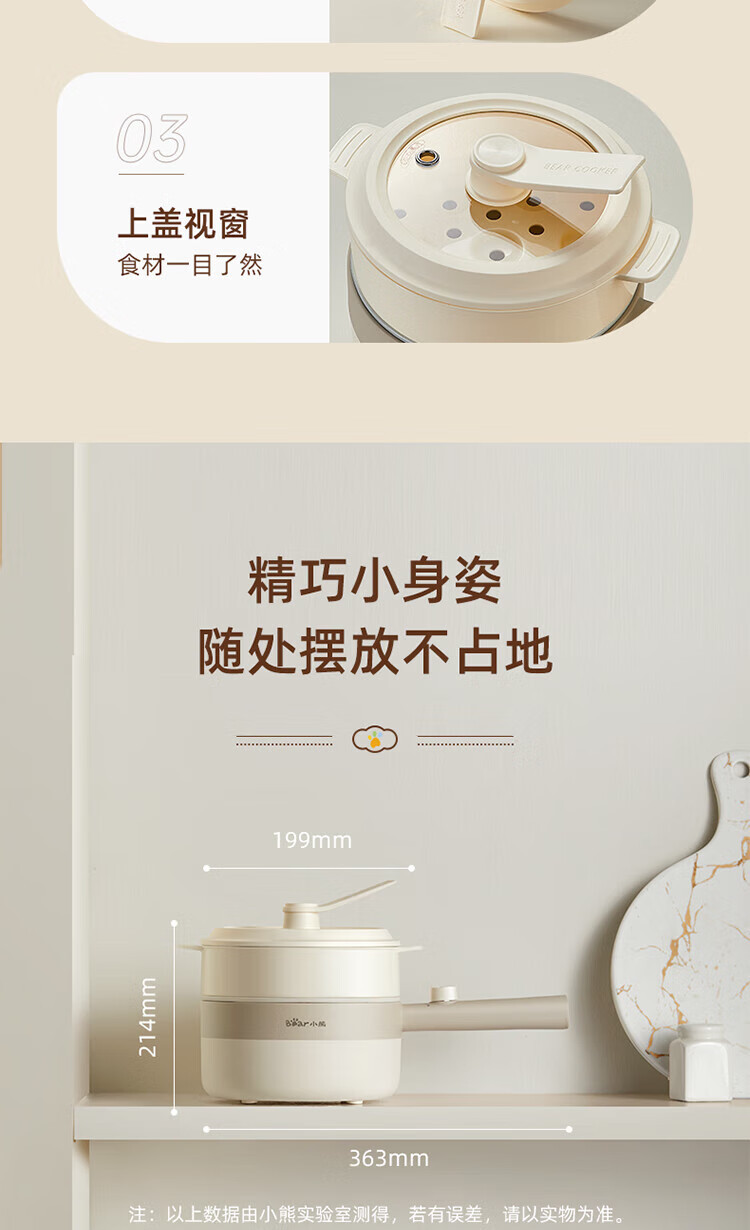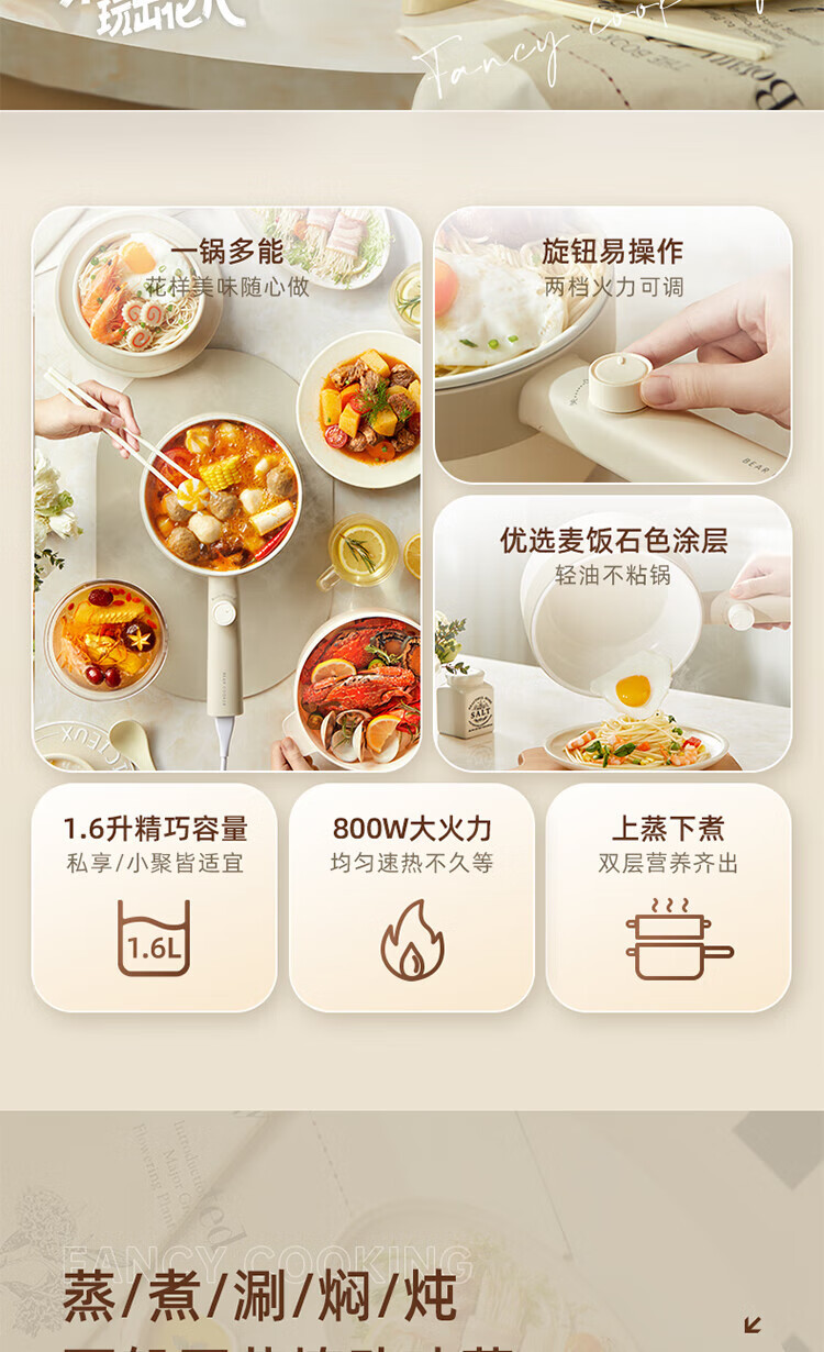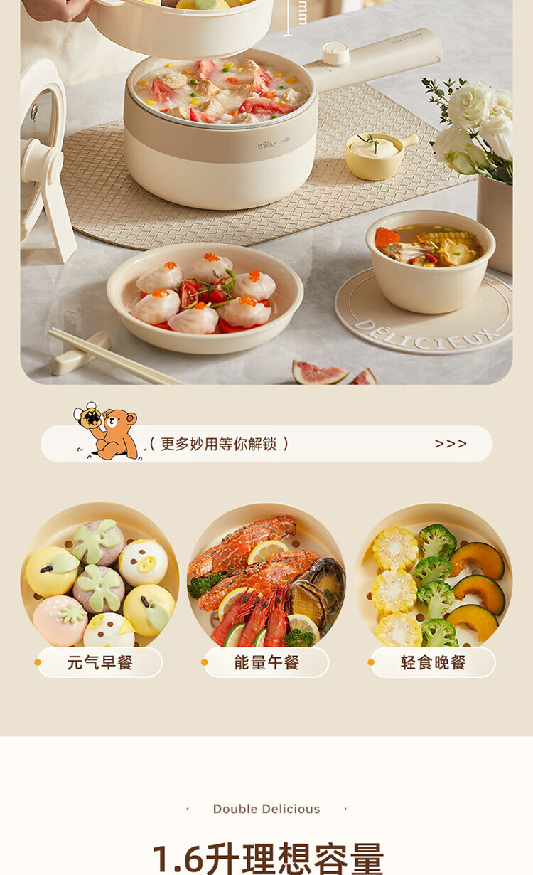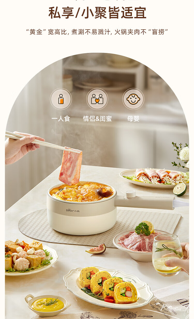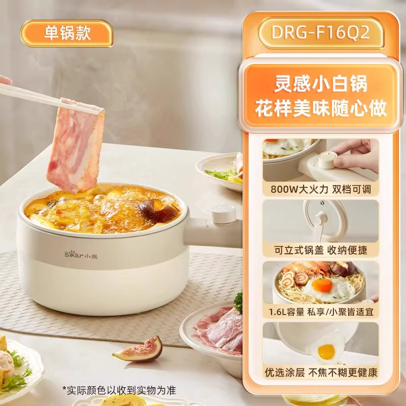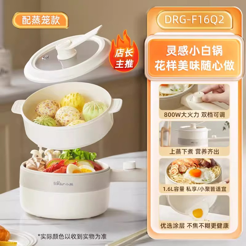 小熊电煮锅家用宿舍学生锅电火锅多功能蒸煮一体锅迷你 DRG-F16Q2