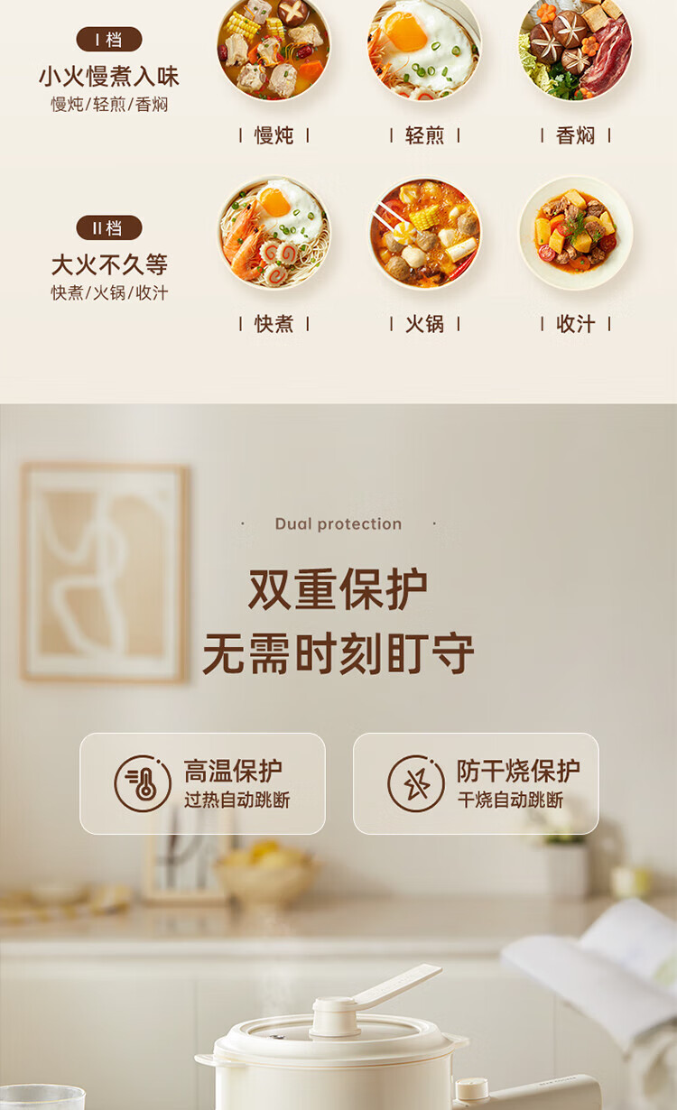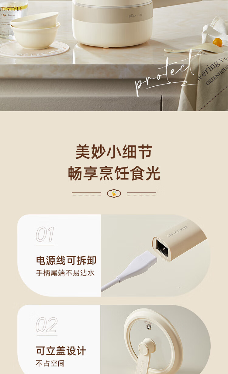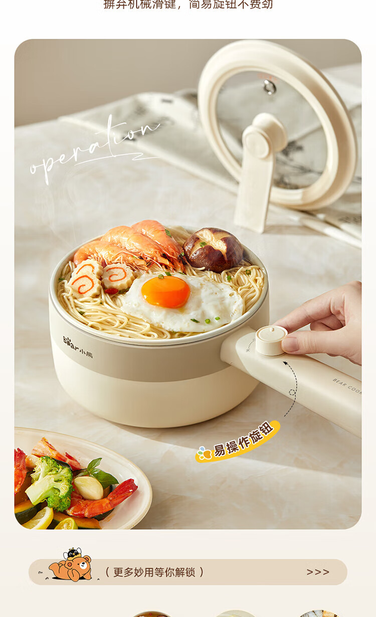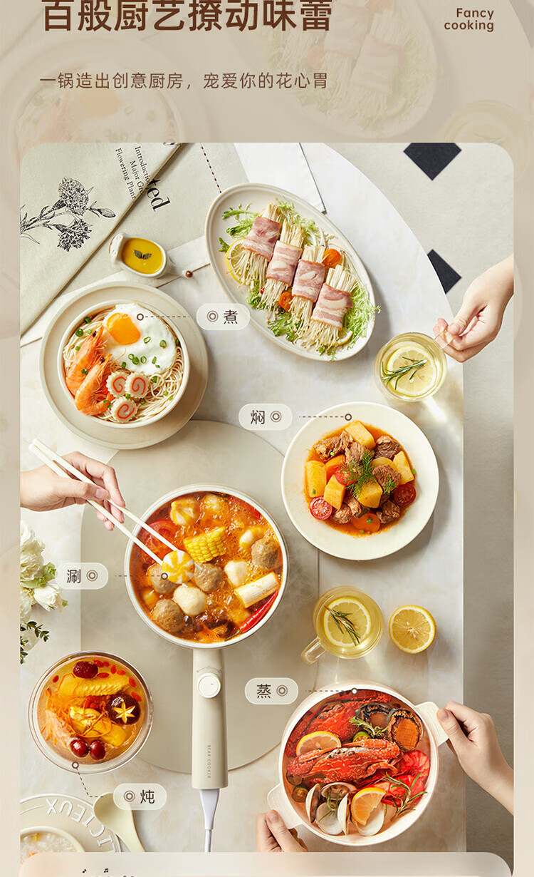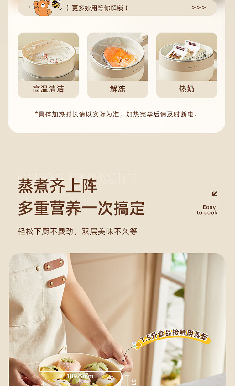 小熊电煮锅家用宿舍学生锅电火锅多功能蒸煮一体锅迷你 DRG-F16Q2