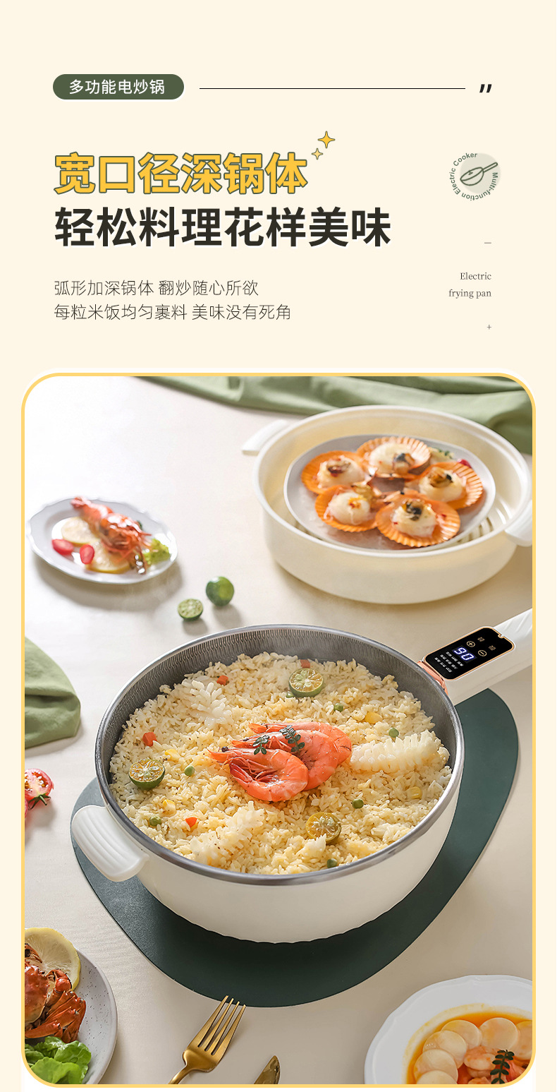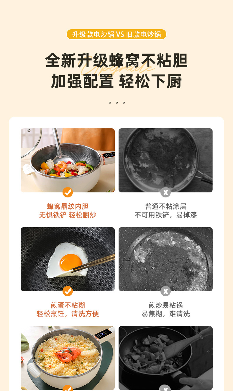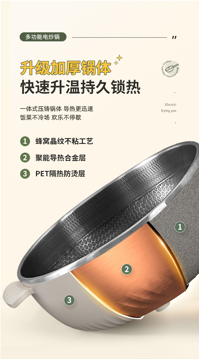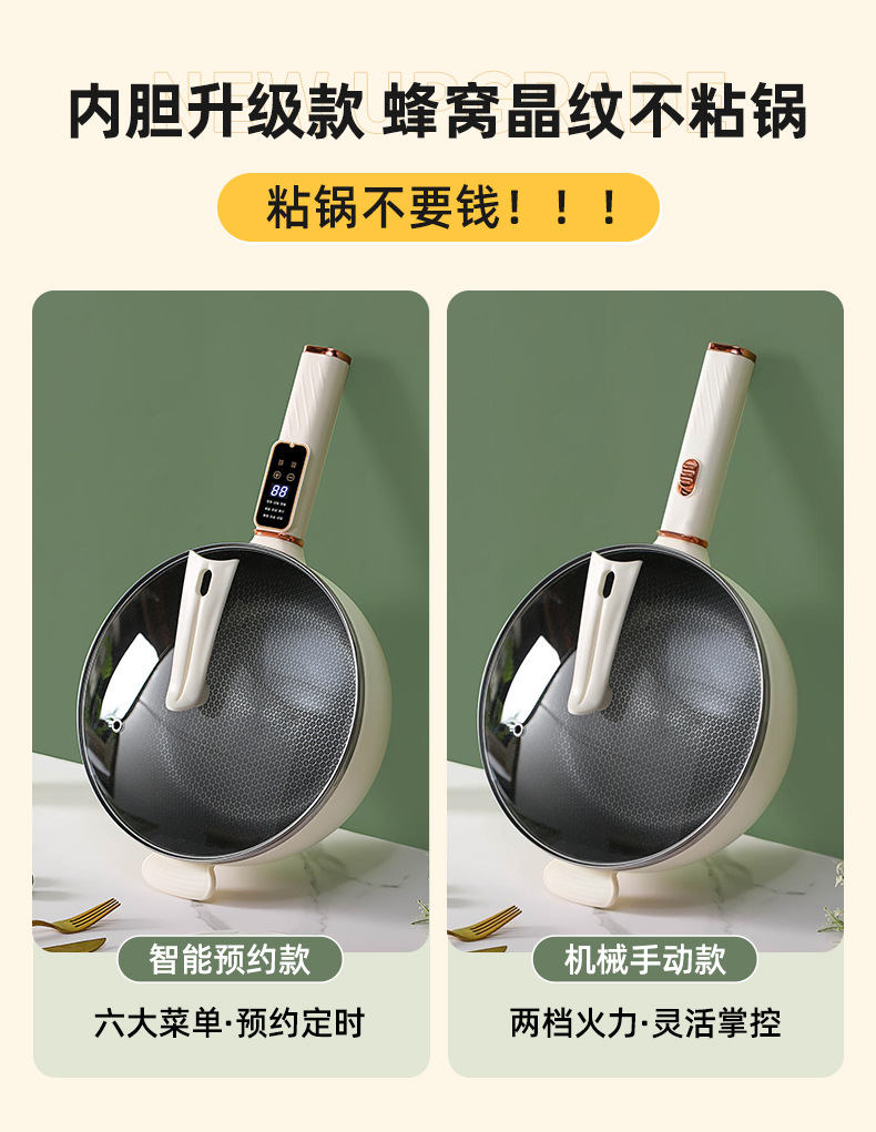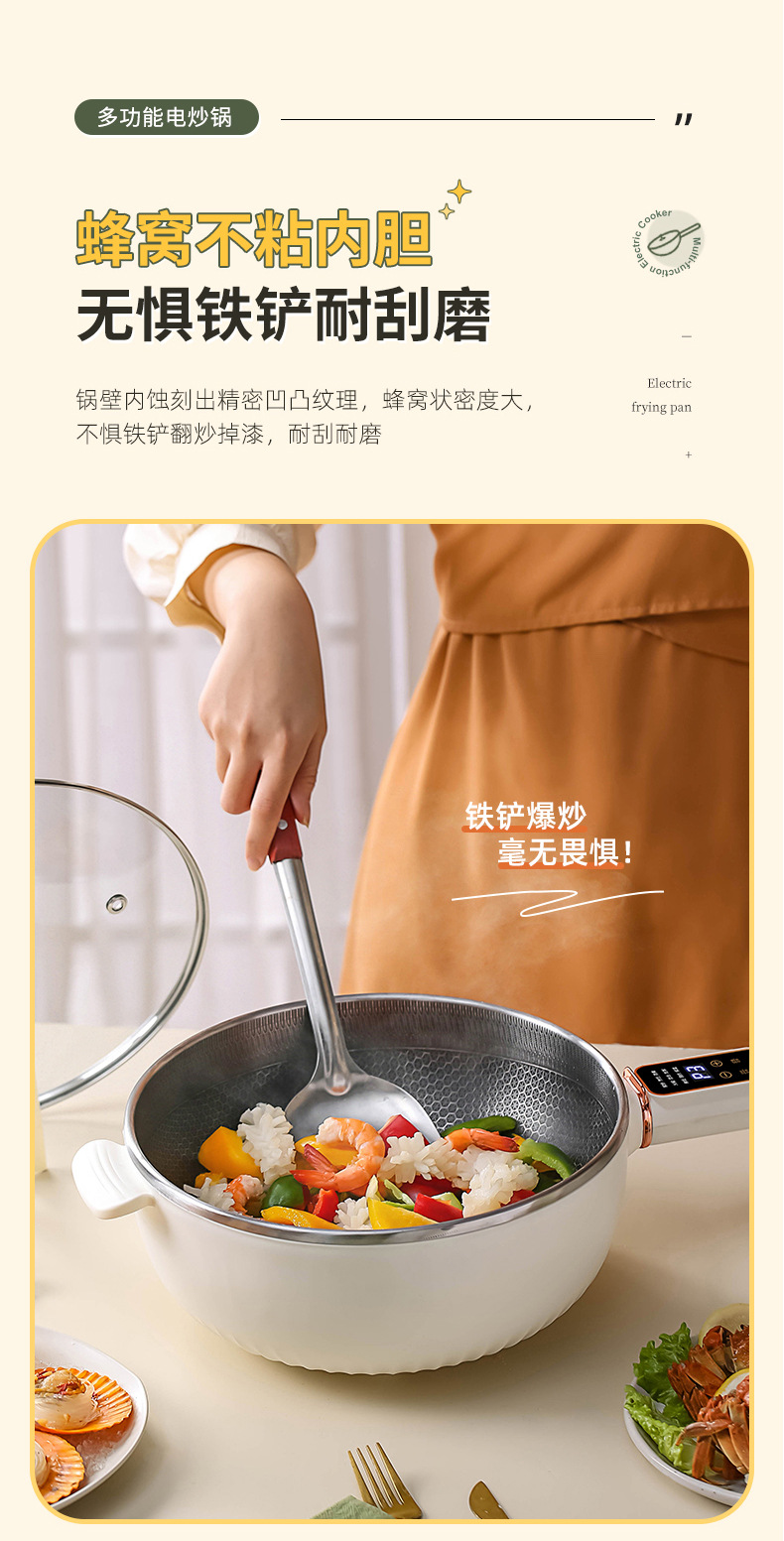 电炒锅多能功一体锅蜂窝内胆宿舍家用电煮不粘锅蒸煮煎炒电炒菜锅