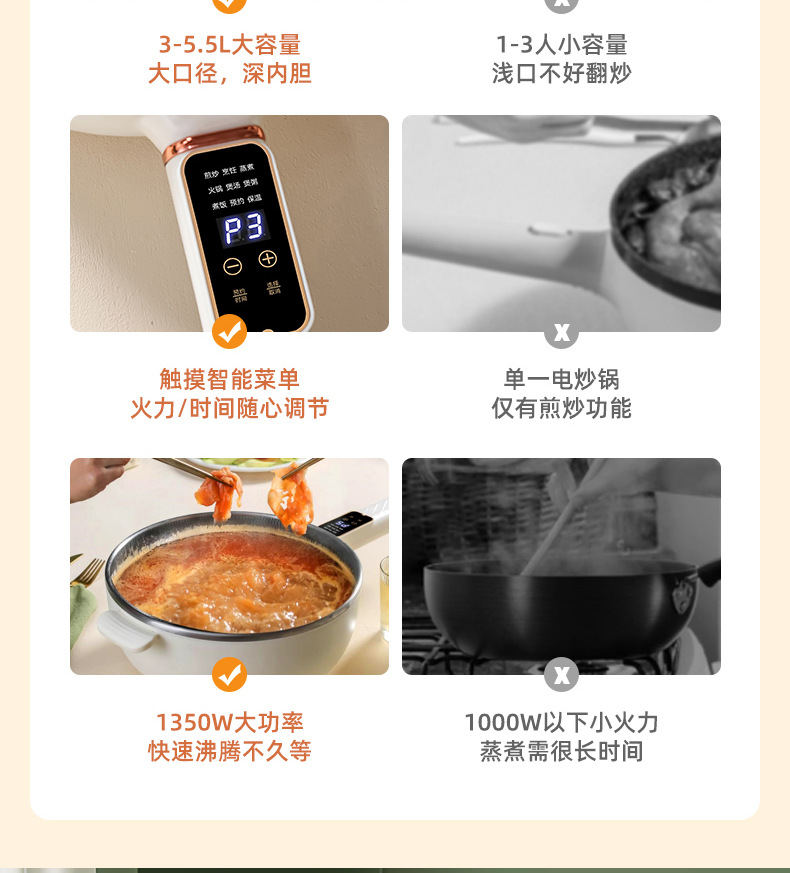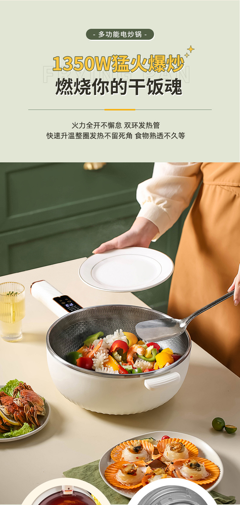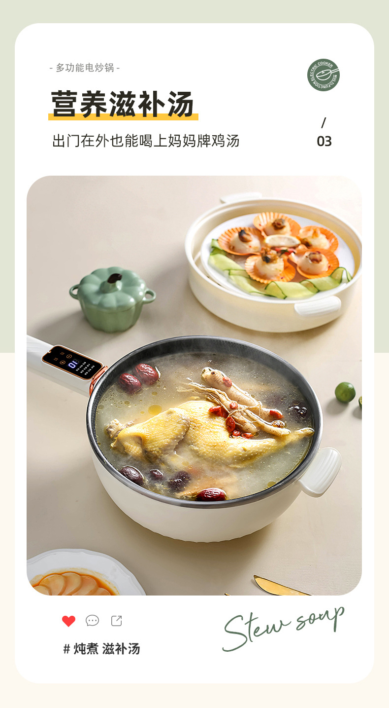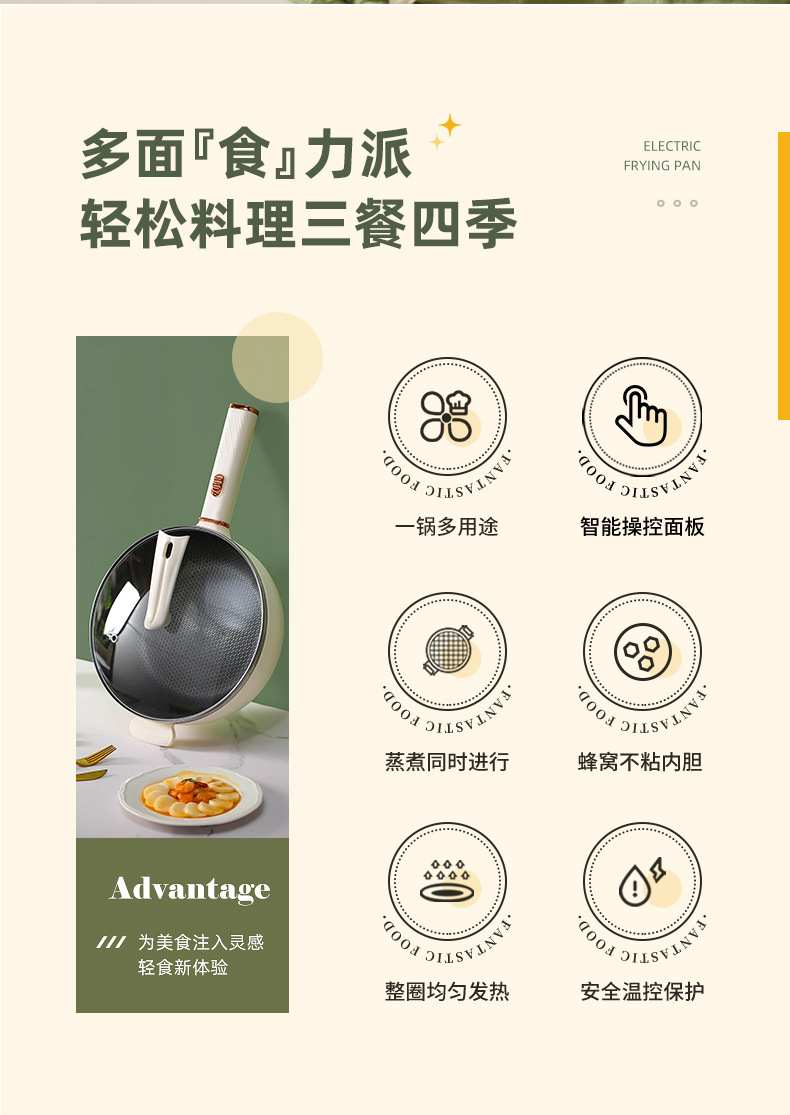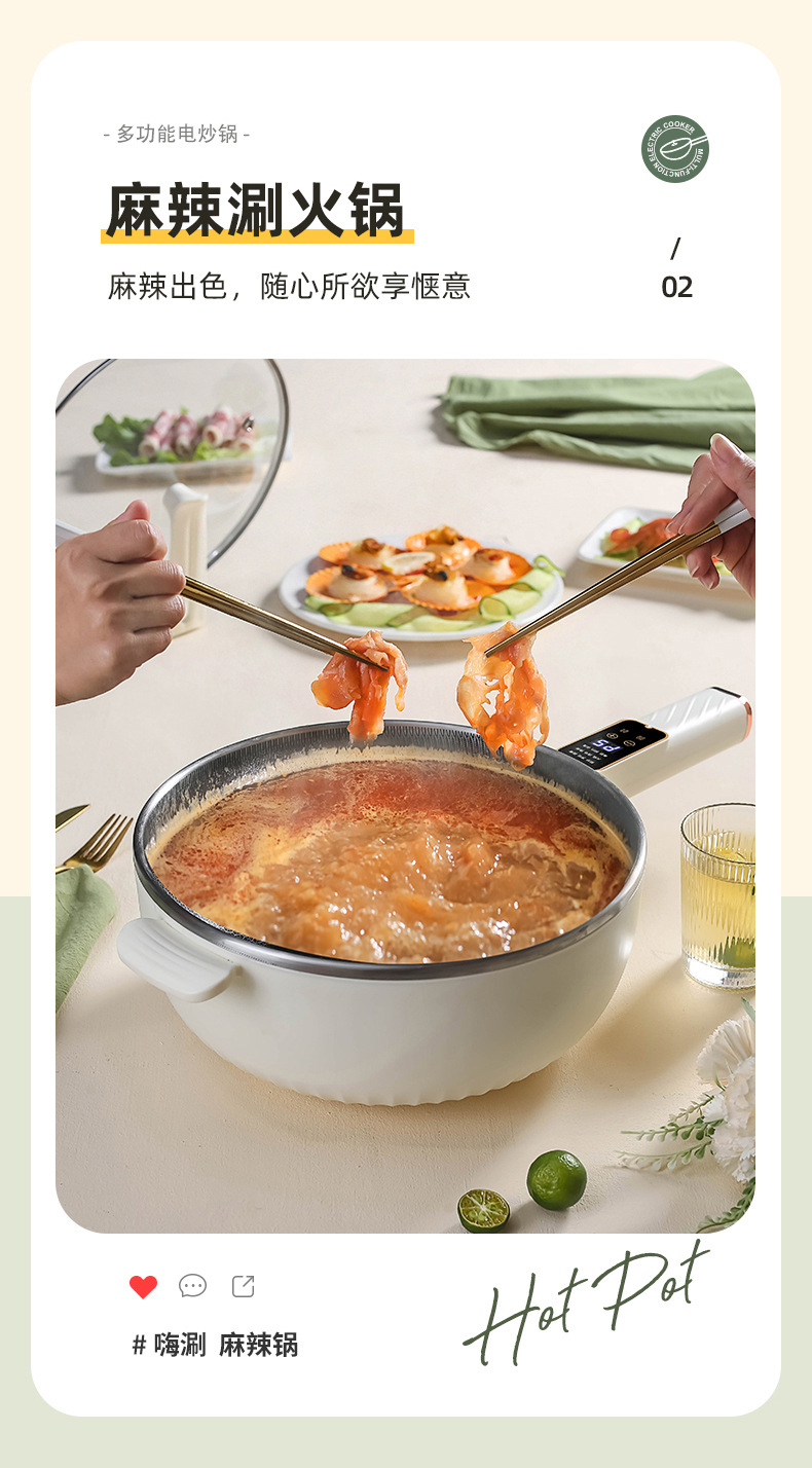 电炒锅多能功一体锅蜂窝内胆宿舍家用电煮不粘锅蒸煮煎炒电炒菜锅