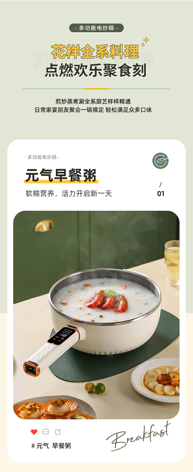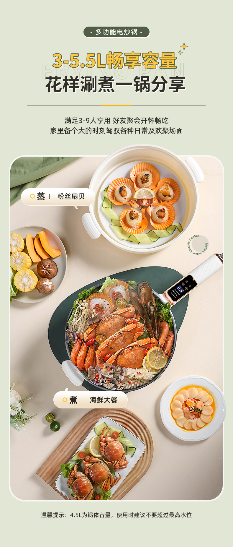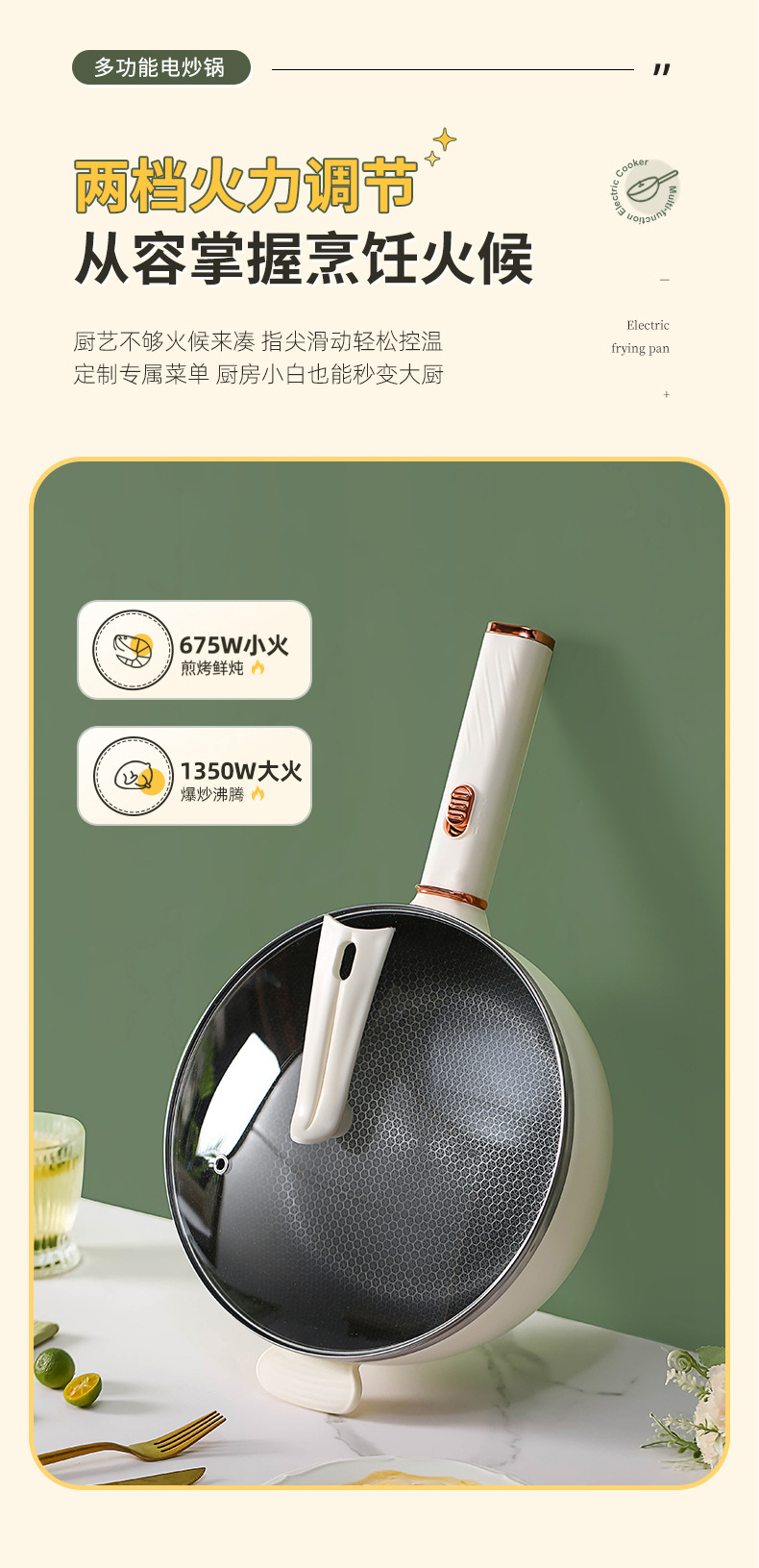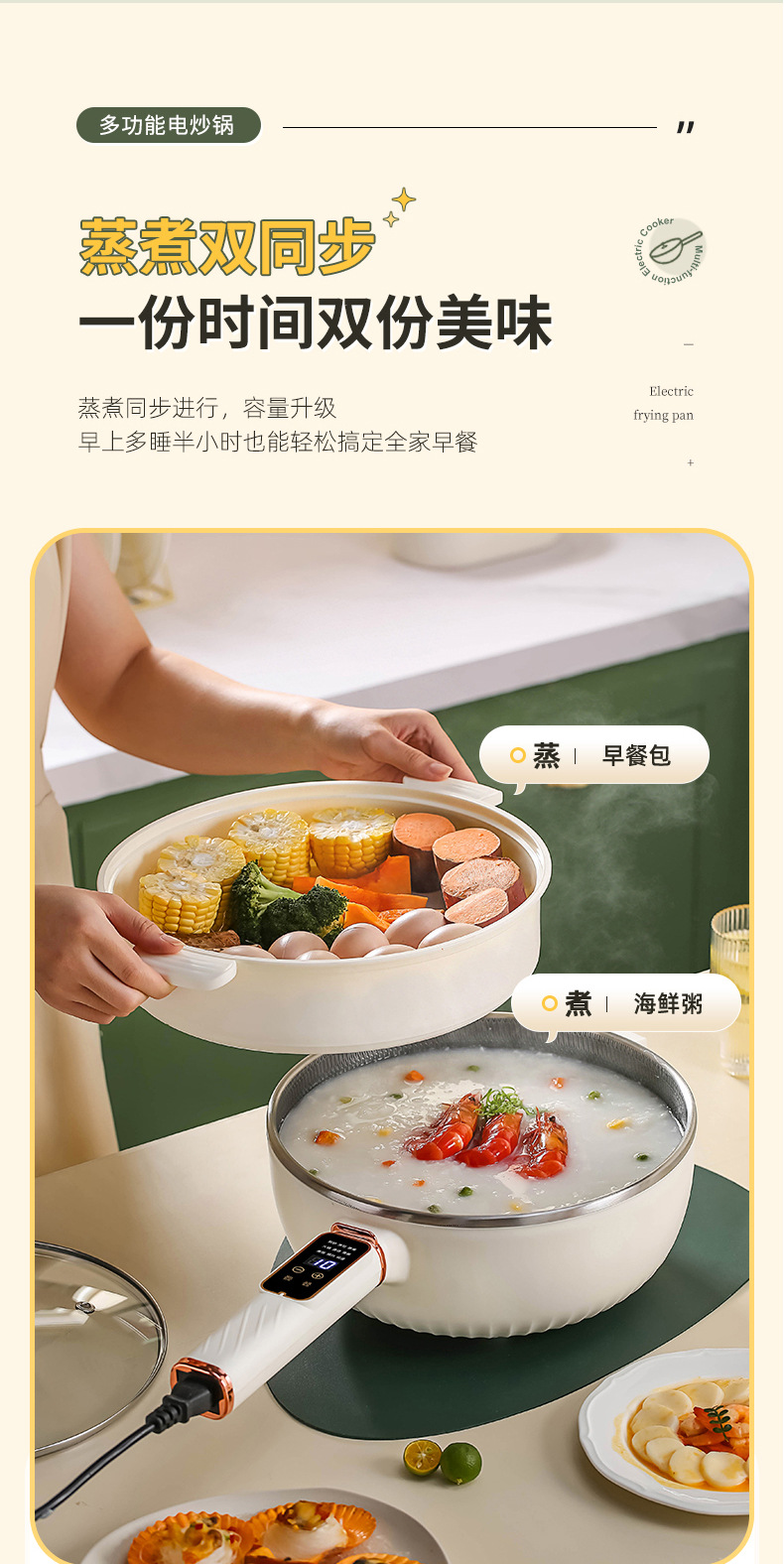 电炒锅多能功一体锅蜂窝内胆宿舍家用电煮不粘锅蒸煮煎炒电炒菜锅