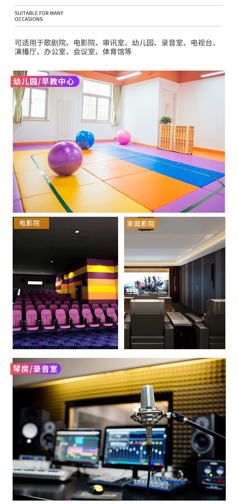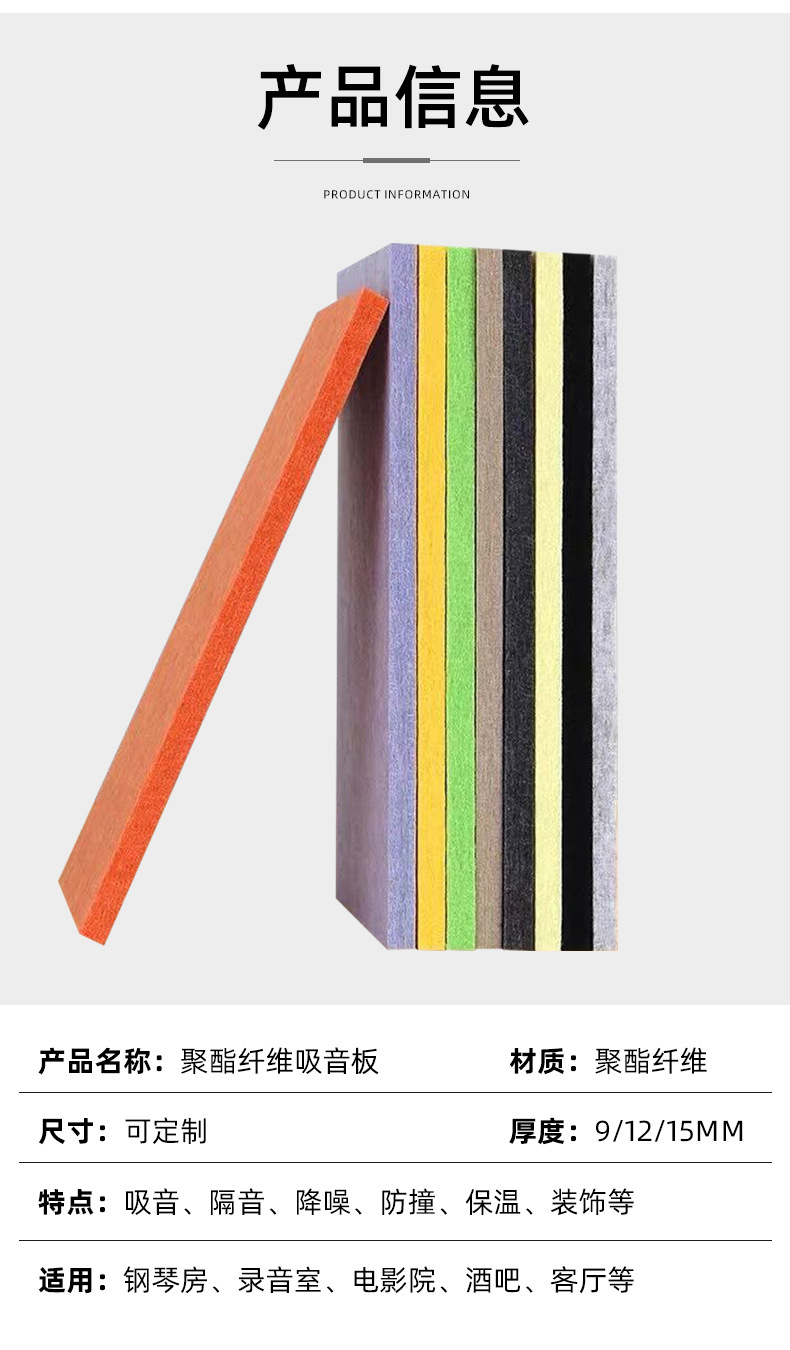 跨境聚脂纤维吸音板自粘背胶隔音板影院琴房鼓房录音棚毛毡板定制