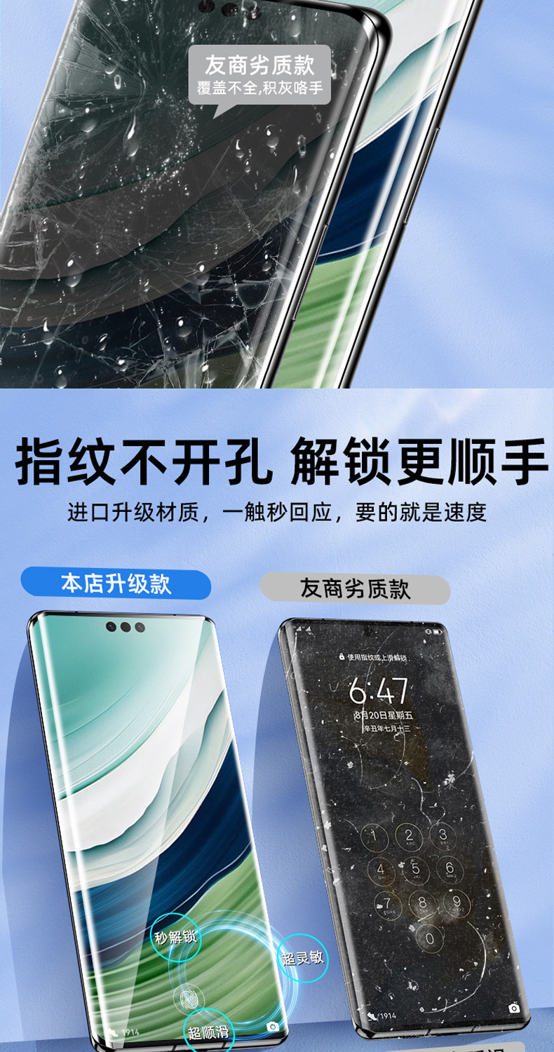 适用华为mate60pro曲屏钢化膜mate60rs秒贴膜mt60全屏超清手机膜