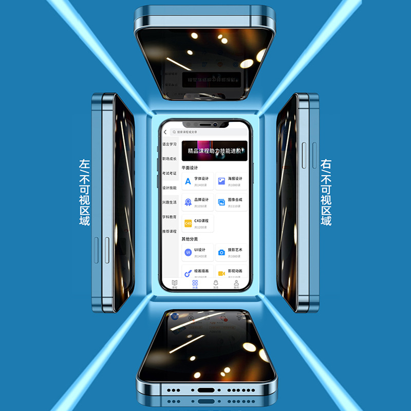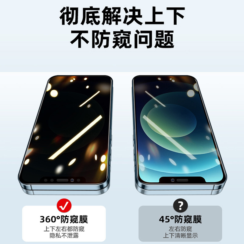 苹果17pro钢化膜360防偷窥iphone15全屏13promax磨砂16手机膜适用