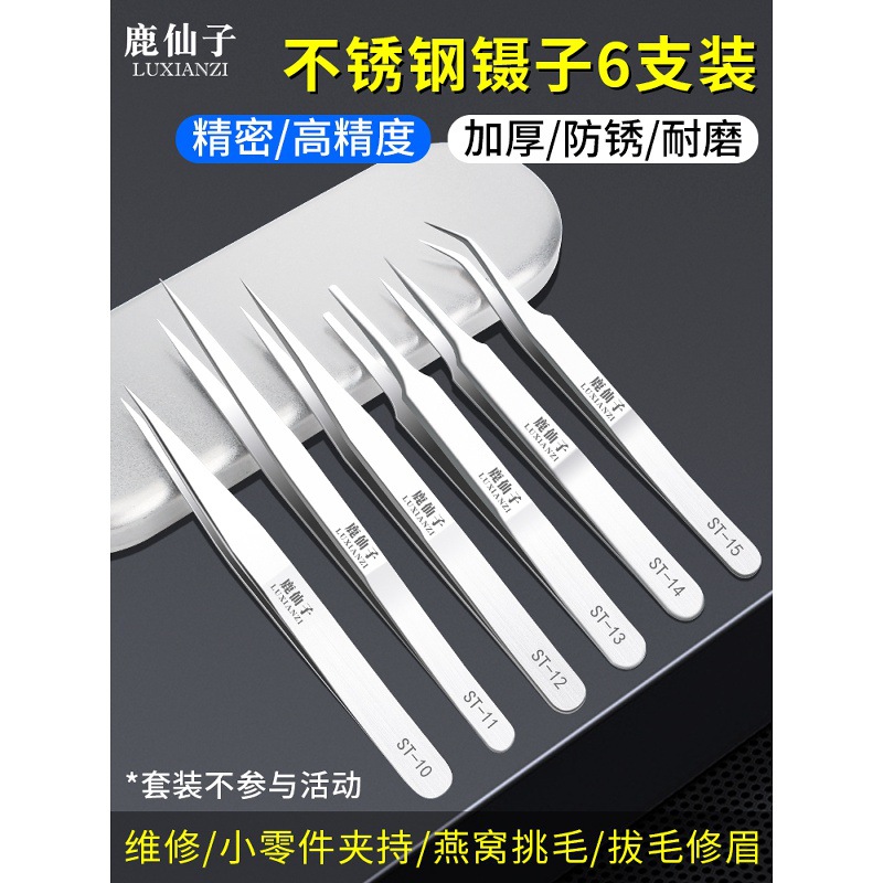 鹿仙子镊子手机维修拆机专用夹子电子芯片贴片精密小工具套装弯头