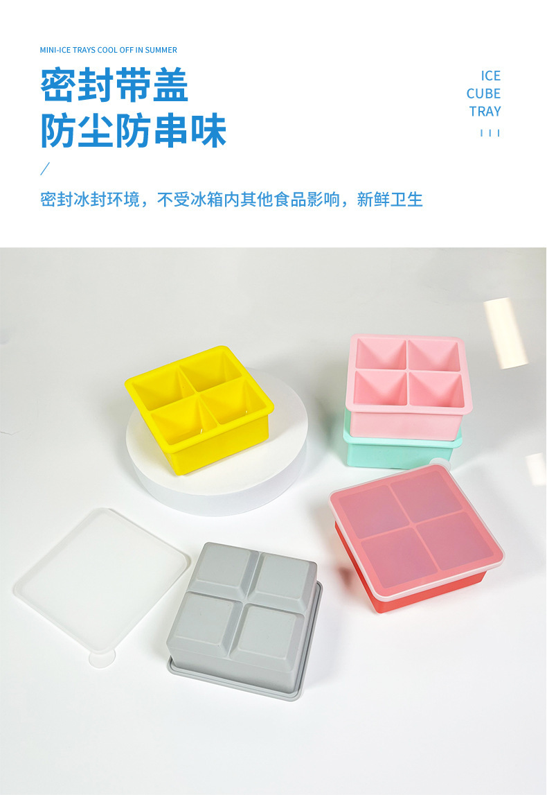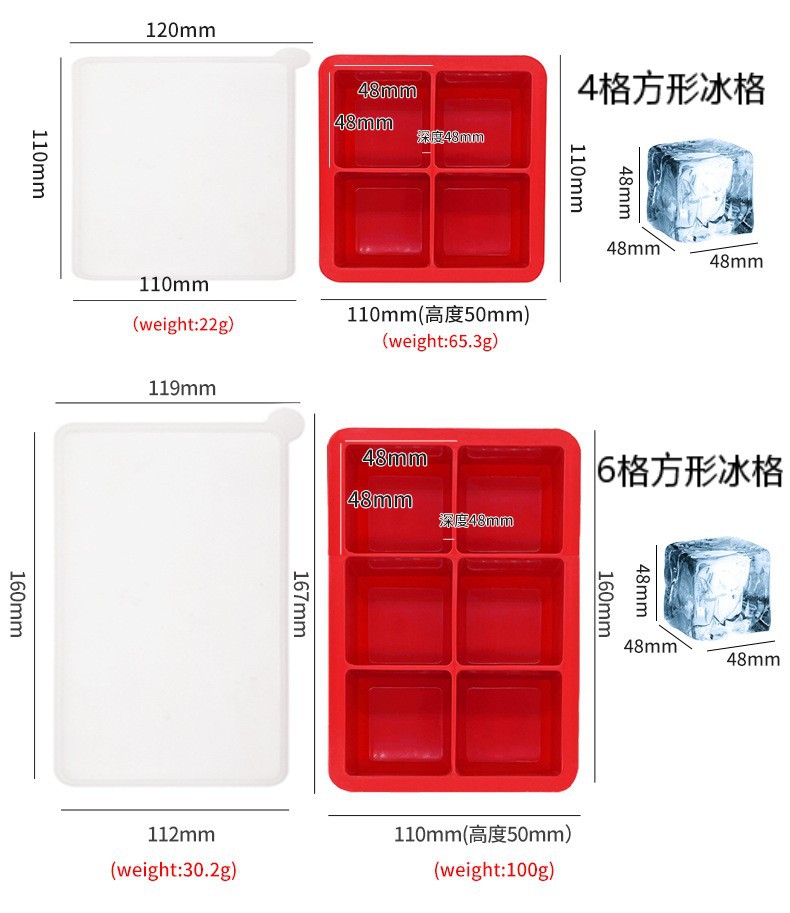 亚马逊热销硅胶冰格4格6格8格速制冰冻易脱模冰块模具冰格模具