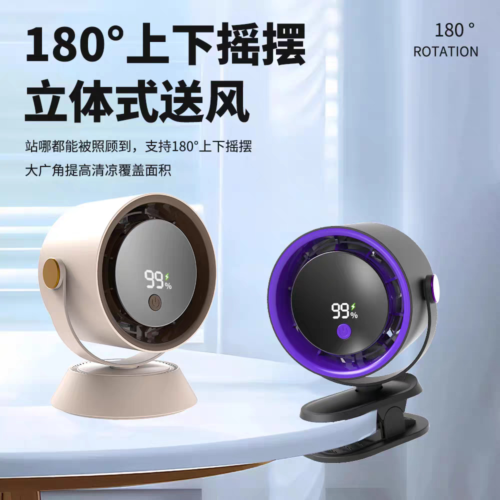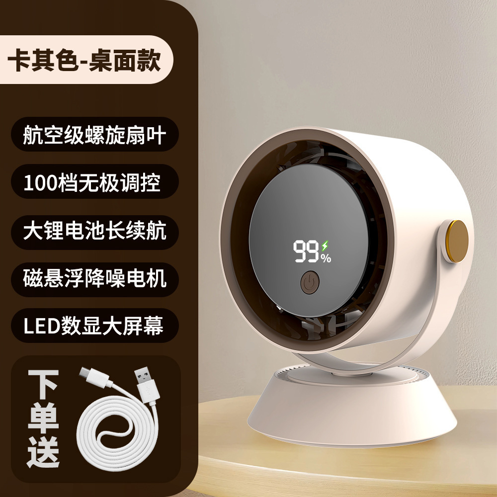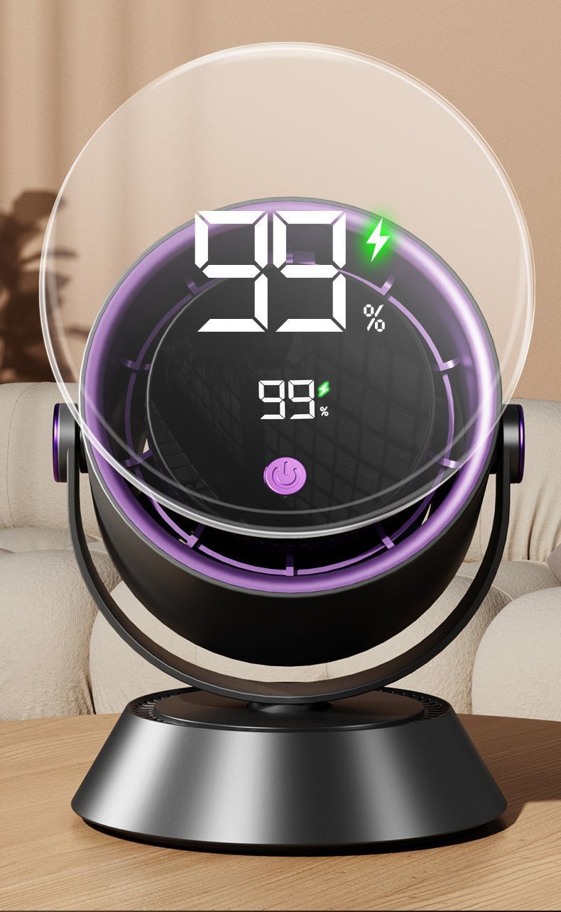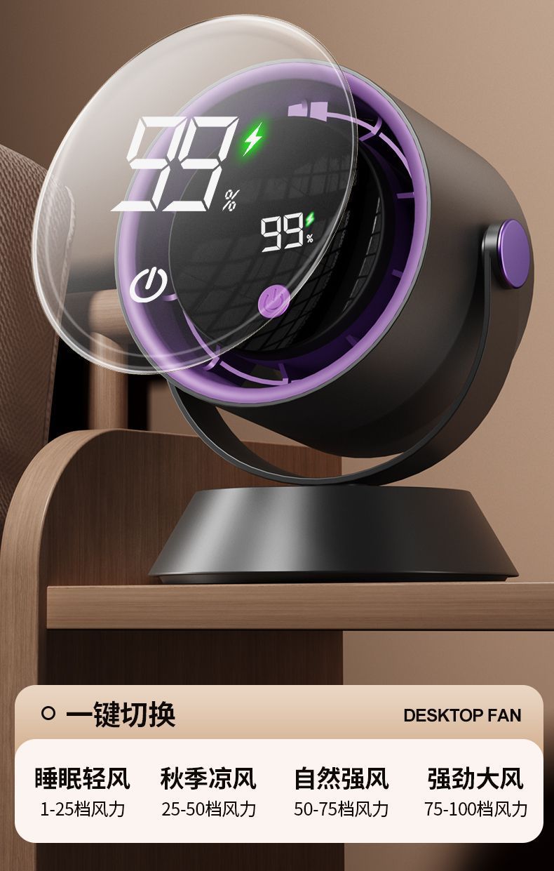 风扇桌面超强风力办公室智能数显充电超省电循环风扇涡轮高速现货