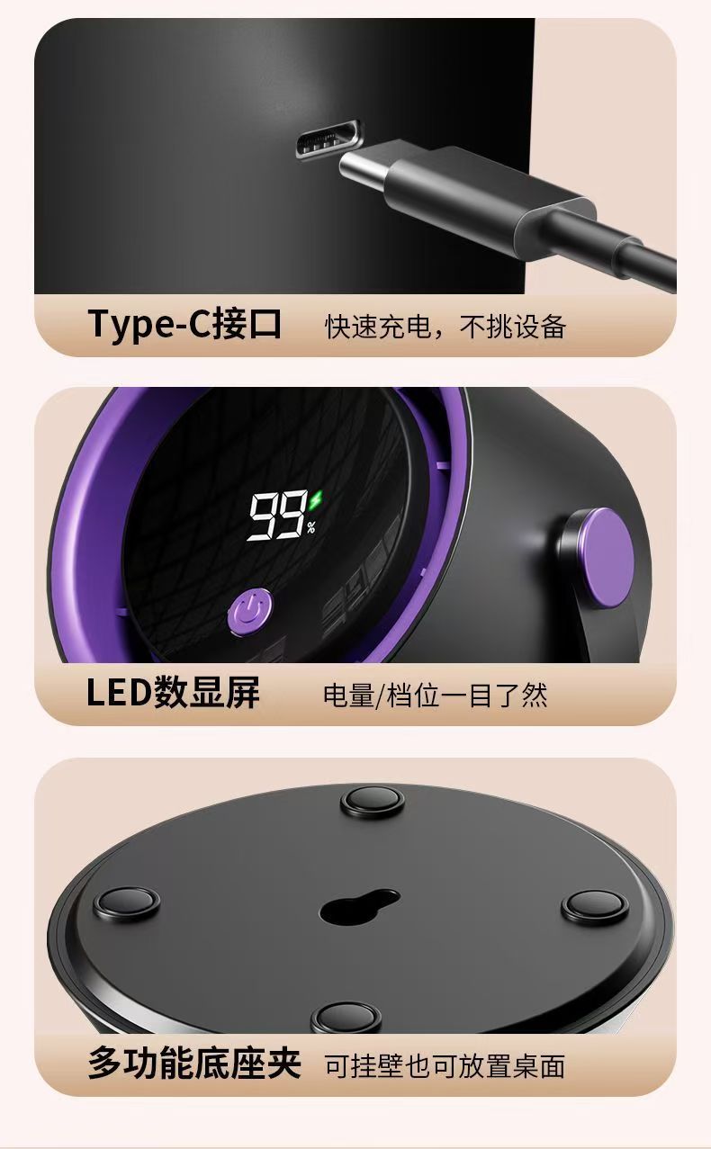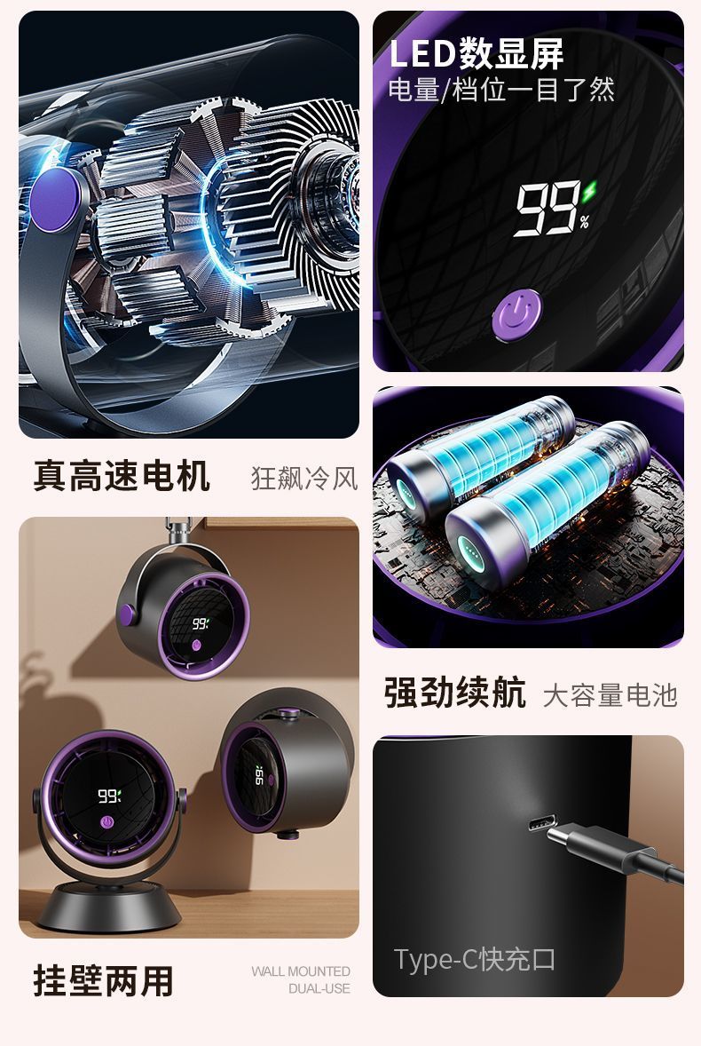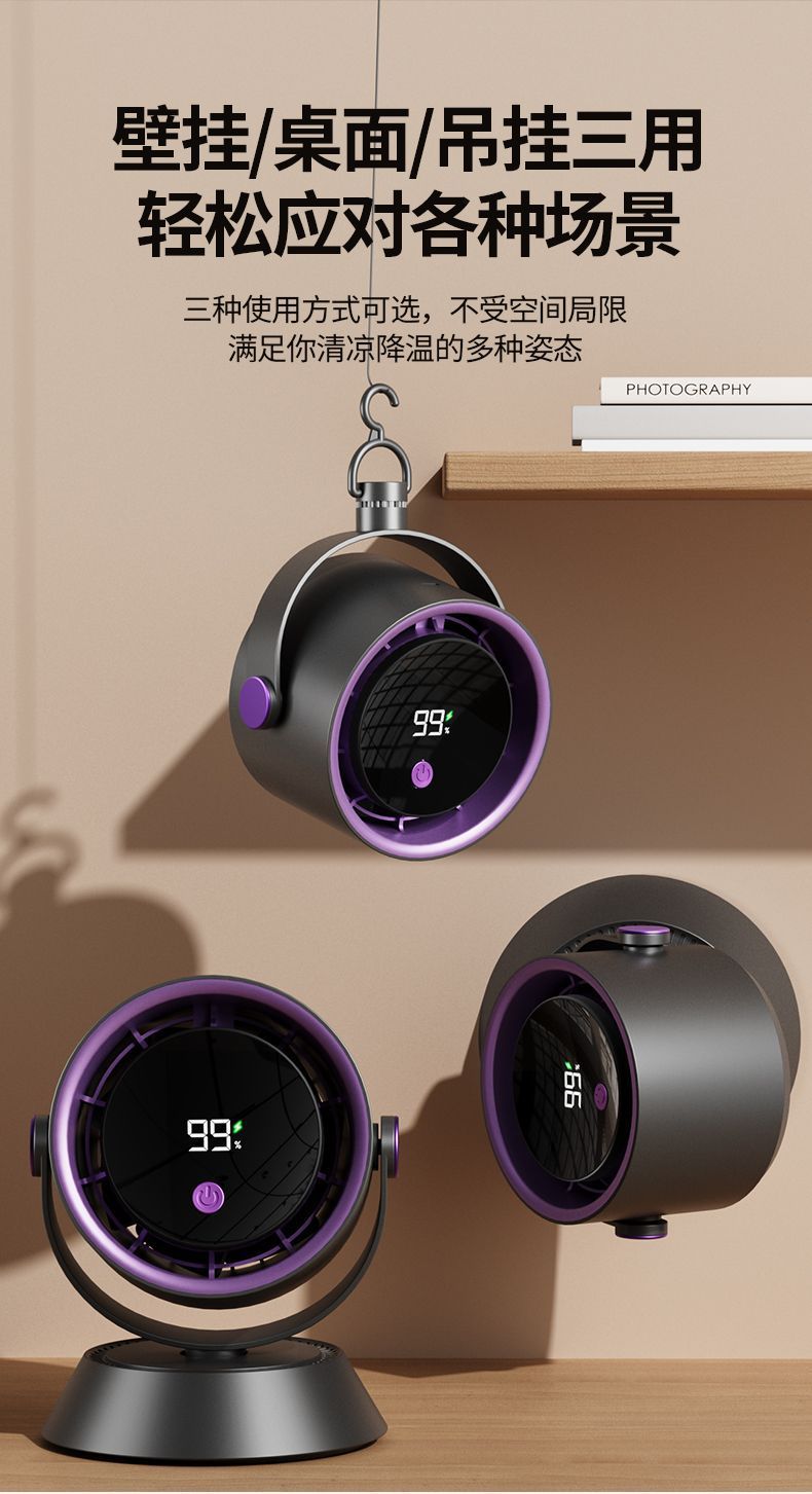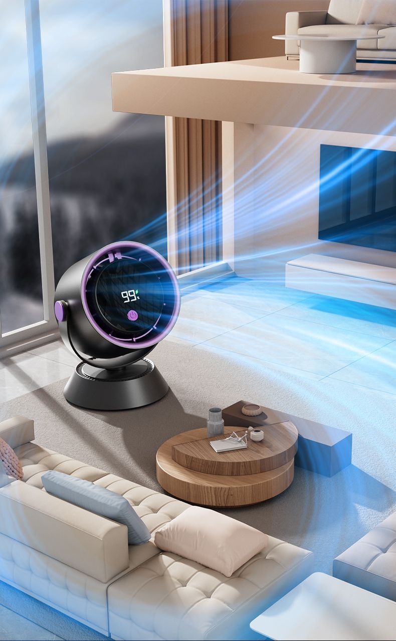 风扇桌面超强风力办公室智能数显充电超省电循环风扇涡轮高速现货