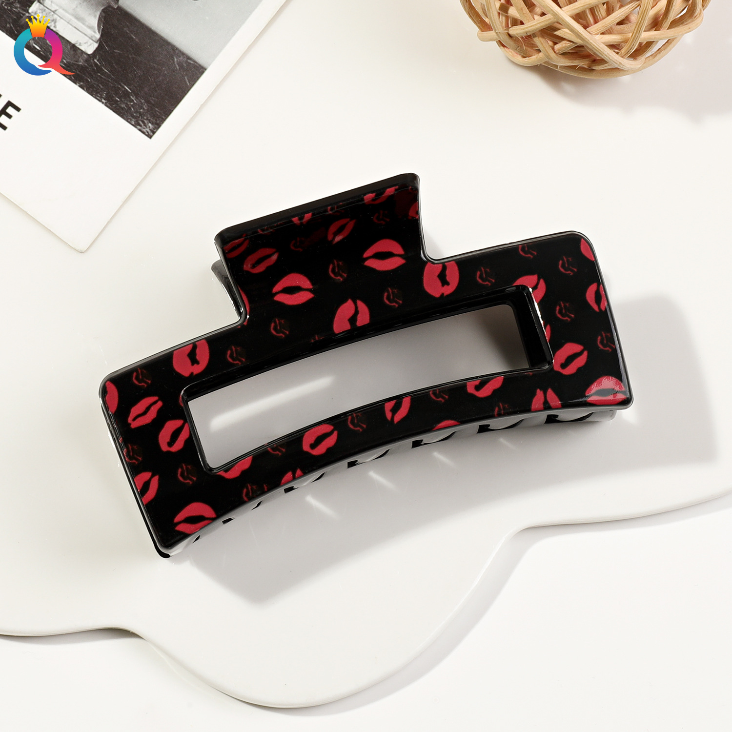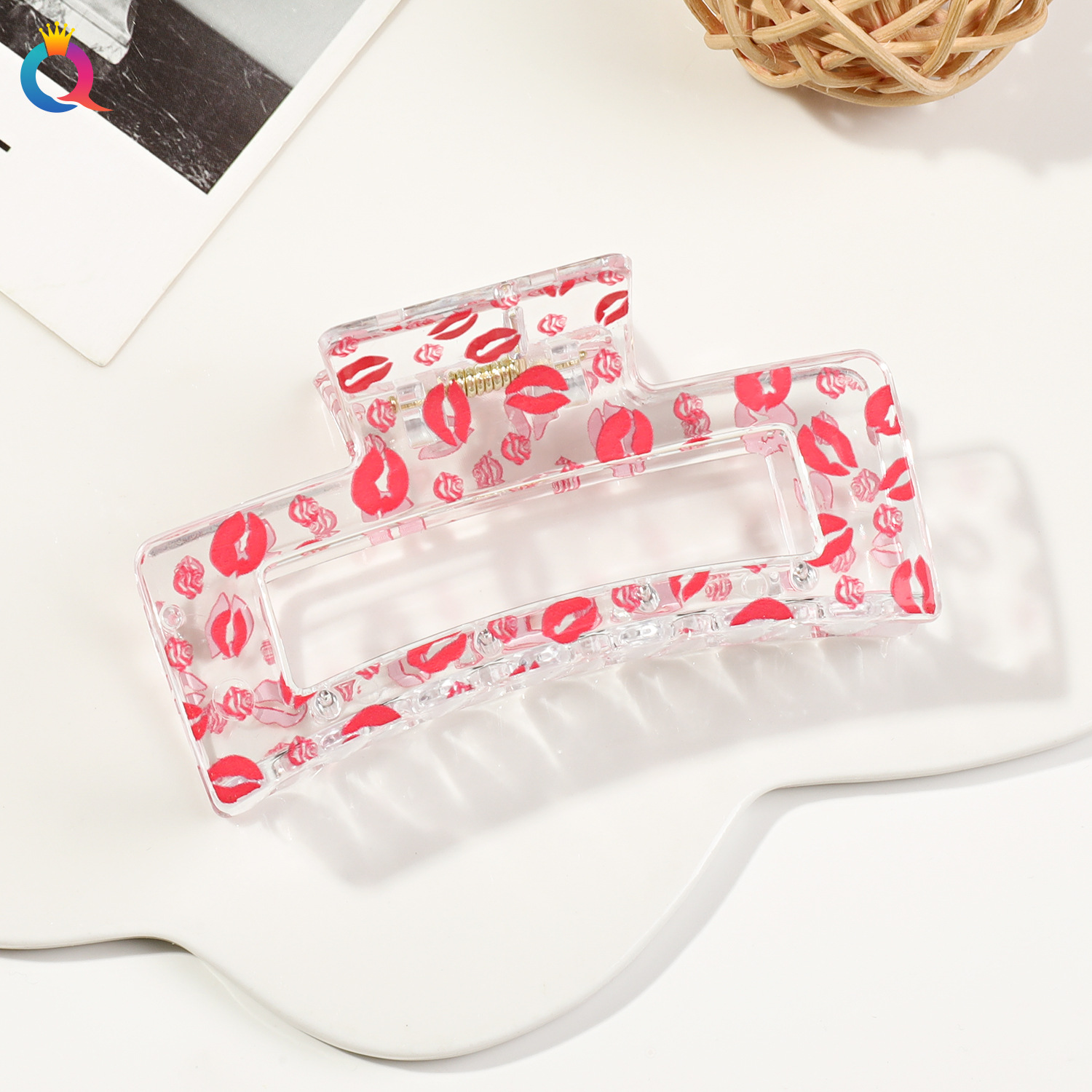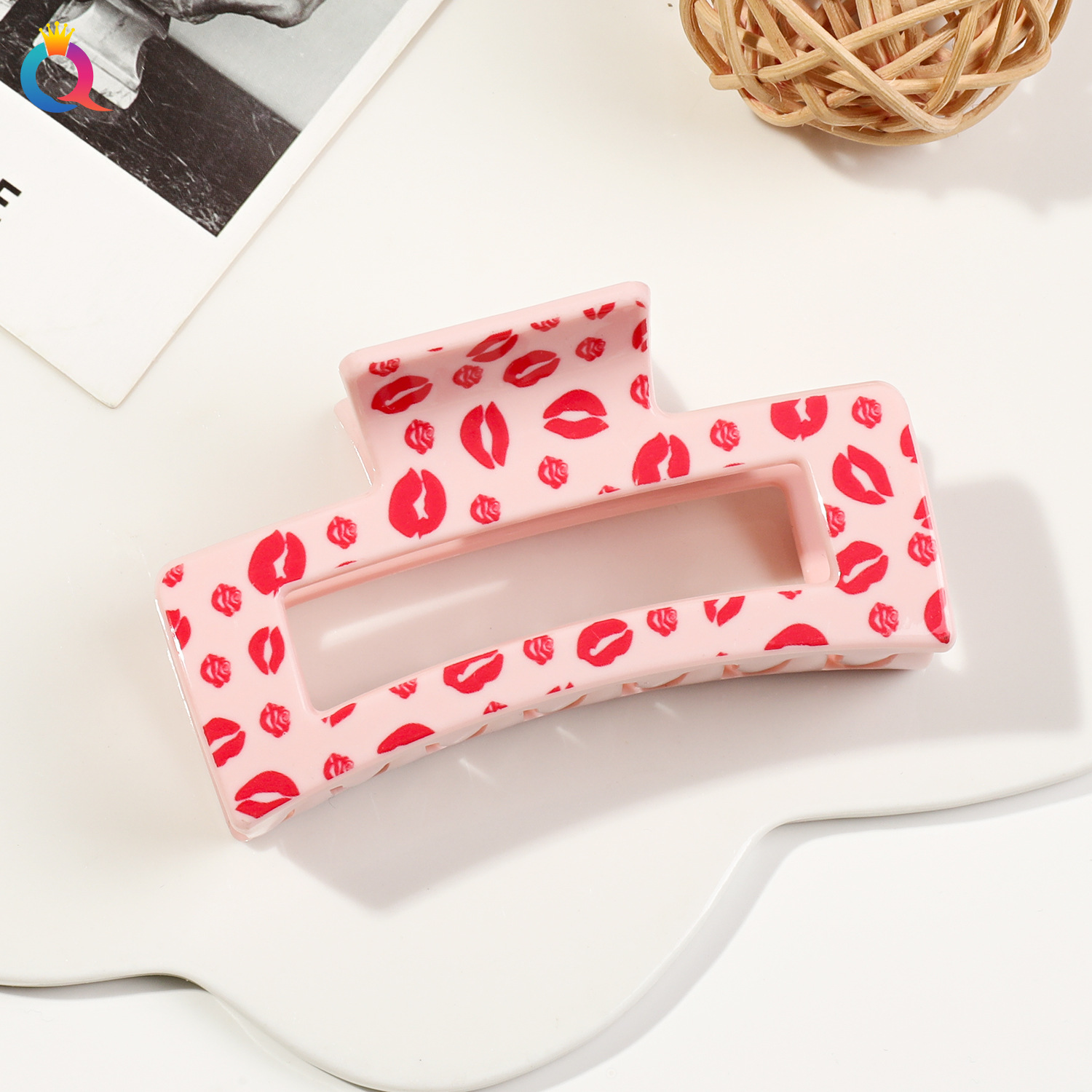 奇阅跨境情人节爱心发夹简约印花盘发抓夹高级感鲨鱼夹子发饰批发