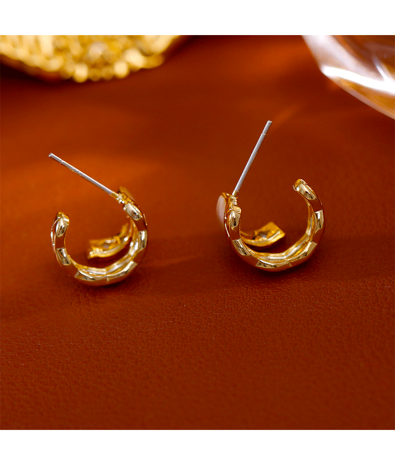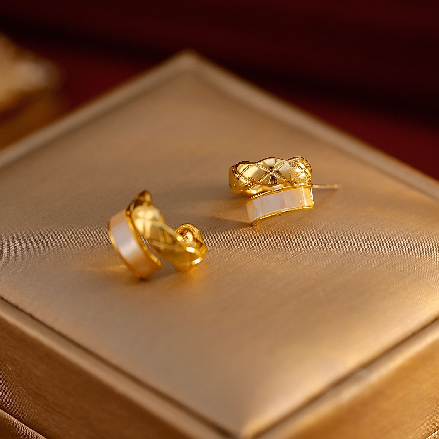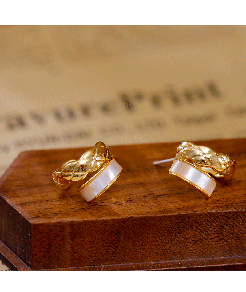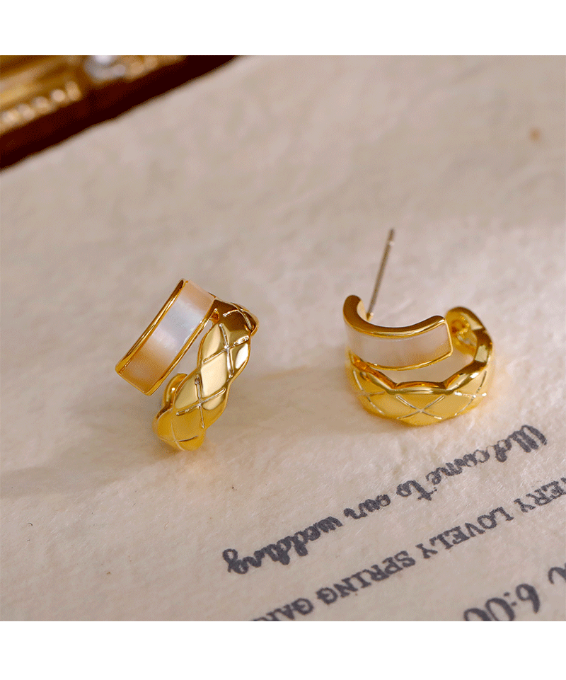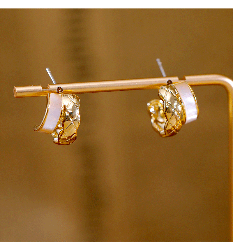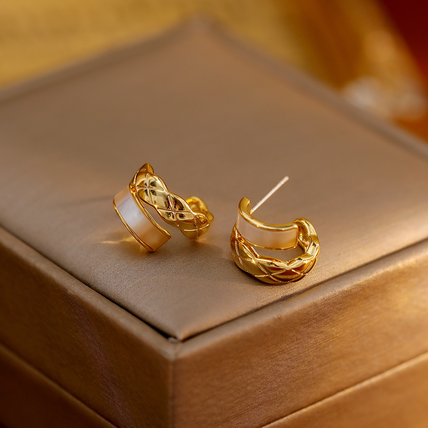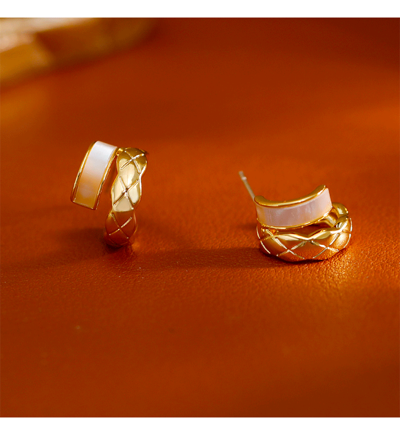 法式气质弧形纹天然贝壳耳环女 925银针耳钉时尚轻奢高级感耳饰