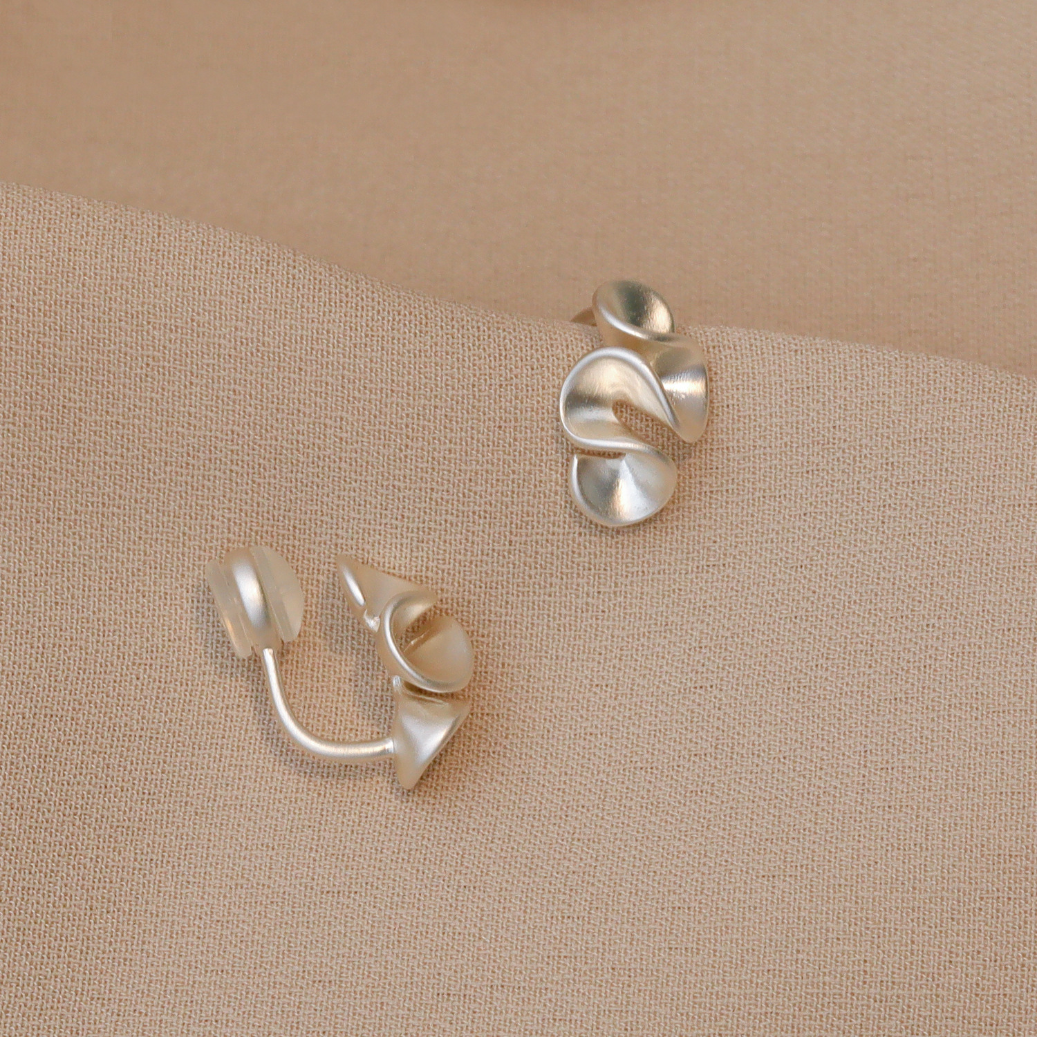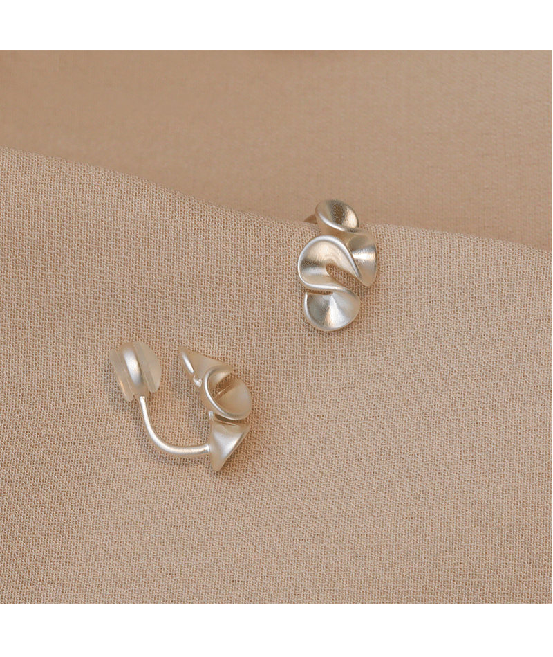 日韩小众亮银奶油花几何耳饰 无耳洞女硅胶耳夹无痛一体耳夹百搭