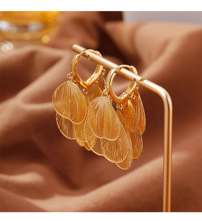 气质爱心耳扣轻奢金属流苏片片耳环耳钉小众设计感秋季度假风耳饰