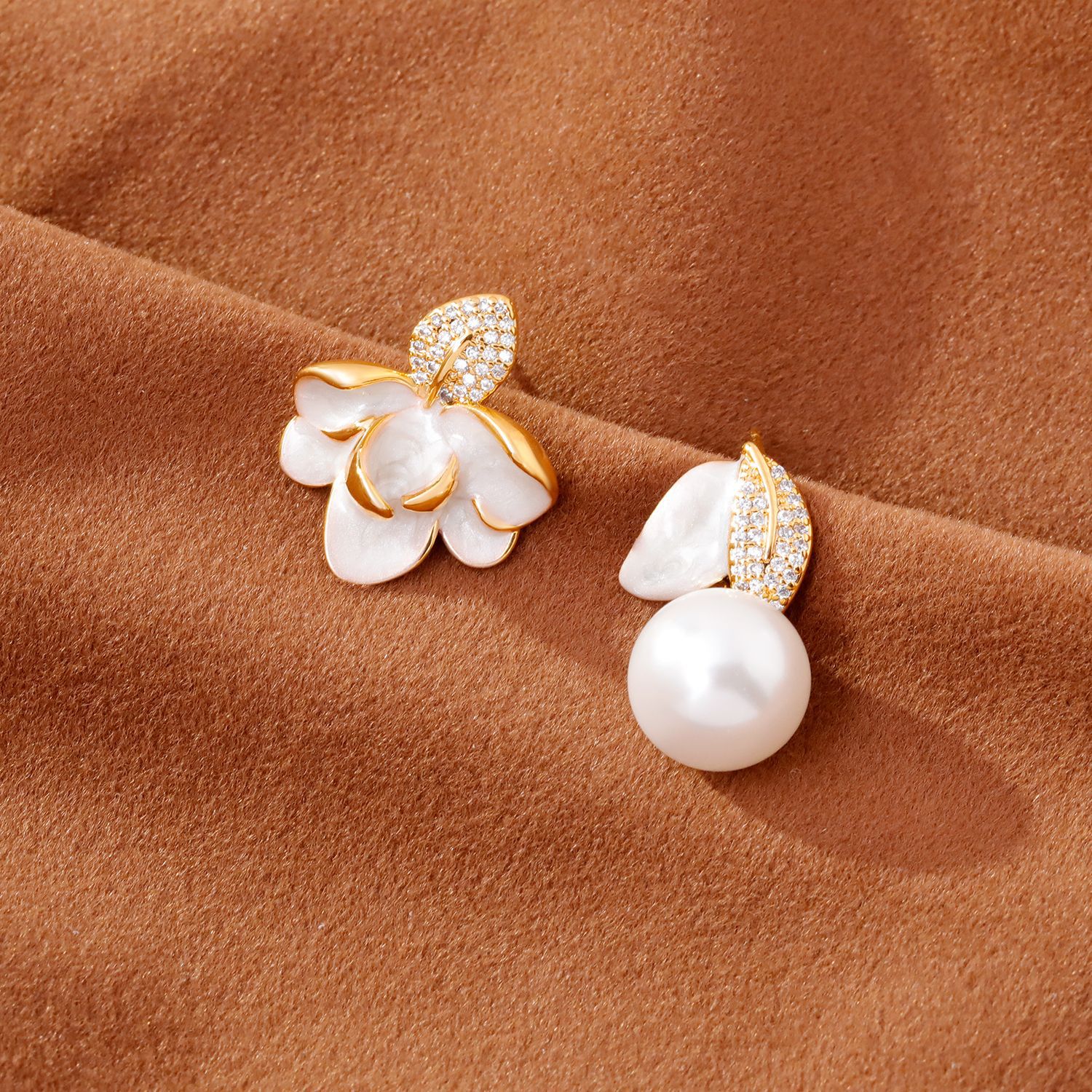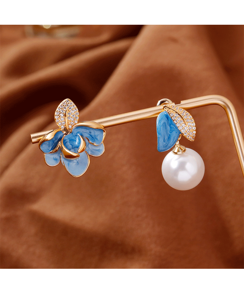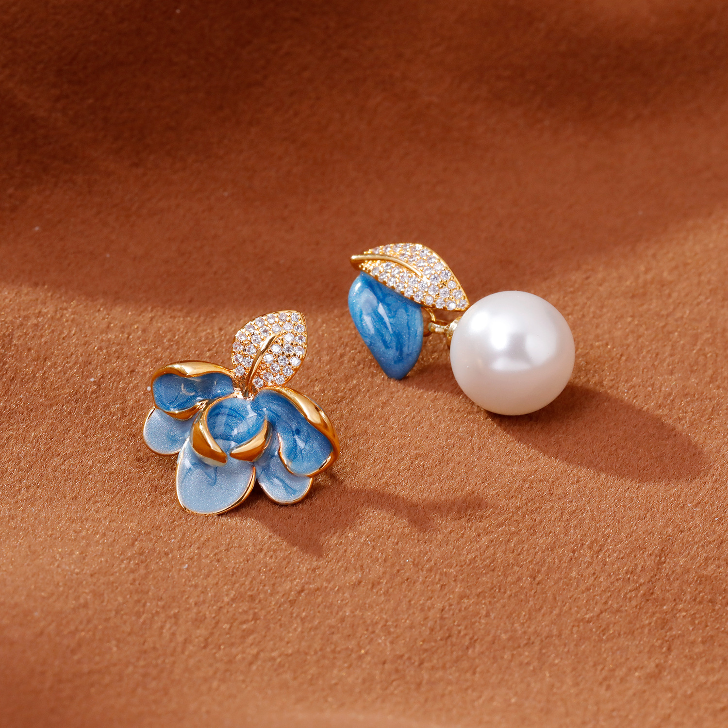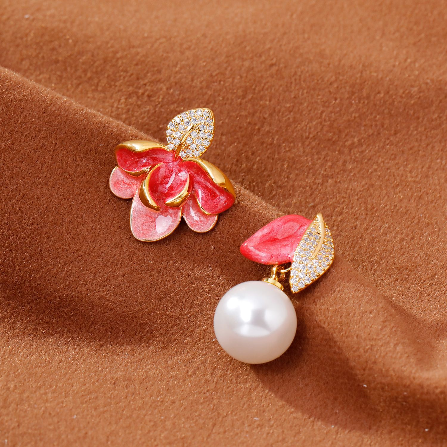 2025抖音爆款不对称滴釉珐琅耳环时尚轻奢气质高级感树叶珍珠耳坠