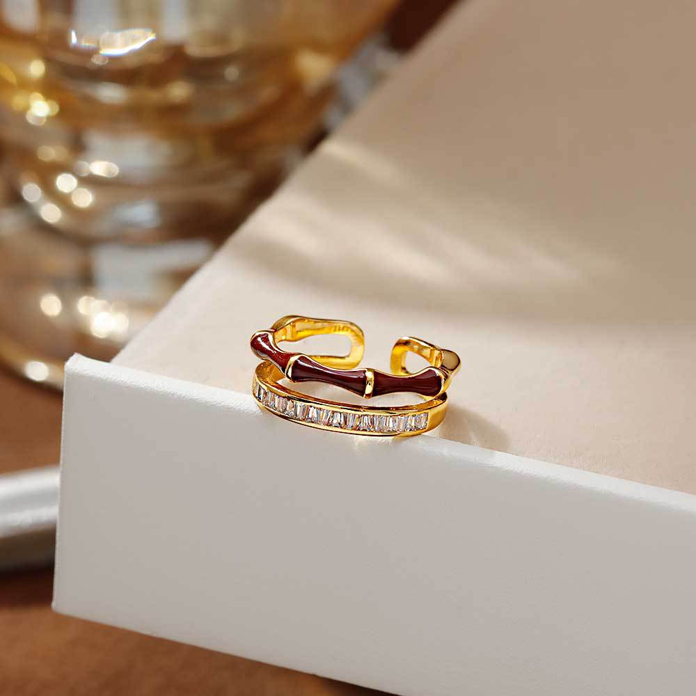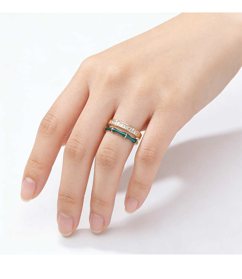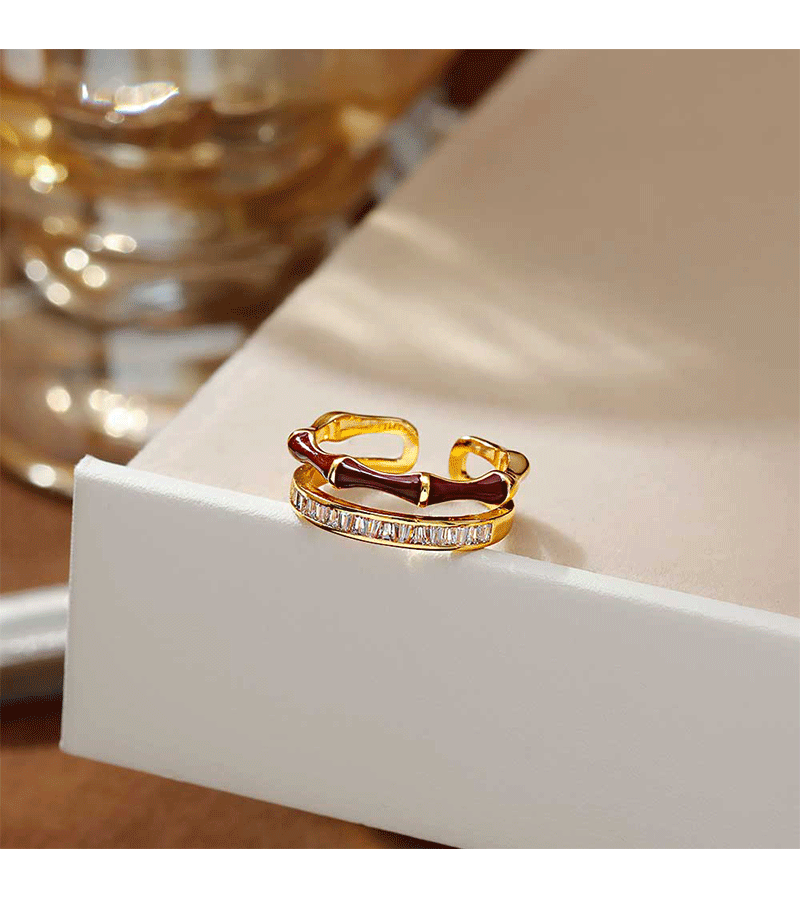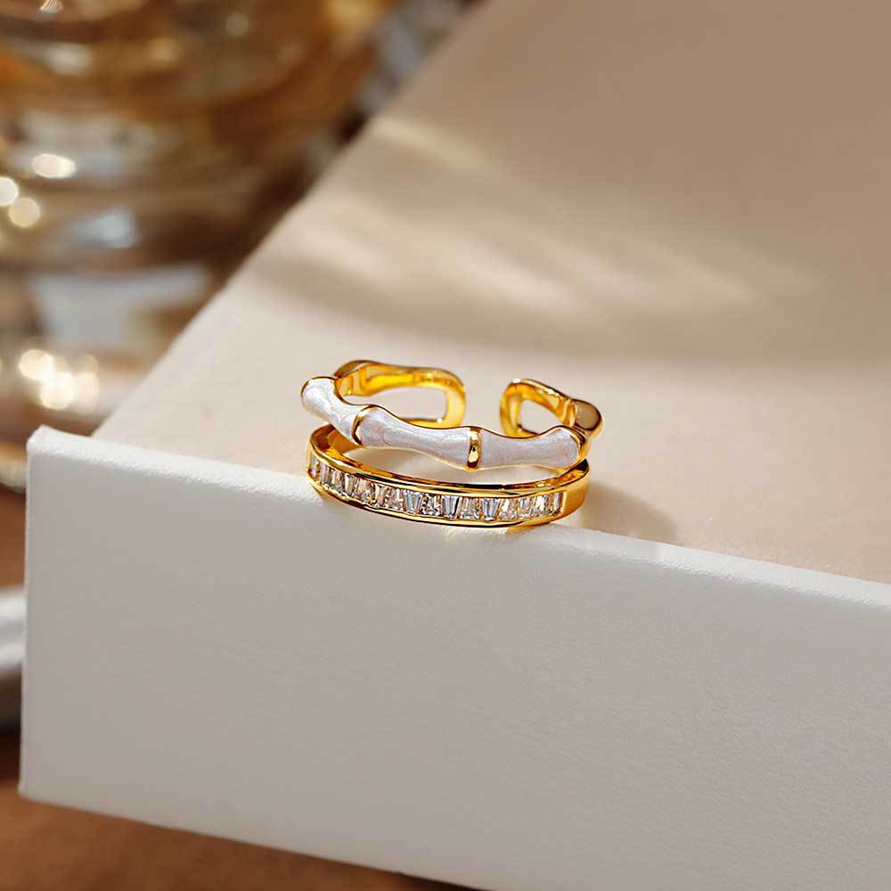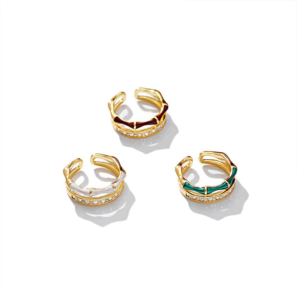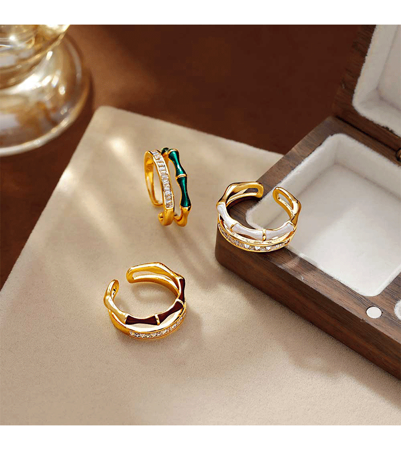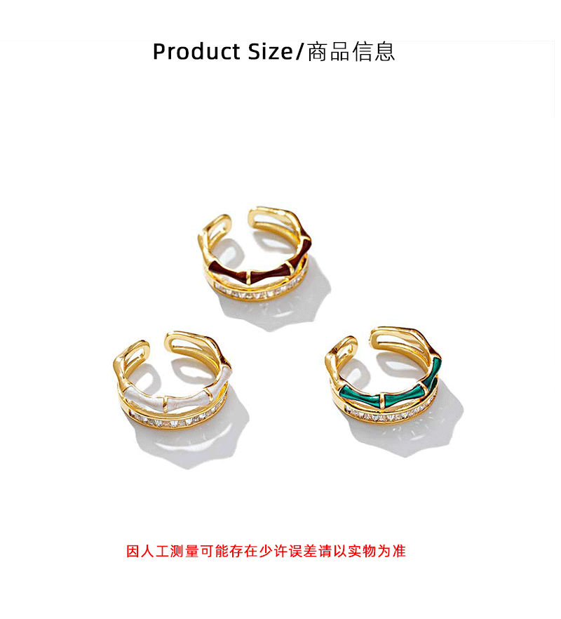 双层珐琅锆石开口戒指 ins潮简约个性时尚冷淡风轻奢小众精致指环