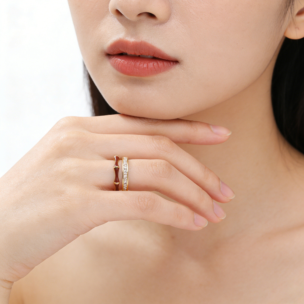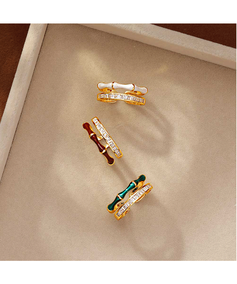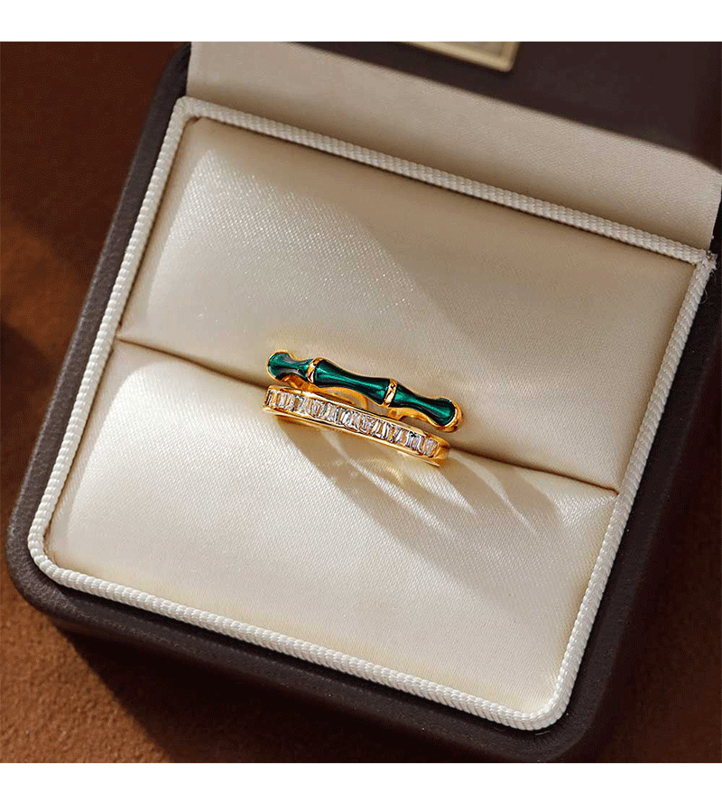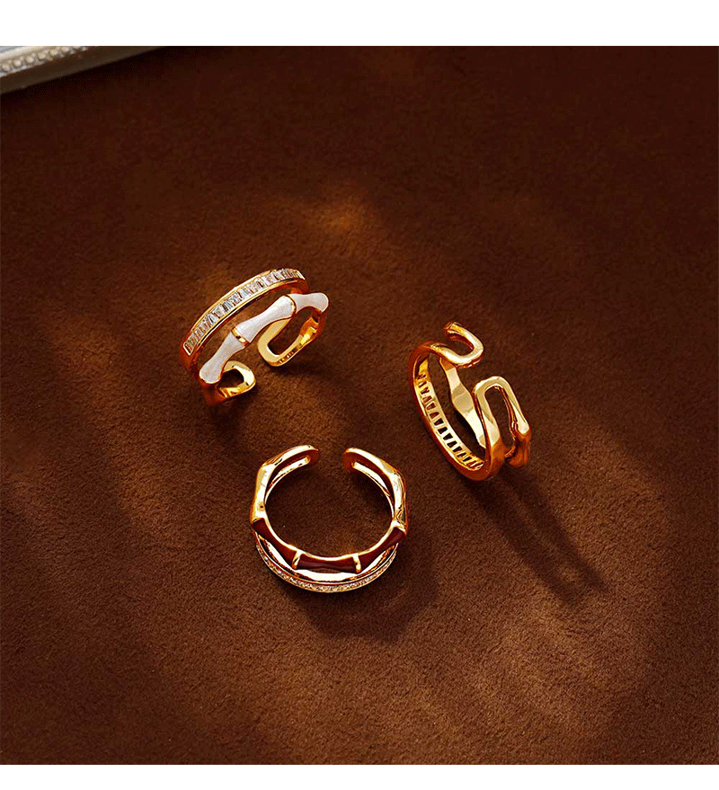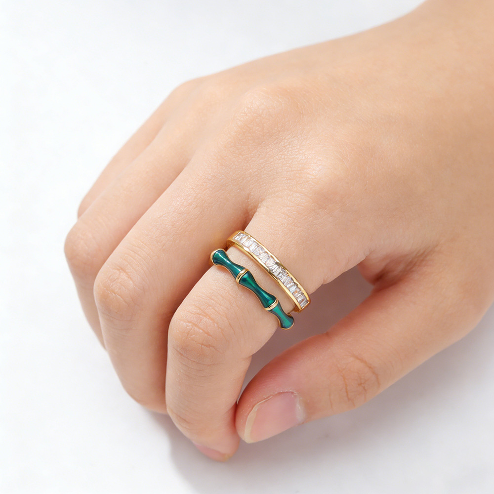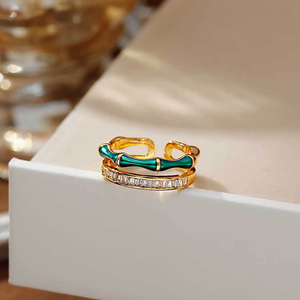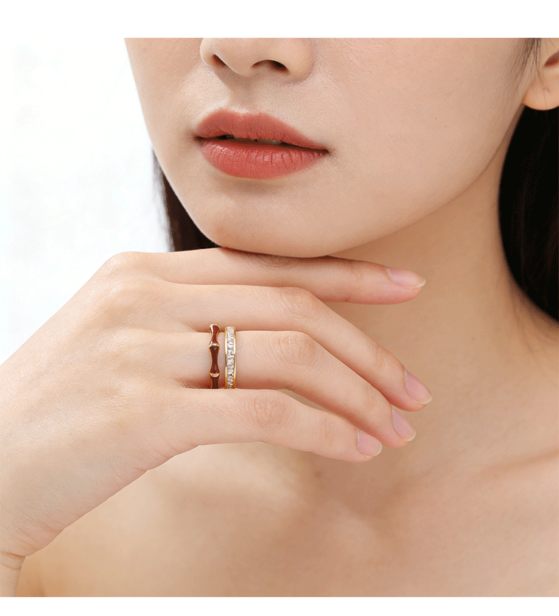 双层珐琅锆石开口戒指 ins潮简约个性时尚冷淡风轻奢小众精致指环