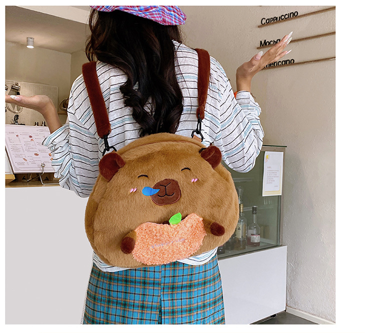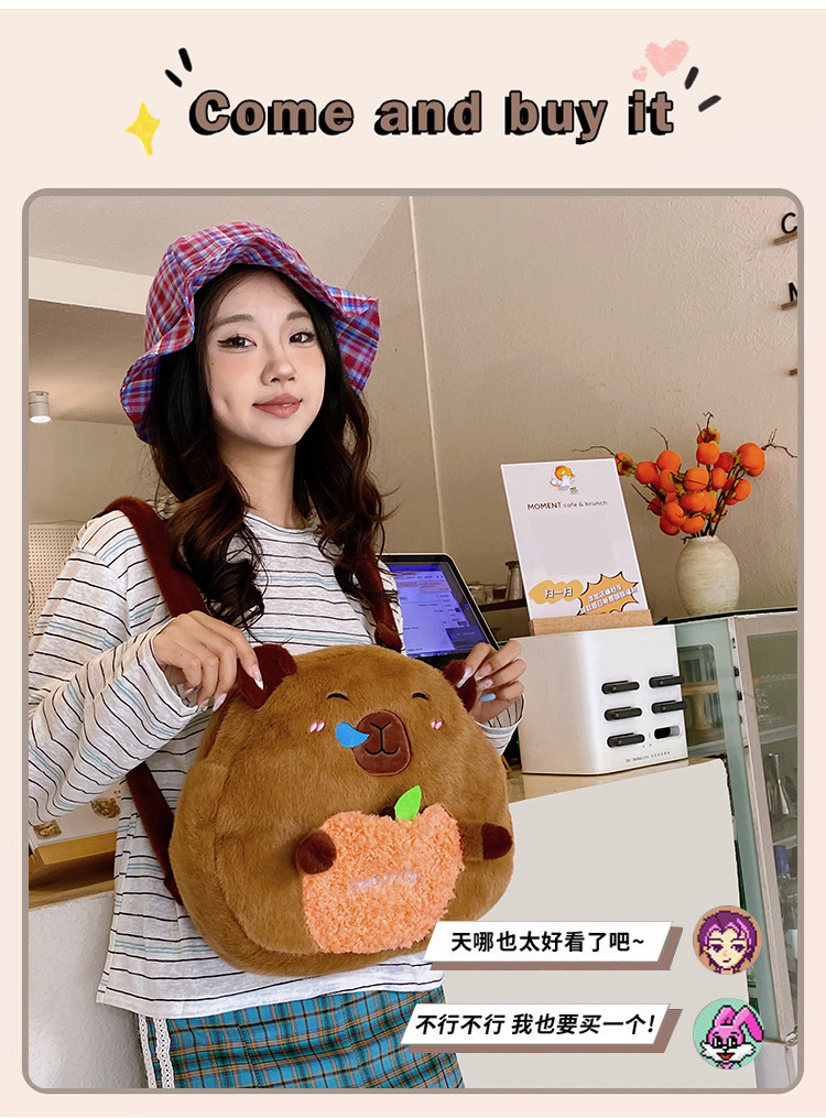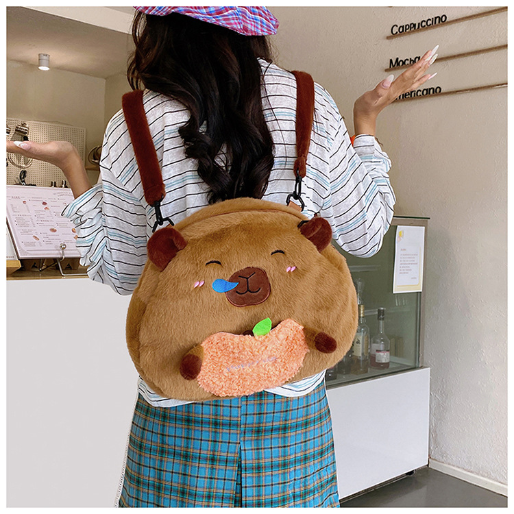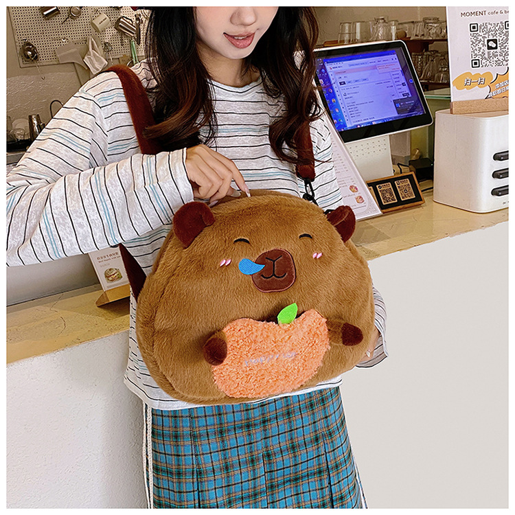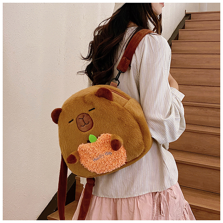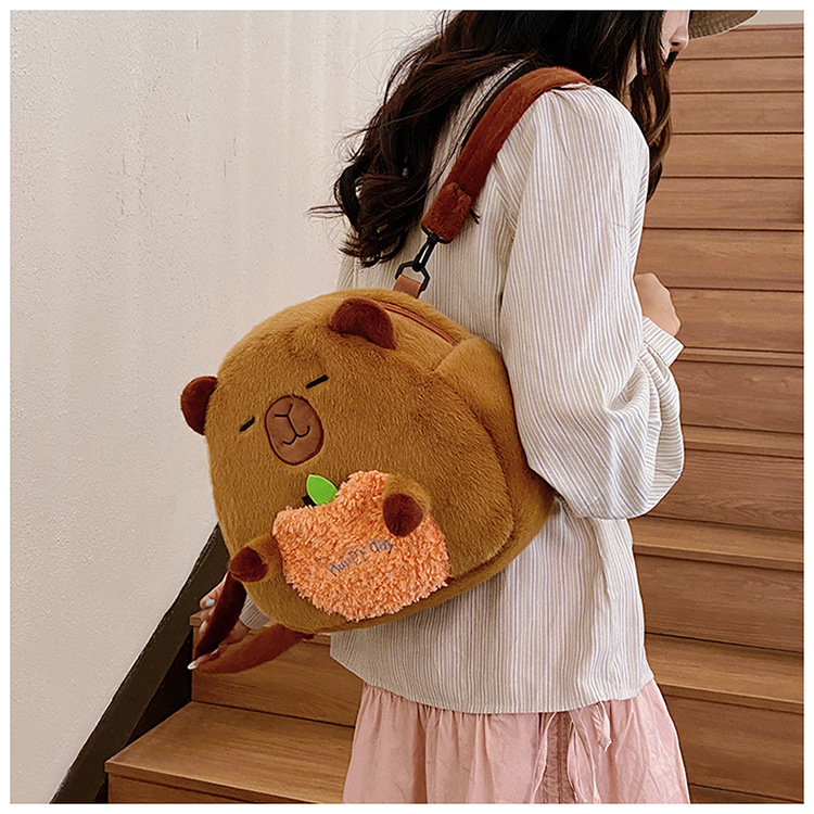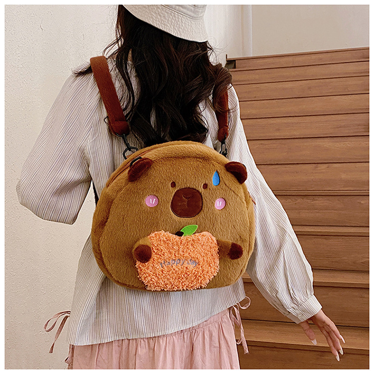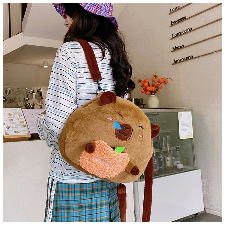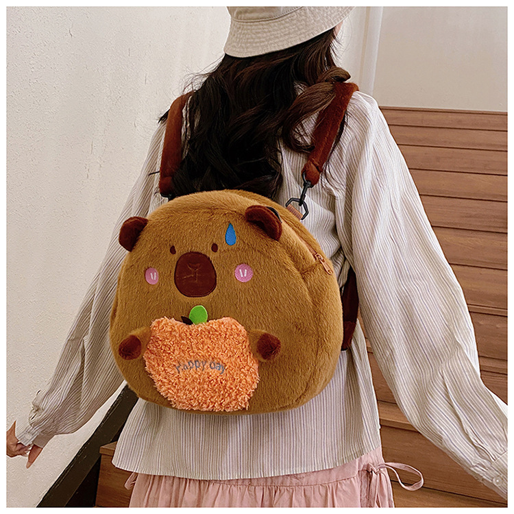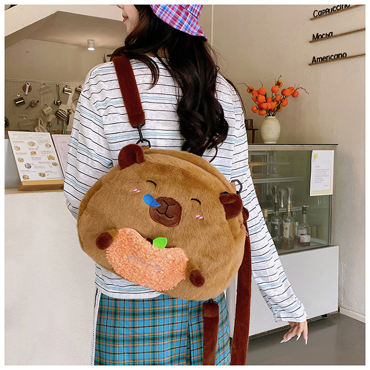 卡皮巴拉卡通双肩包软妹可爱毛茸茸多用单肩包大容量毛绒包包女