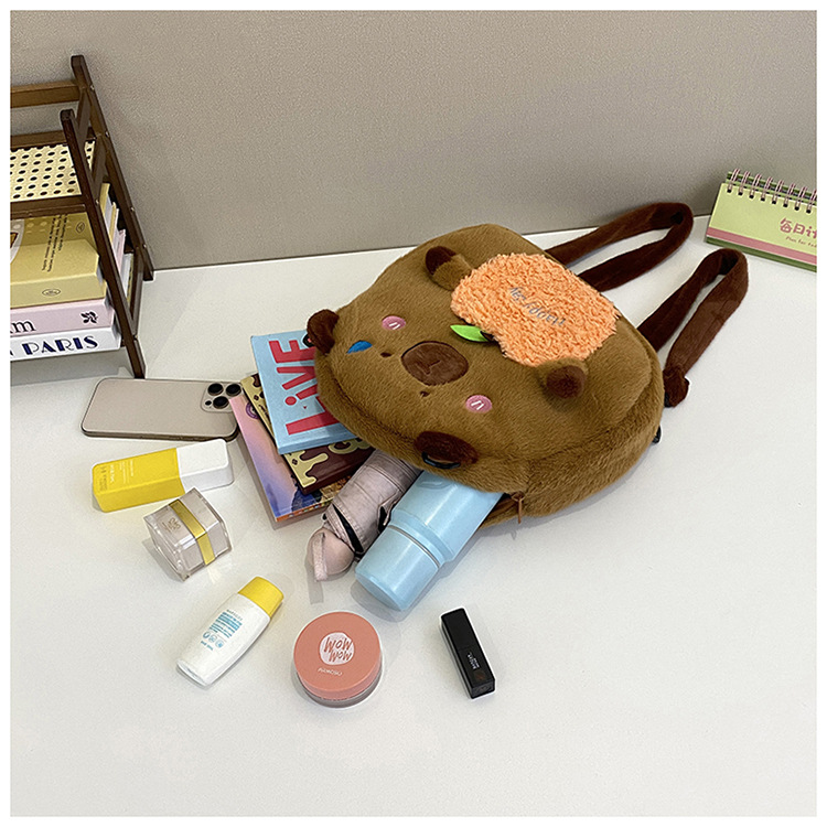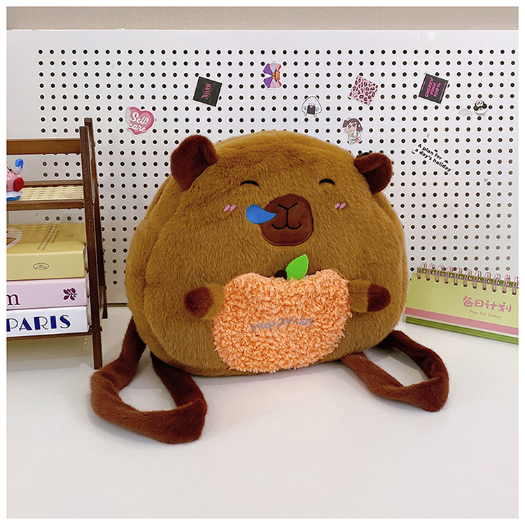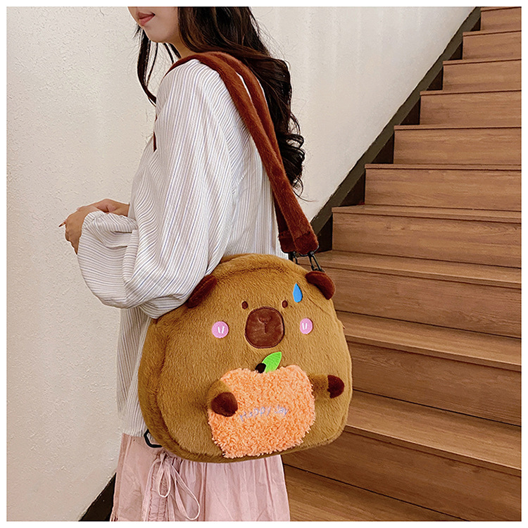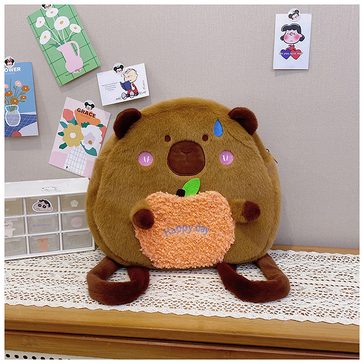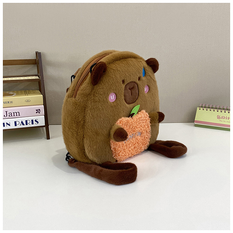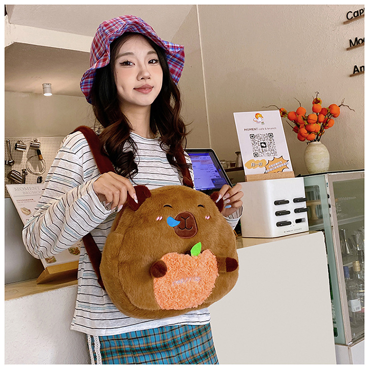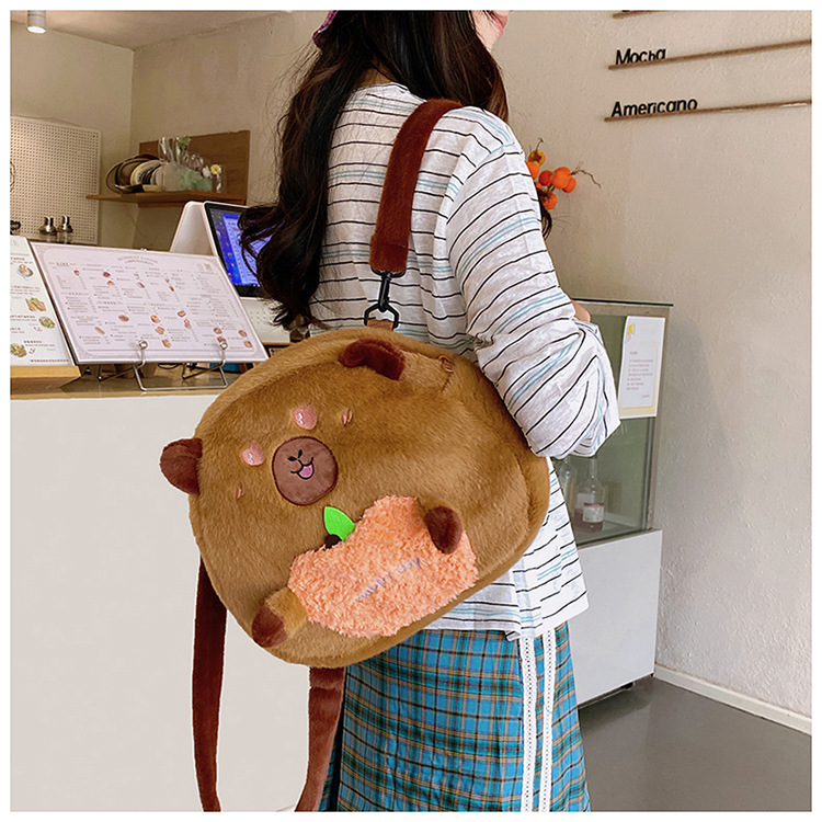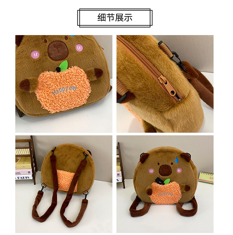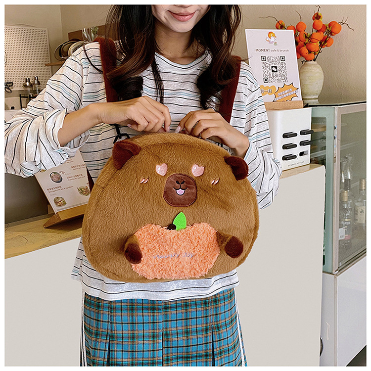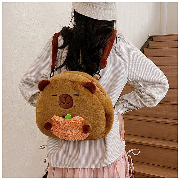 卡皮巴拉卡通双肩包软妹可爱毛茸茸多用单肩包大容量毛绒包包女