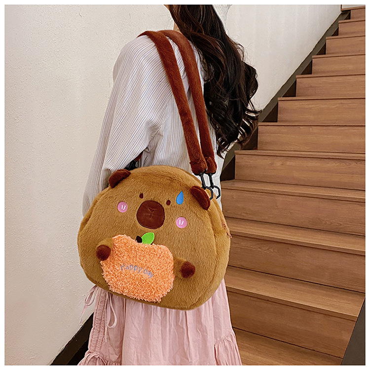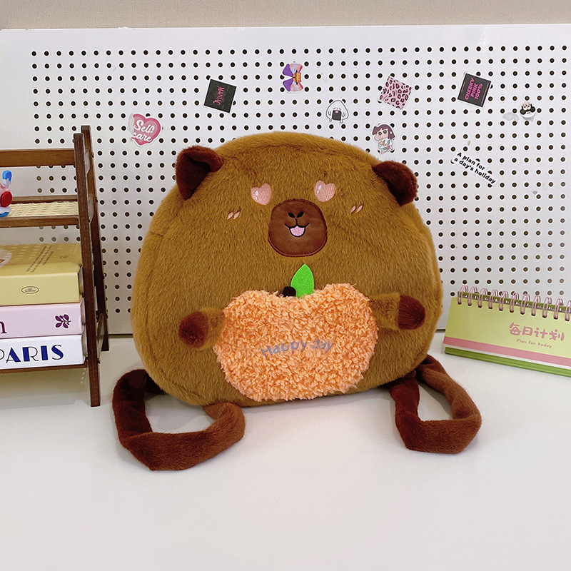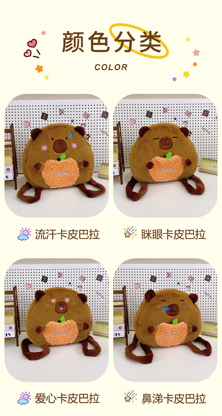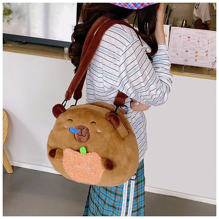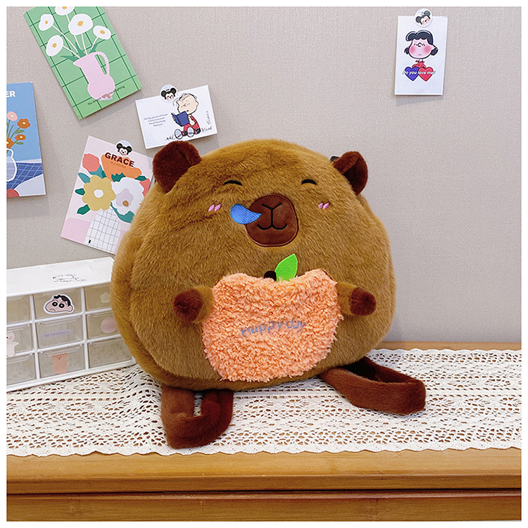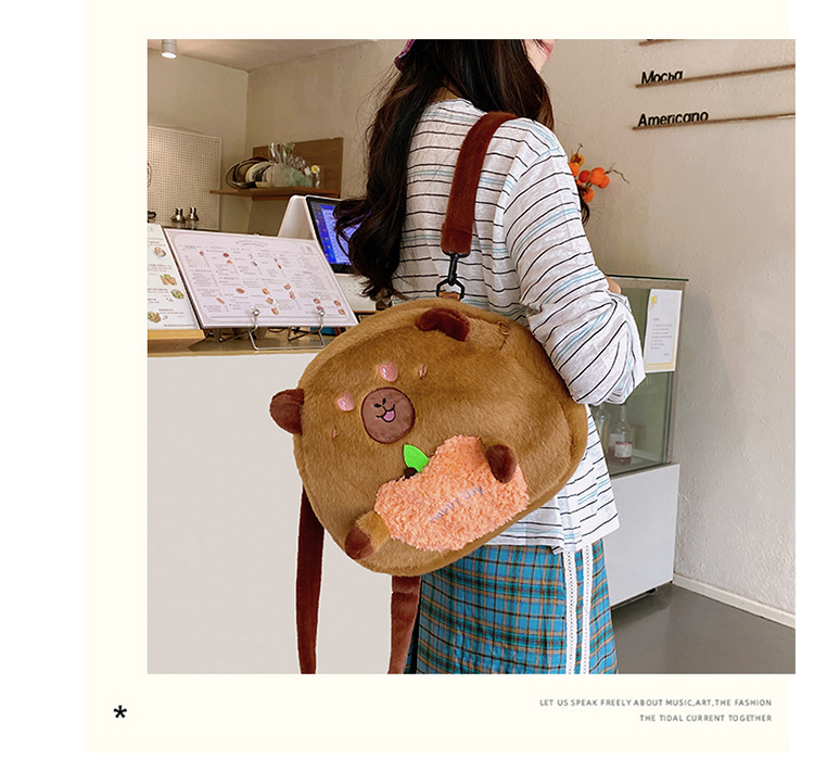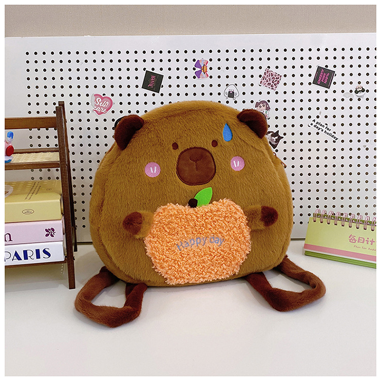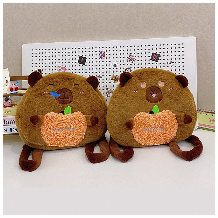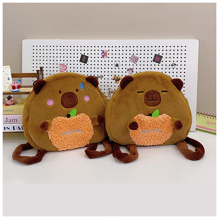 卡皮巴拉卡通双肩包软妹可爱毛茸茸多用单肩包大容量毛绒包包女