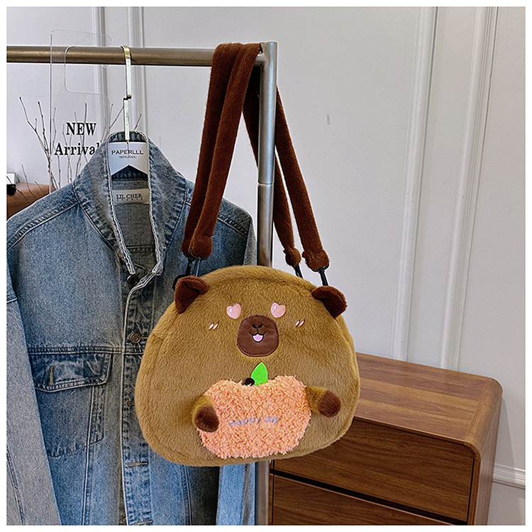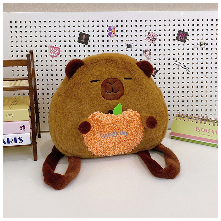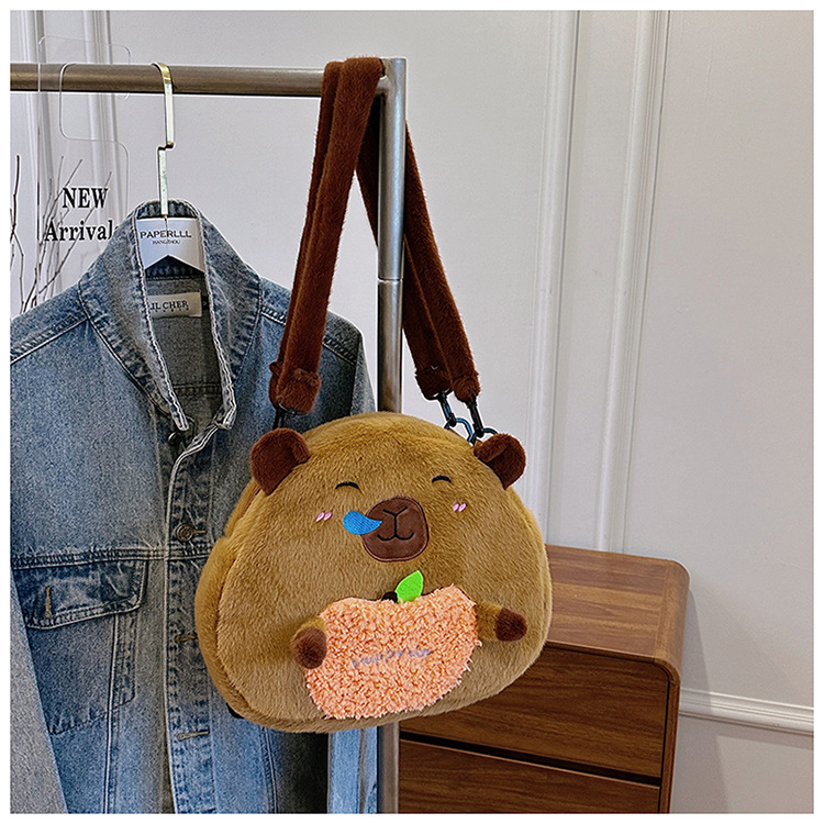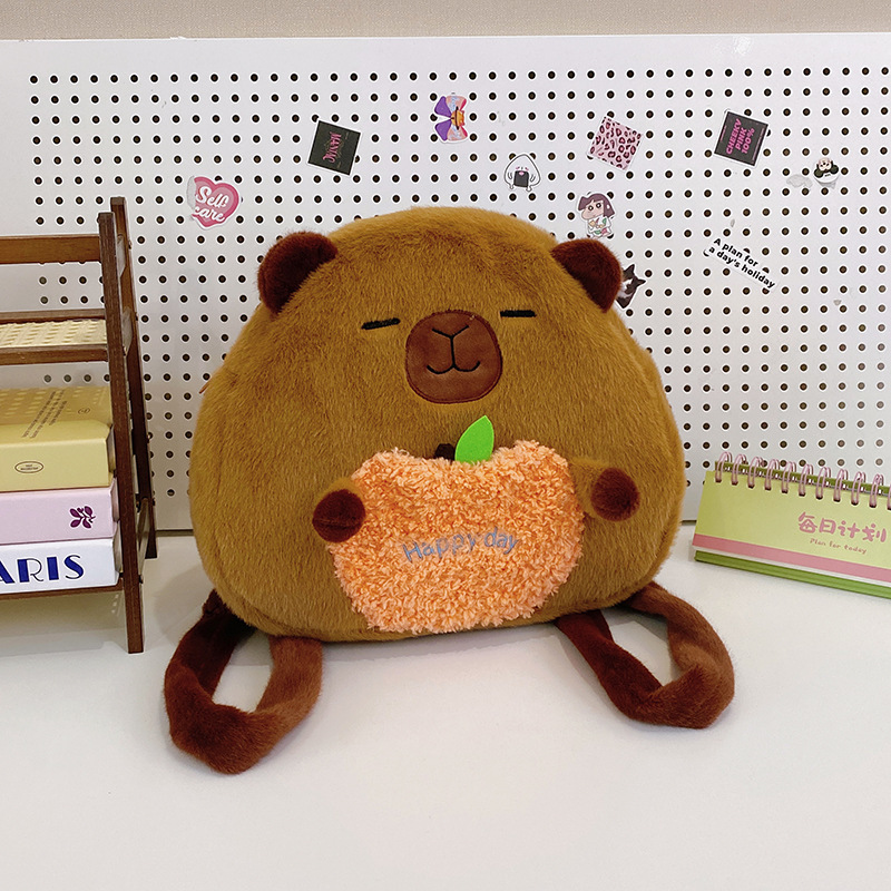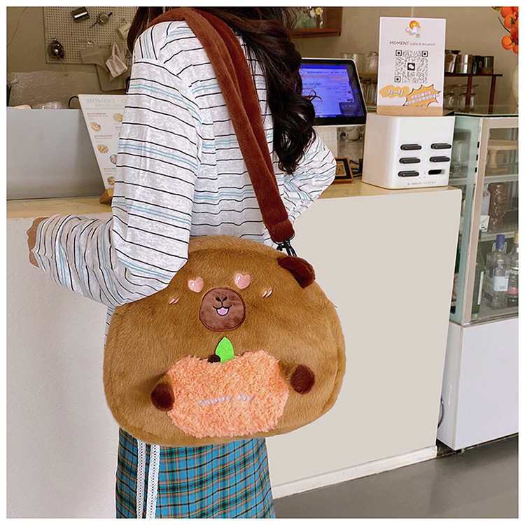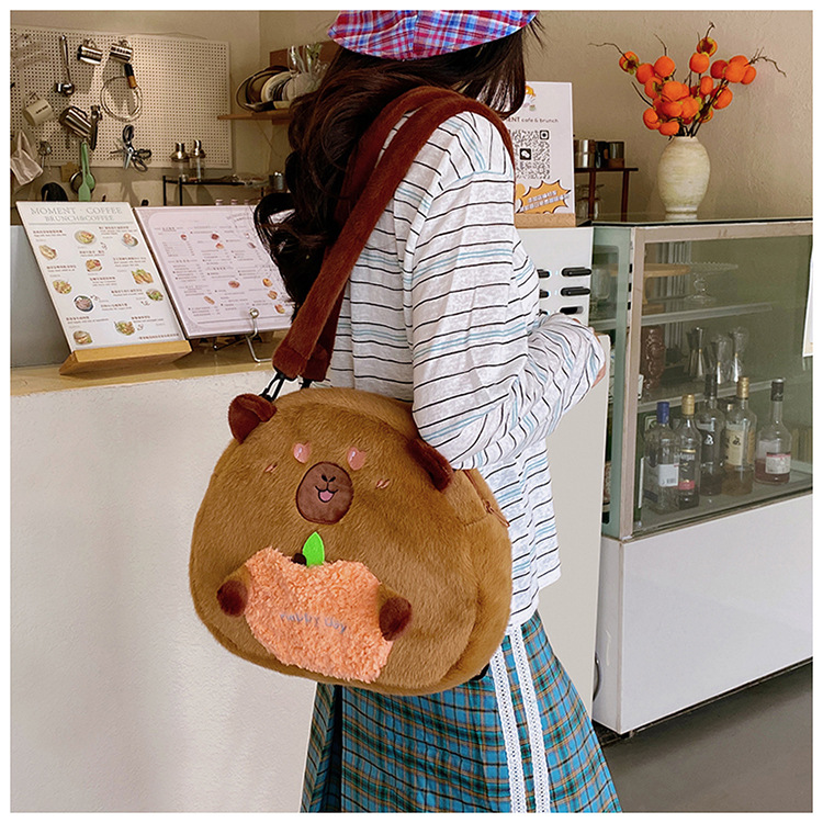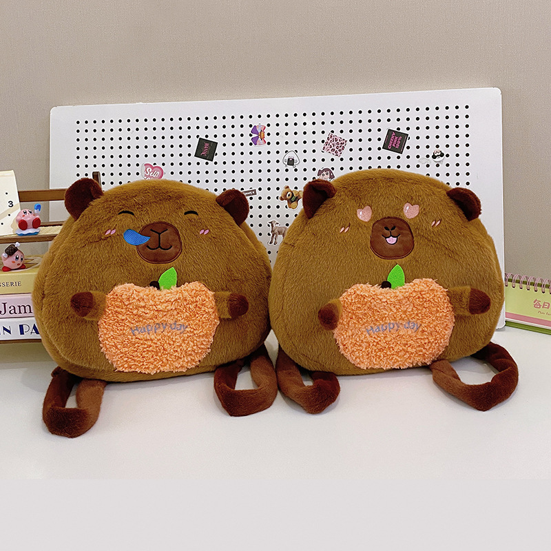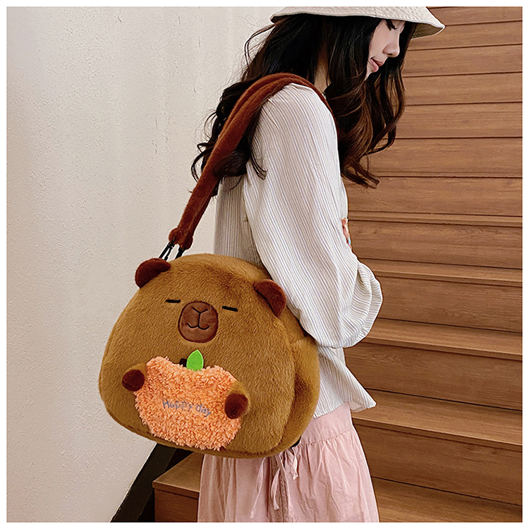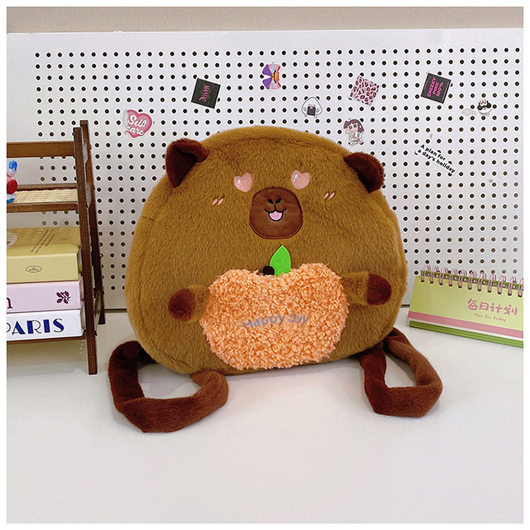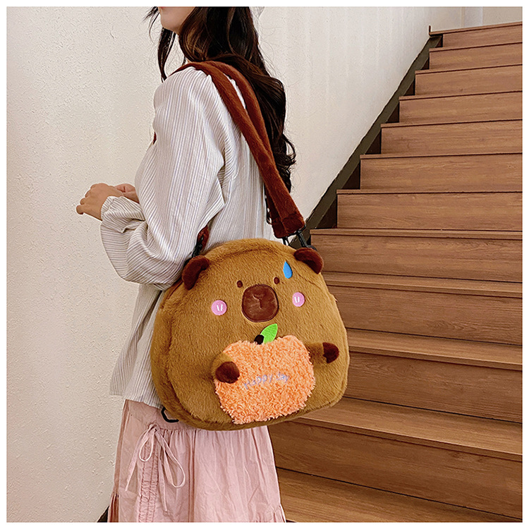 卡皮巴拉卡通双肩包软妹可爱毛茸茸多用单肩包大容量毛绒包包女