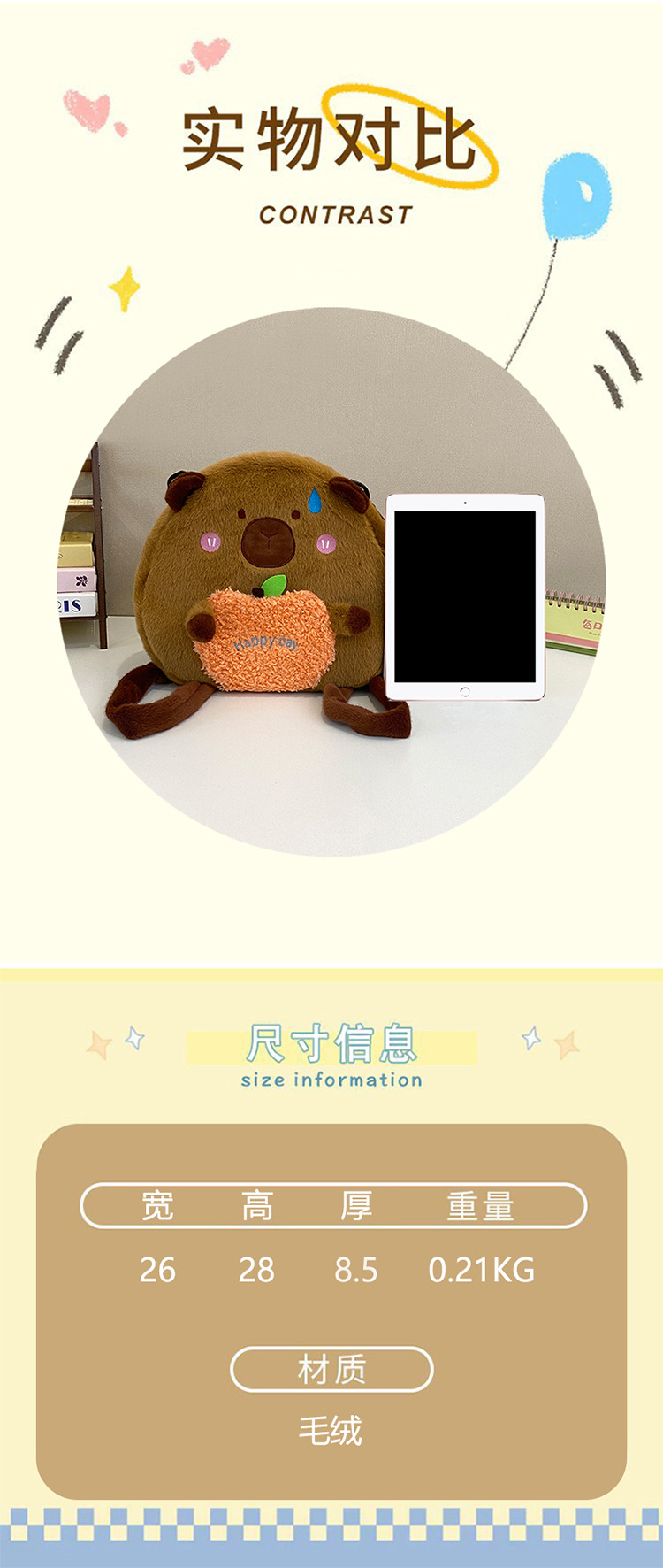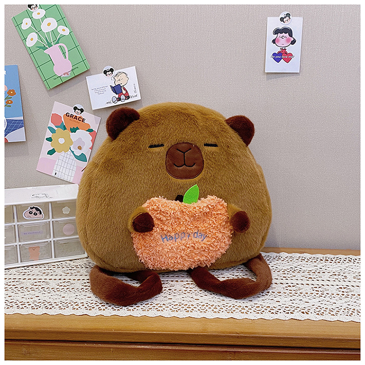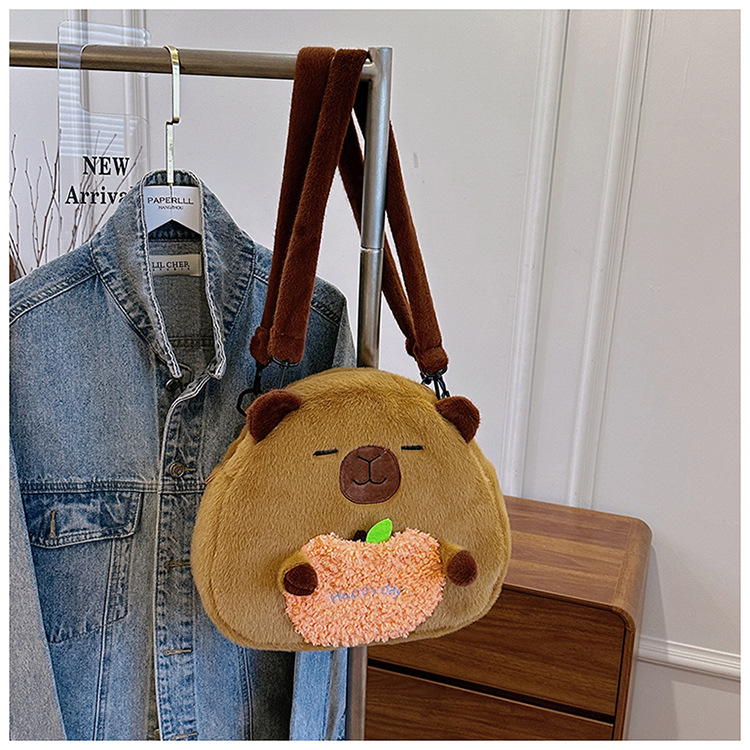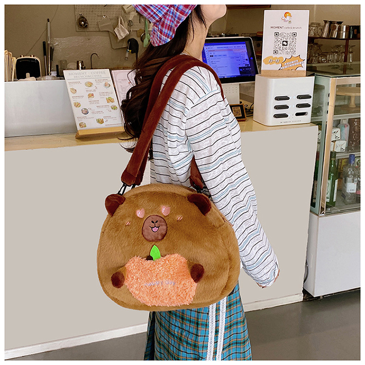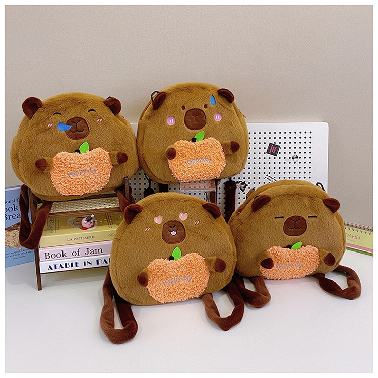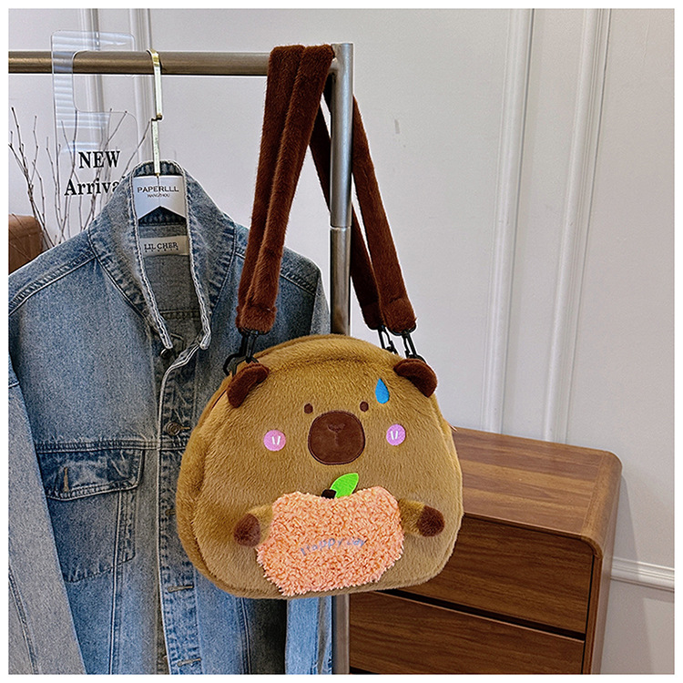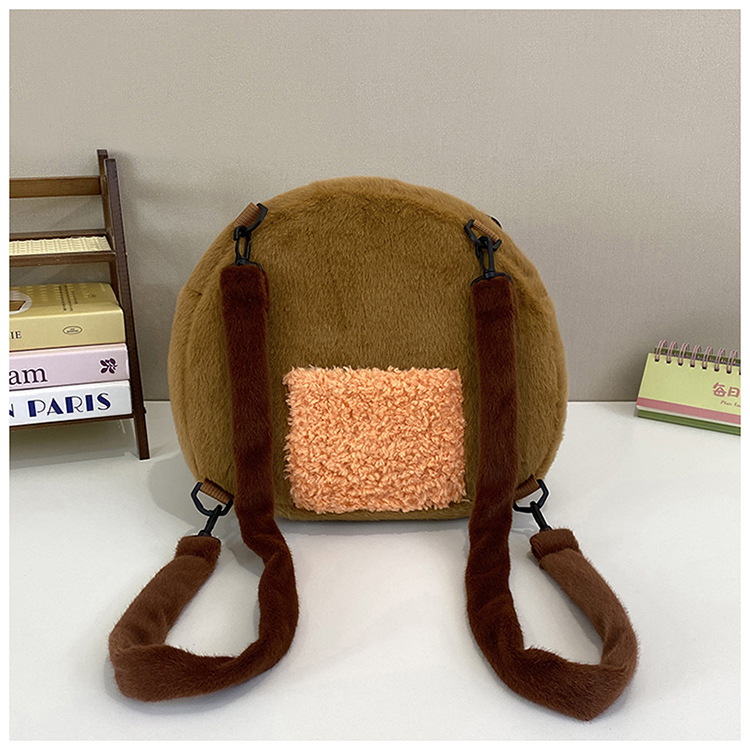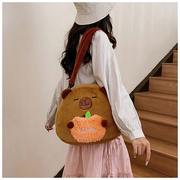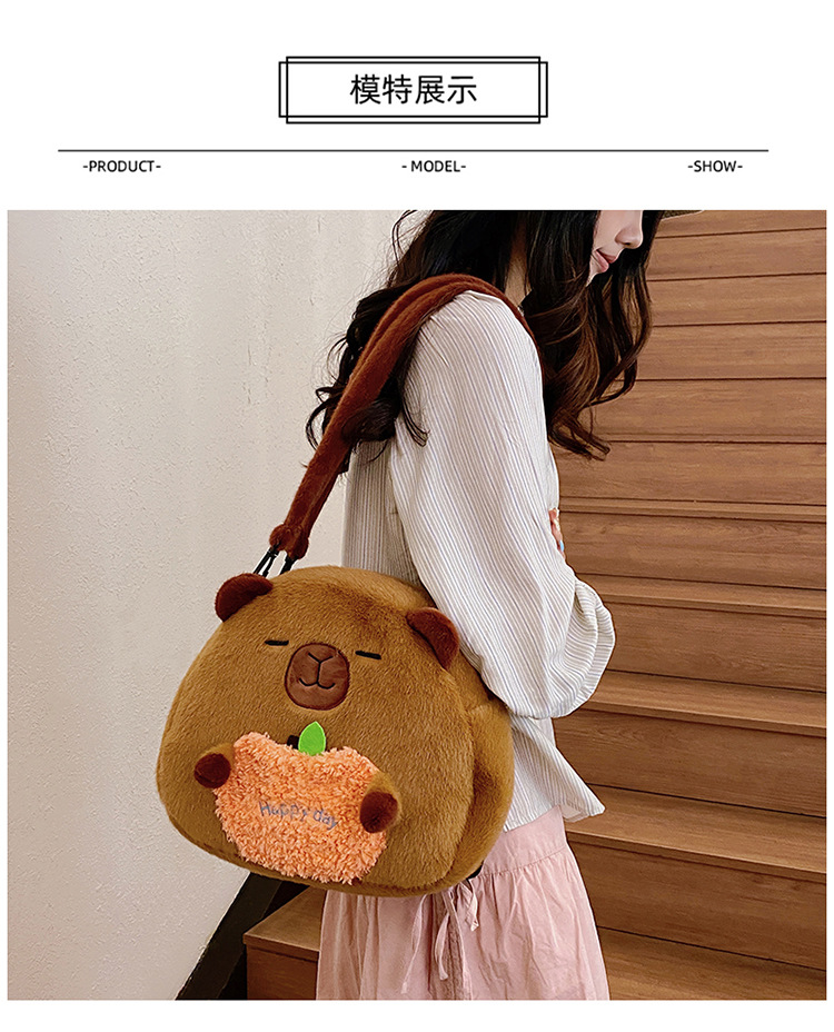 卡皮巴拉卡通双肩包软妹可爱毛茸茸多用单肩包大容量毛绒包包女