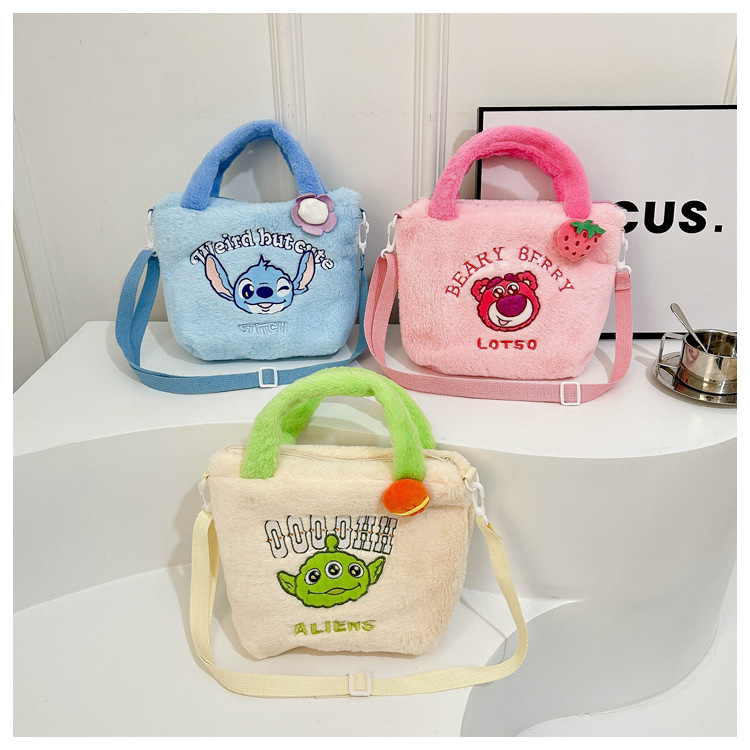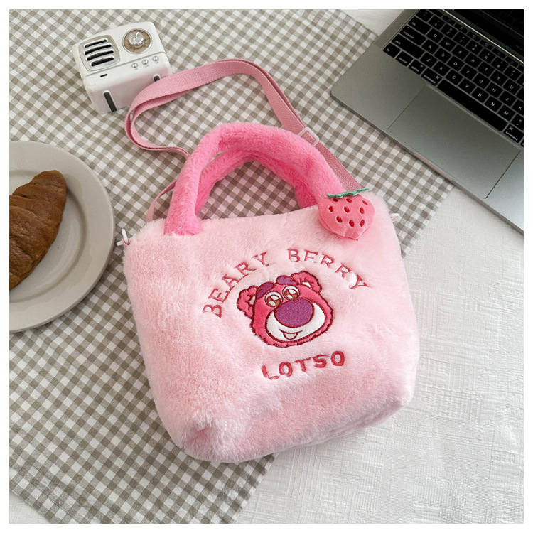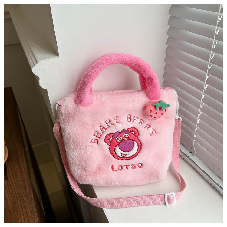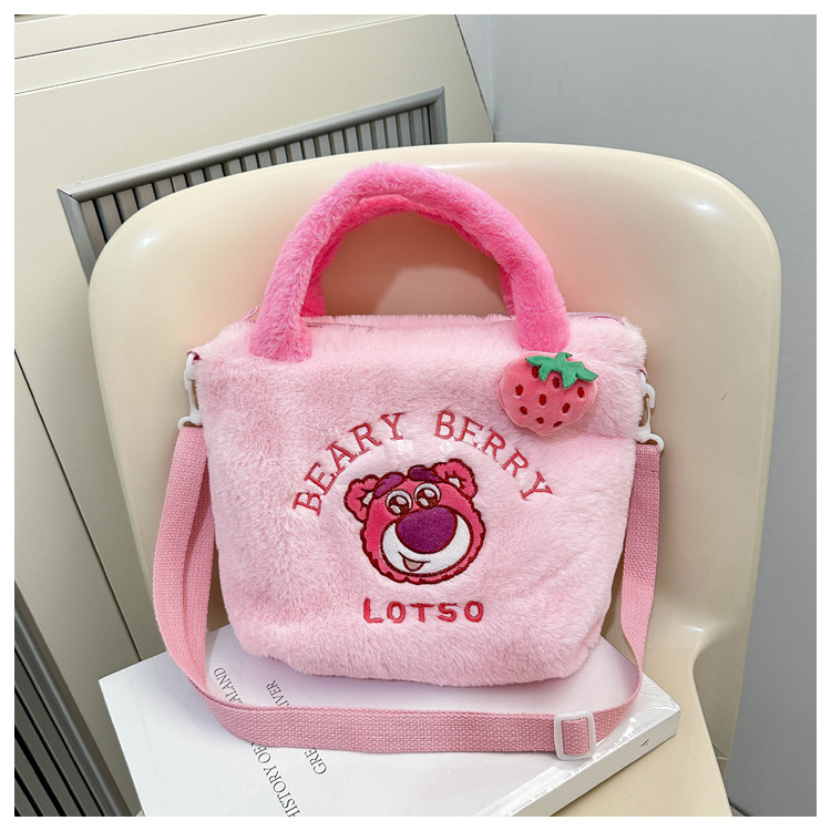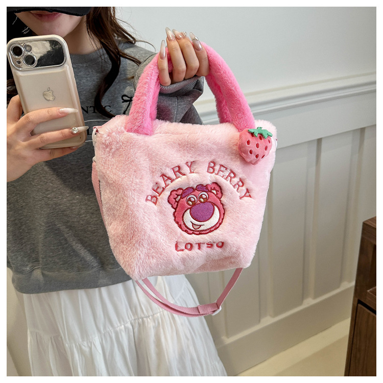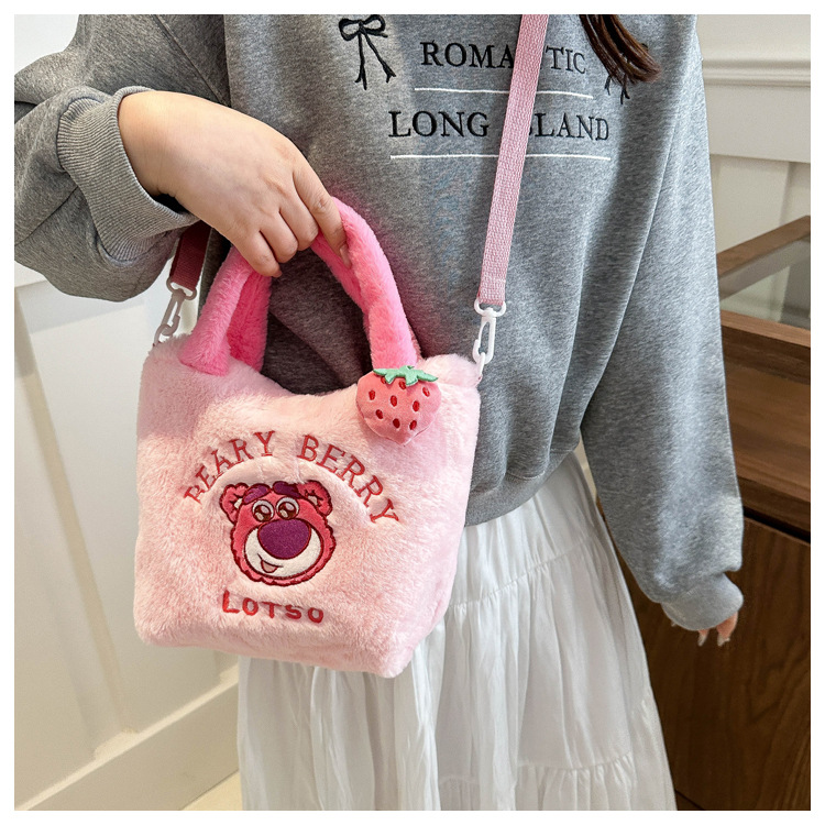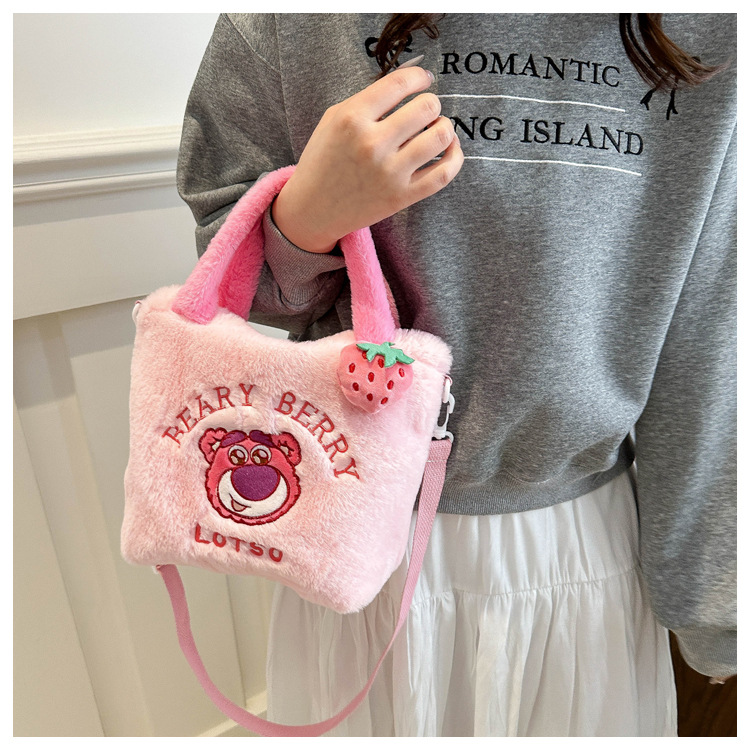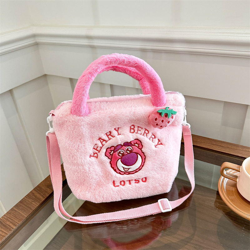 新款卡通玩具包毛绒包手提斜跨包三丽鸥草莓熊零钱包儿童包百搭包