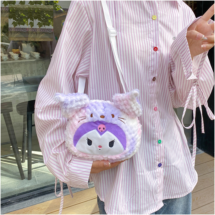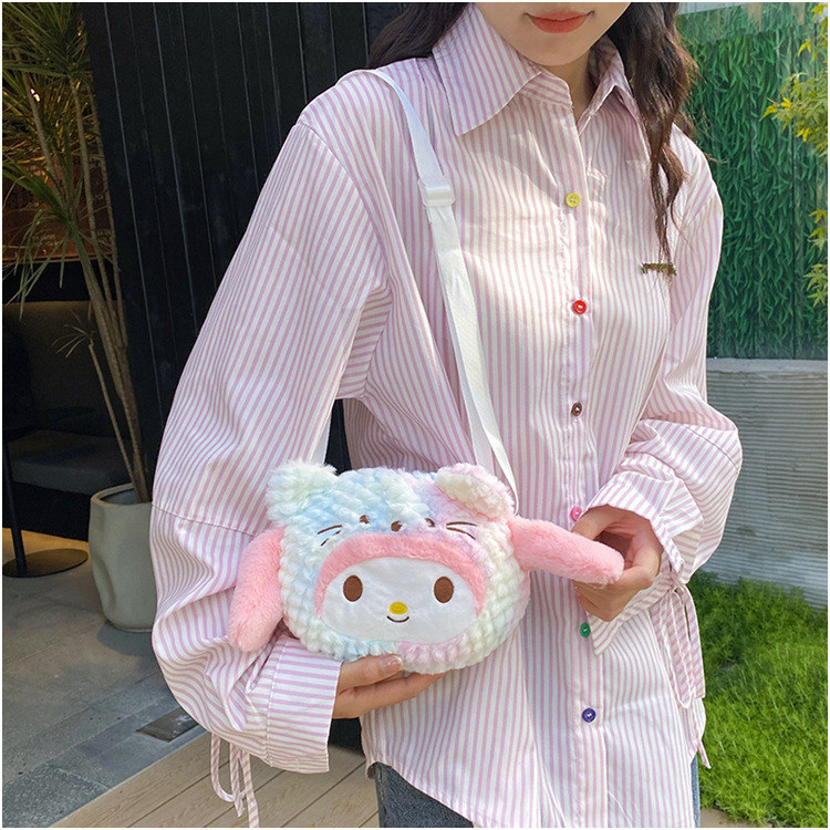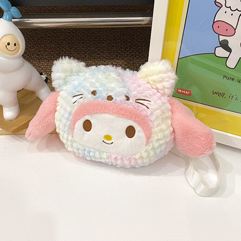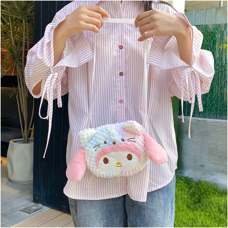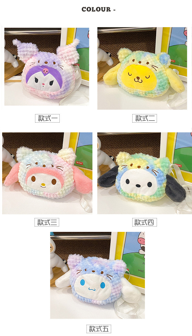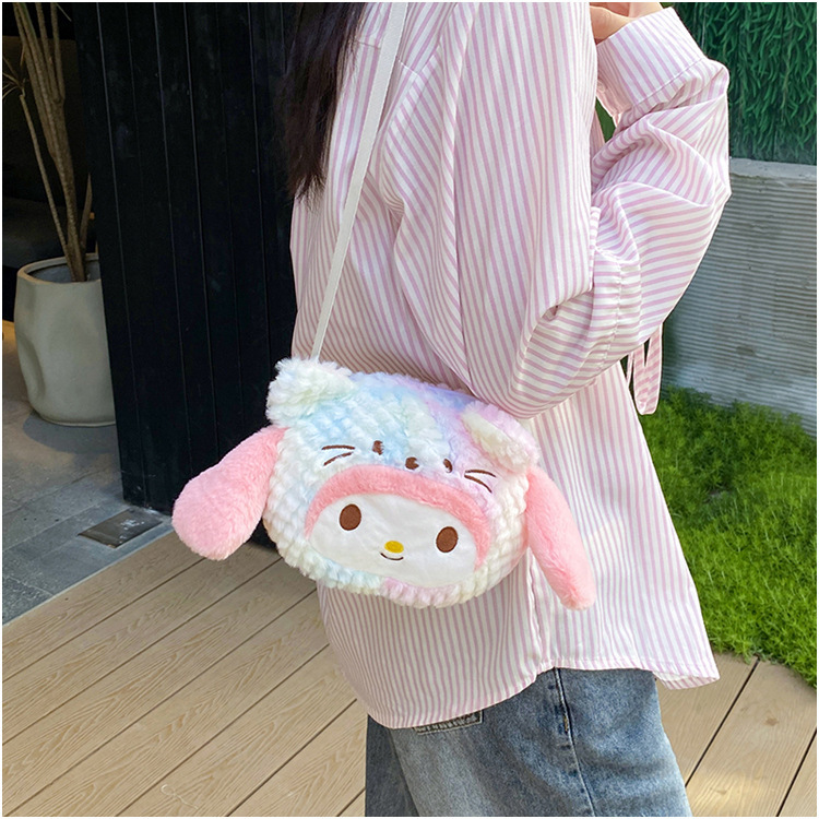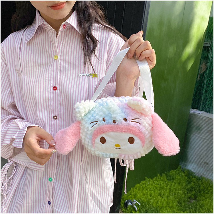 新款毛绒玩具包扎染库洛米美乐蒂毛绒包包可爱卡通斜跨包儿童包包