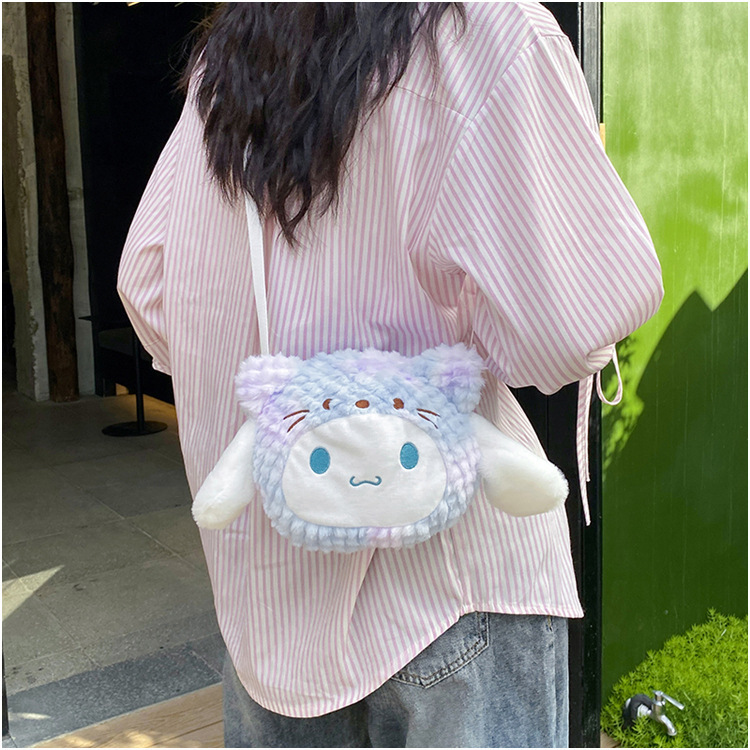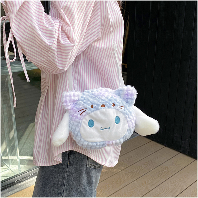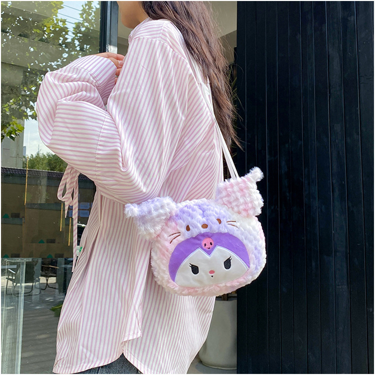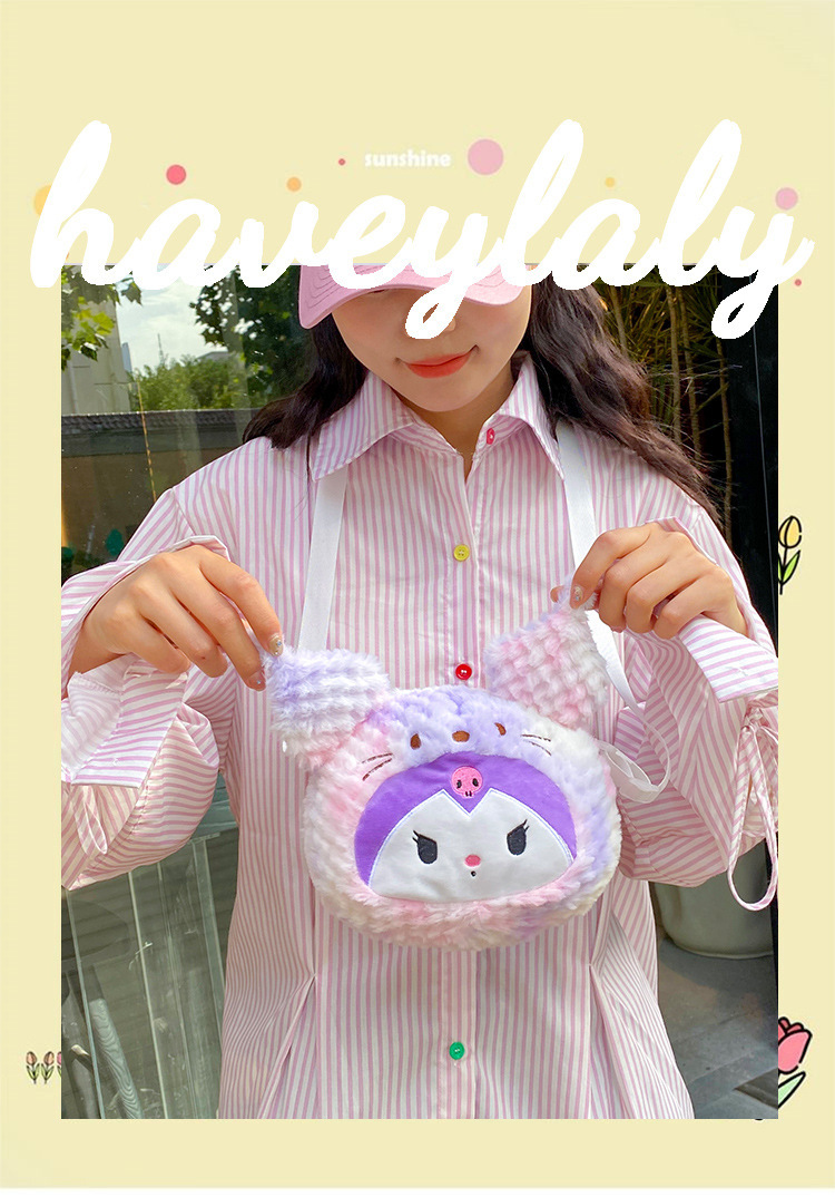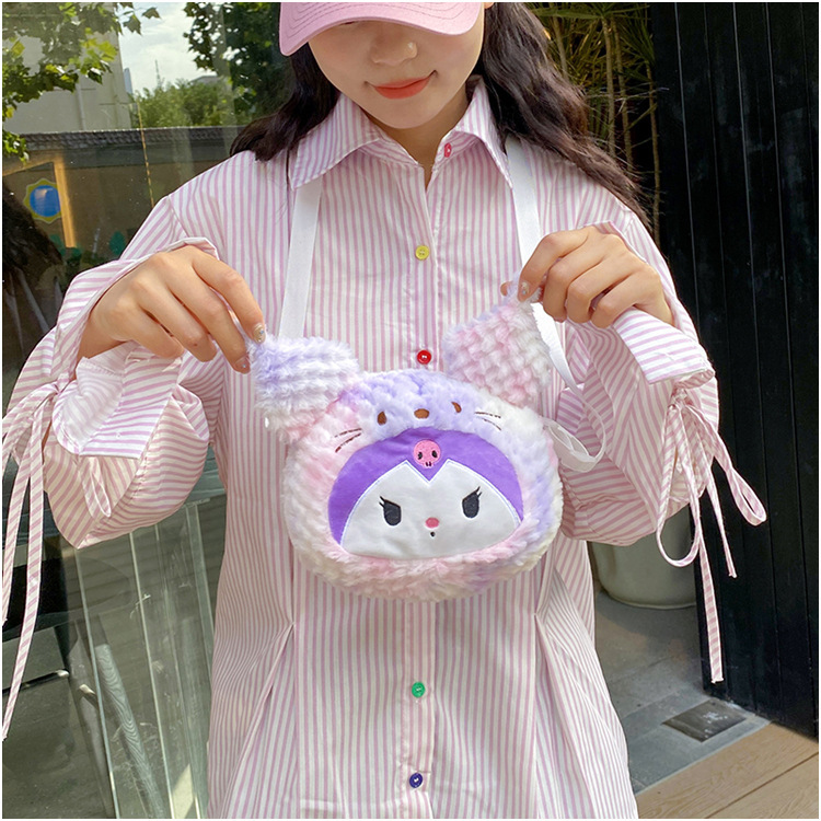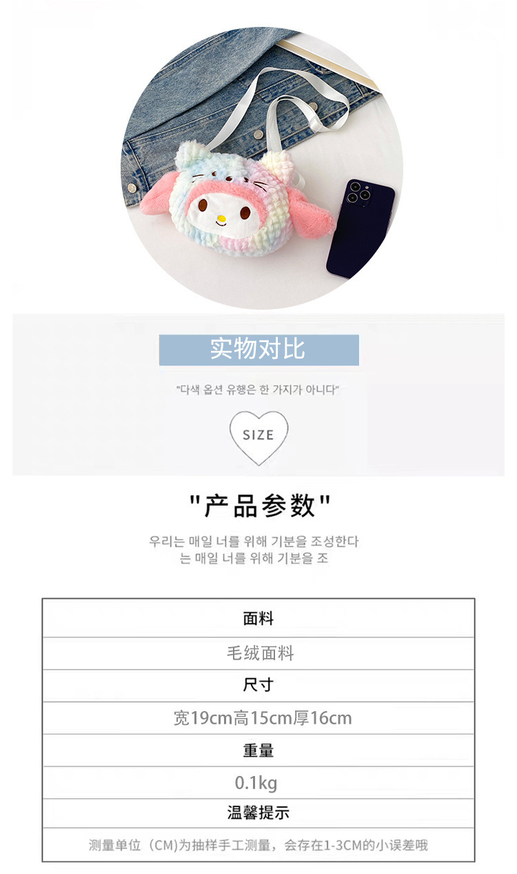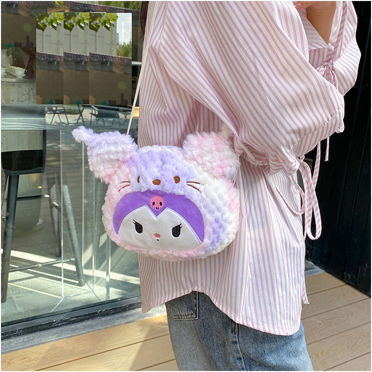新款毛绒玩具包扎染库洛米美乐蒂毛绒包包可爱卡通斜跨包儿童包包