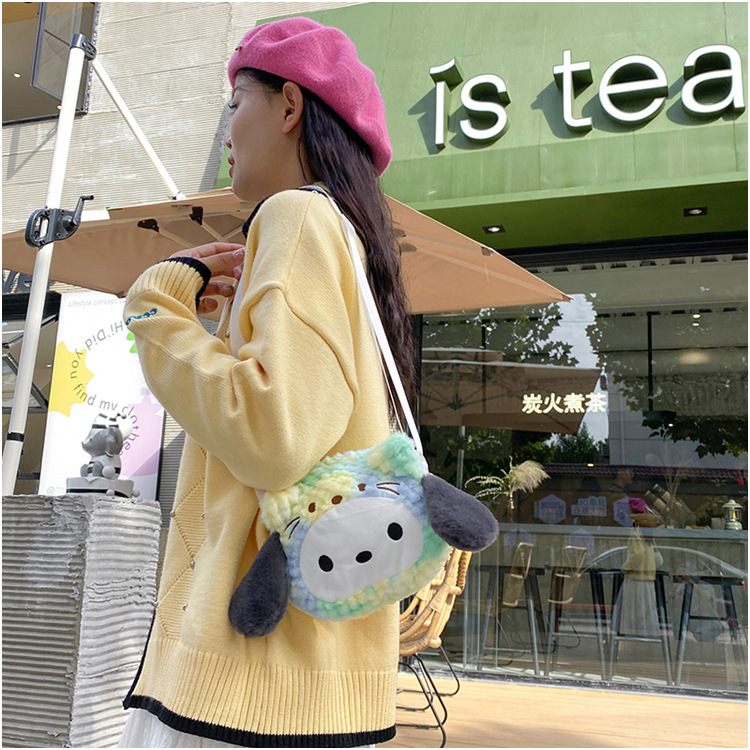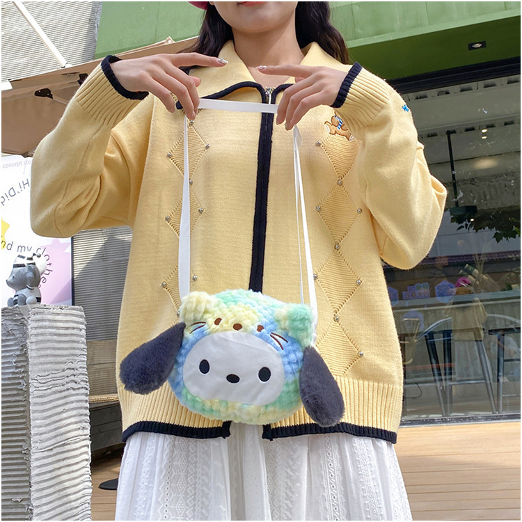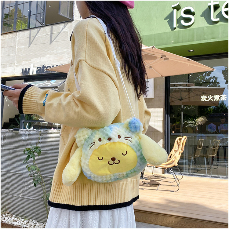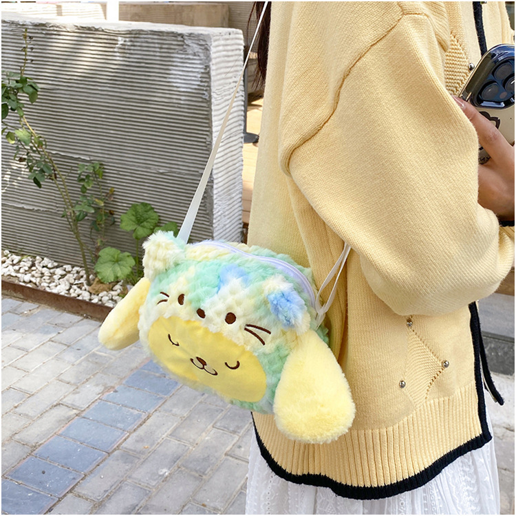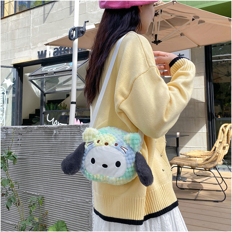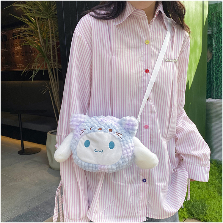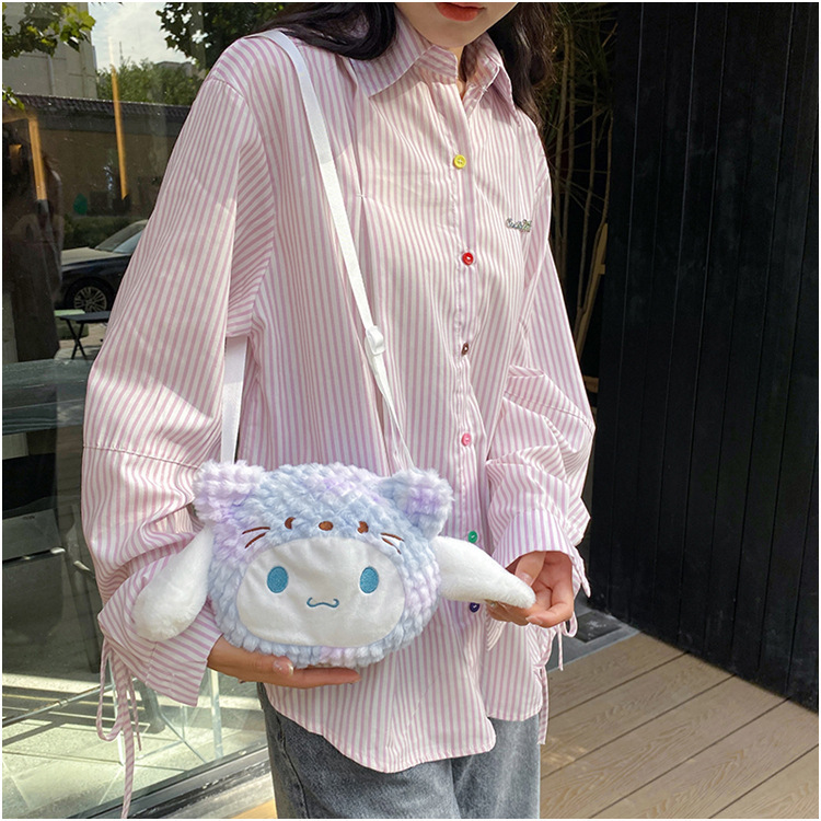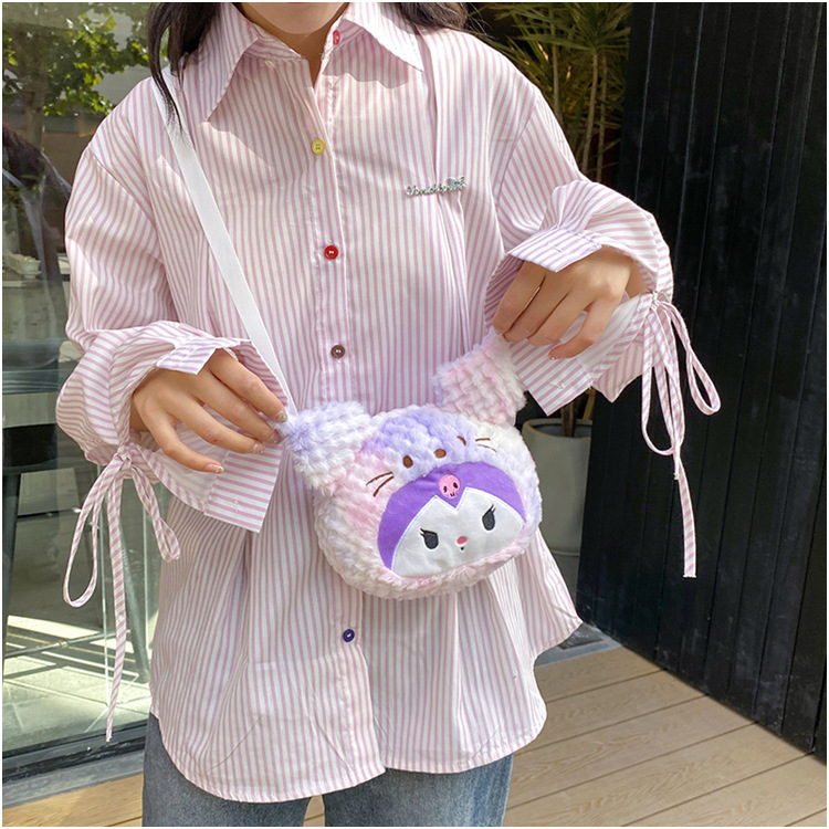 新款毛绒玩具包扎染库洛米美乐蒂毛绒包包可爱卡通斜跨包儿童包包