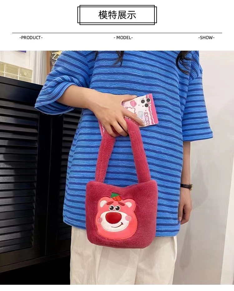 日系可爱卡通儿童包手提包幼儿园女童包包毛绒零钱包水桶包手拎包