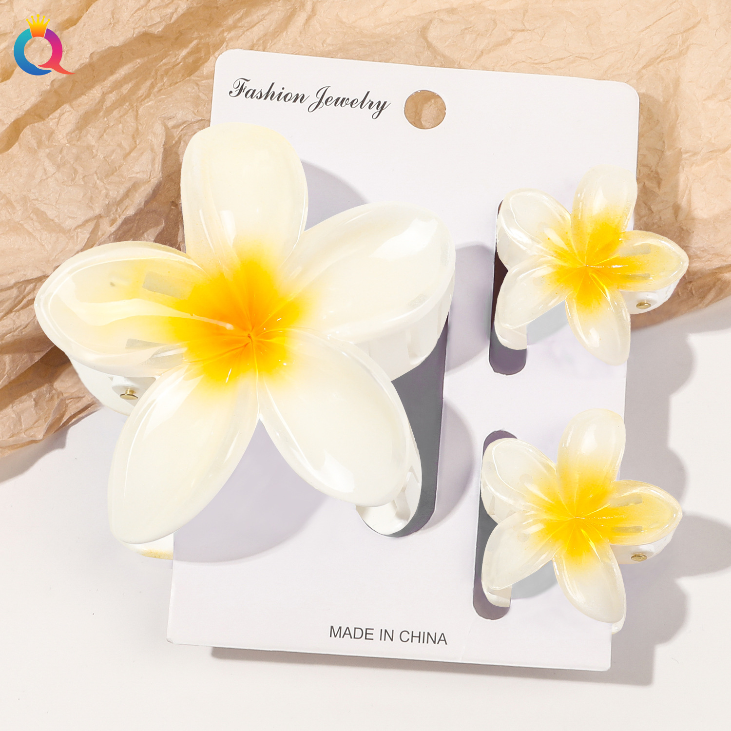 奇阅跨境欧美热销鸡蛋花发夹套装紫荆花朵抓夹女度假后脑勺鲨鱼夹