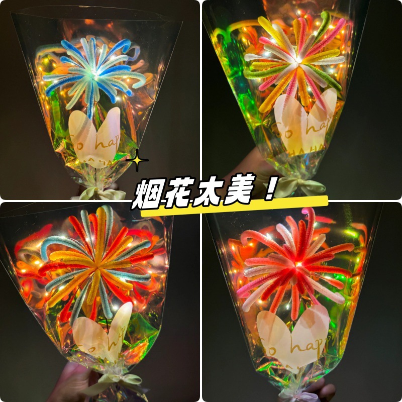 新年烟花扭扭棒手捧花束手工diy材料包烟火儿童自制过年装饰礼物