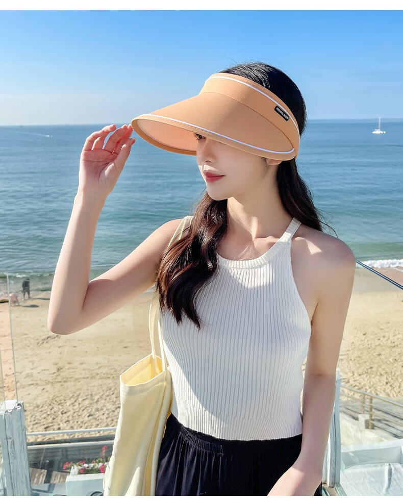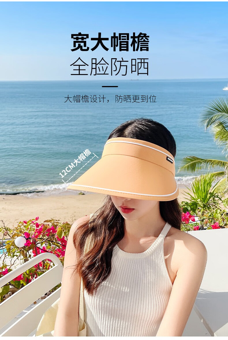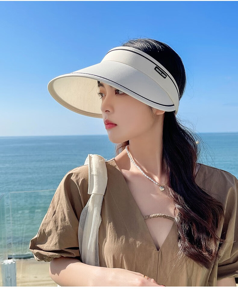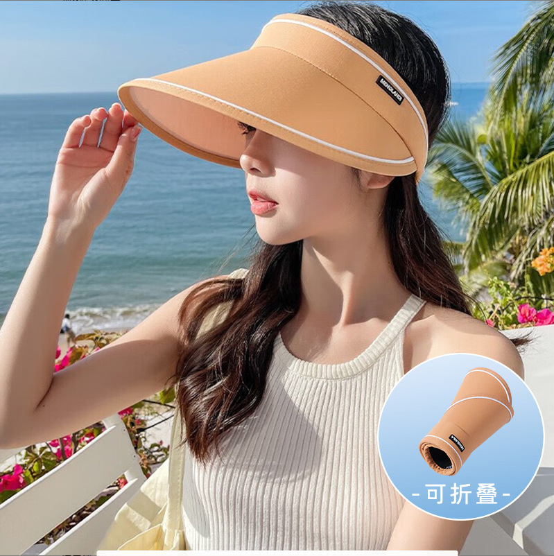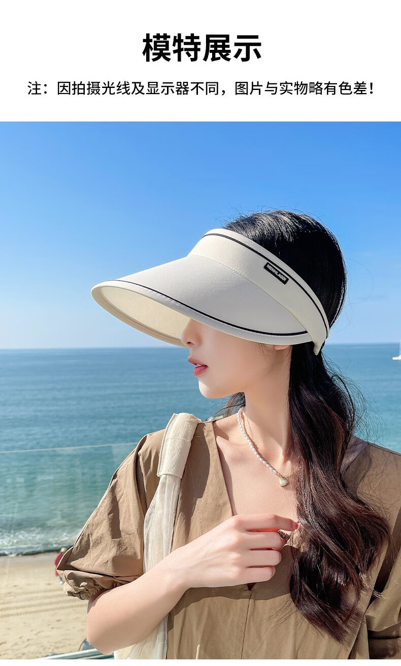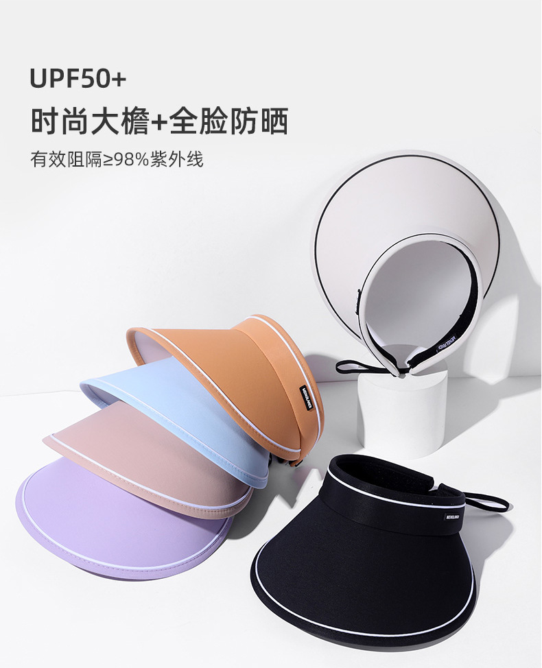 新款夏季卷卷字母女士防晒帽可调节透气空顶帽成人骑行户外遮阳帽