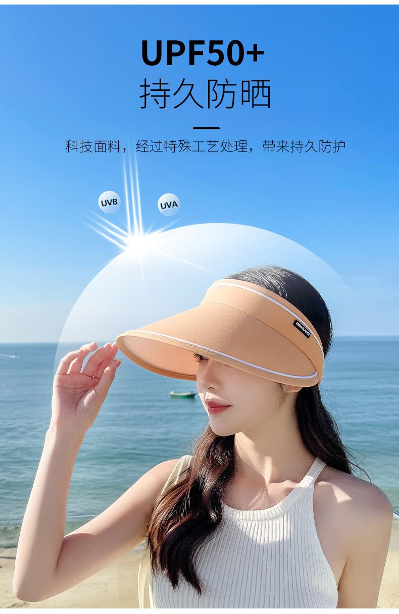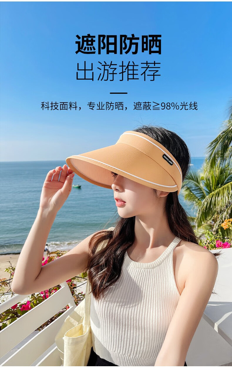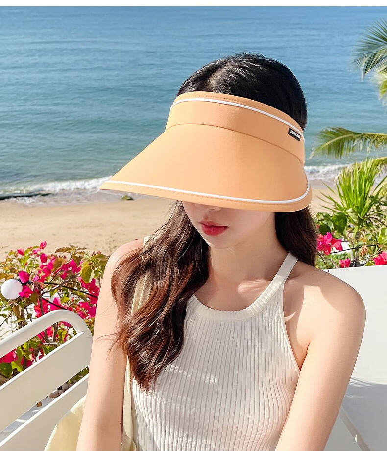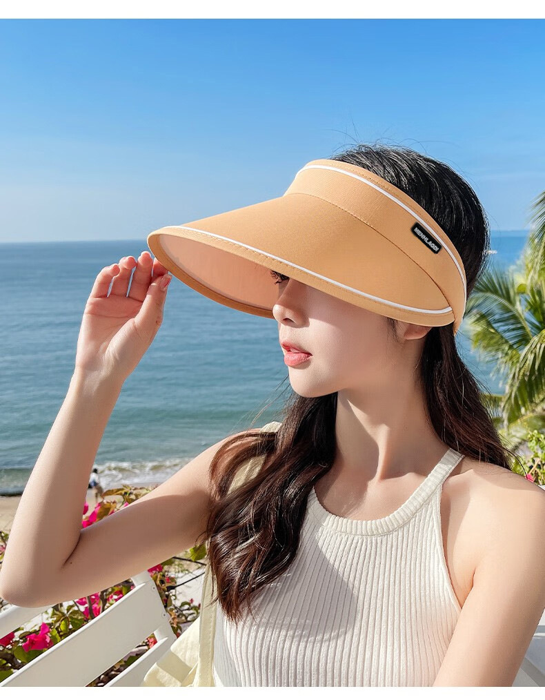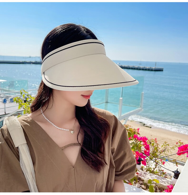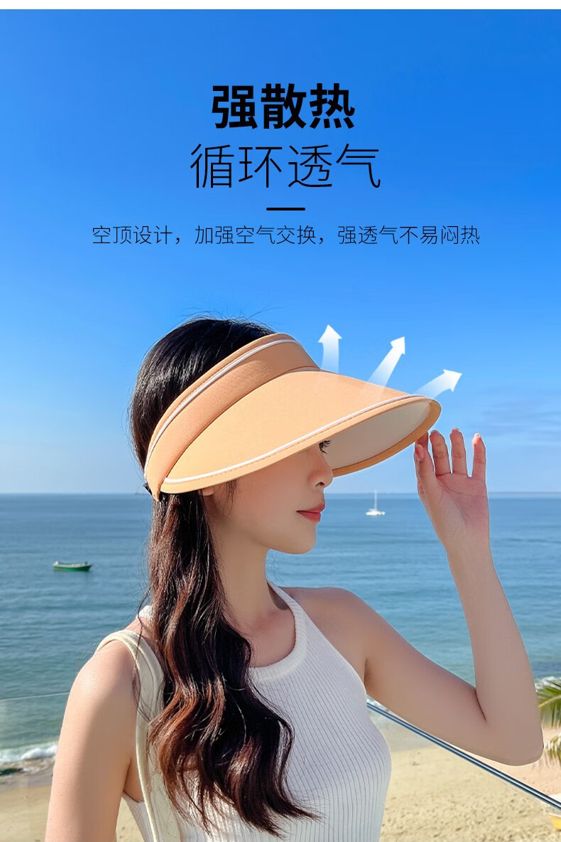 新款夏季卷卷字母女士防晒帽可调节透气空顶帽成人骑行户外遮阳帽