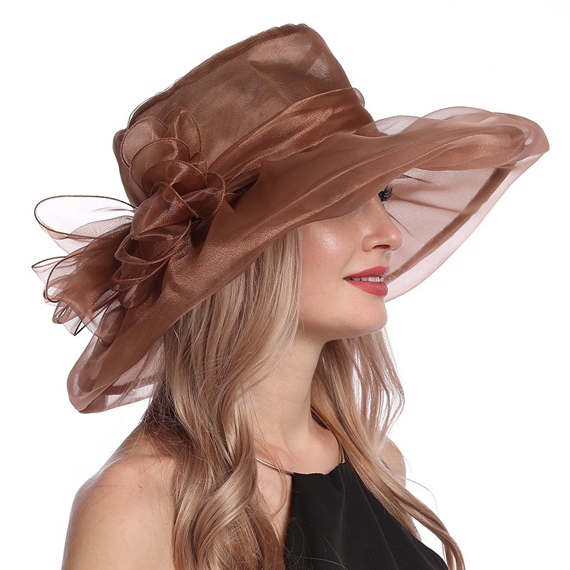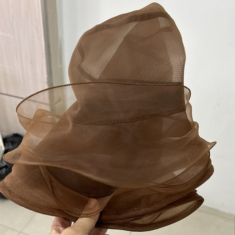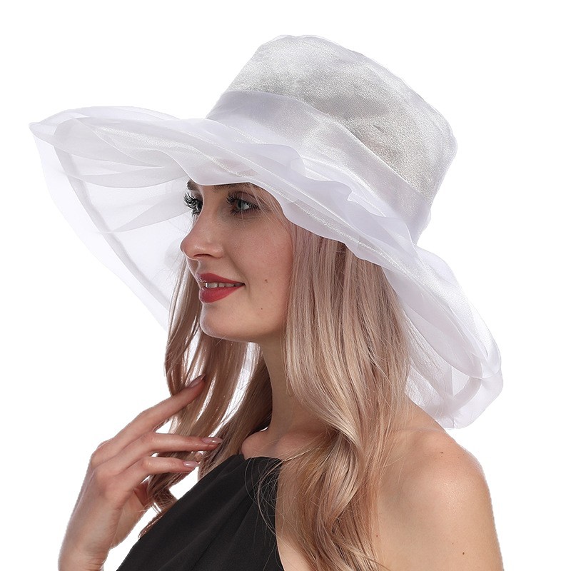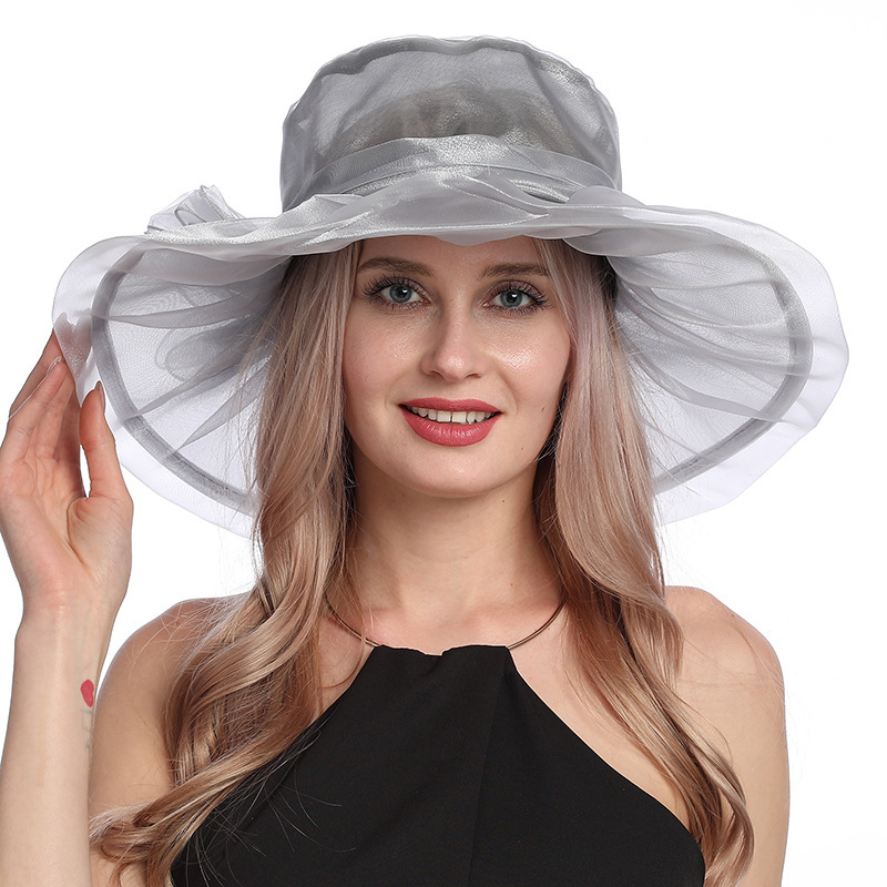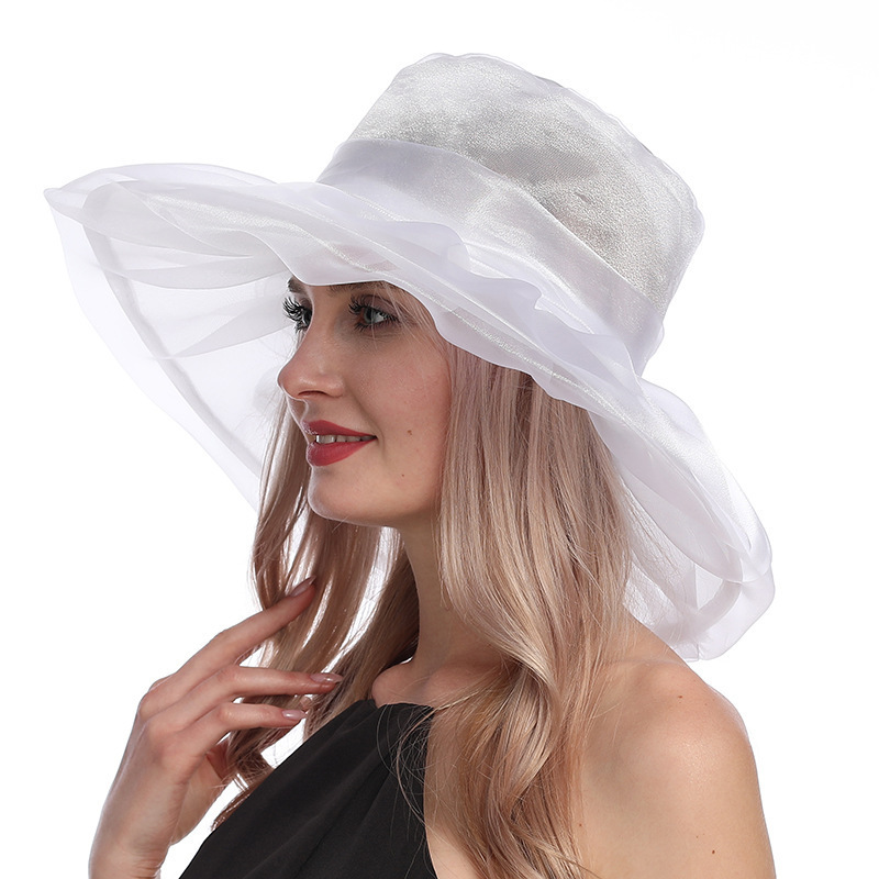 夏季帽子女欧美大头围欧根纱大檐帽可折叠网纱防紫外线防晒遮阳帽