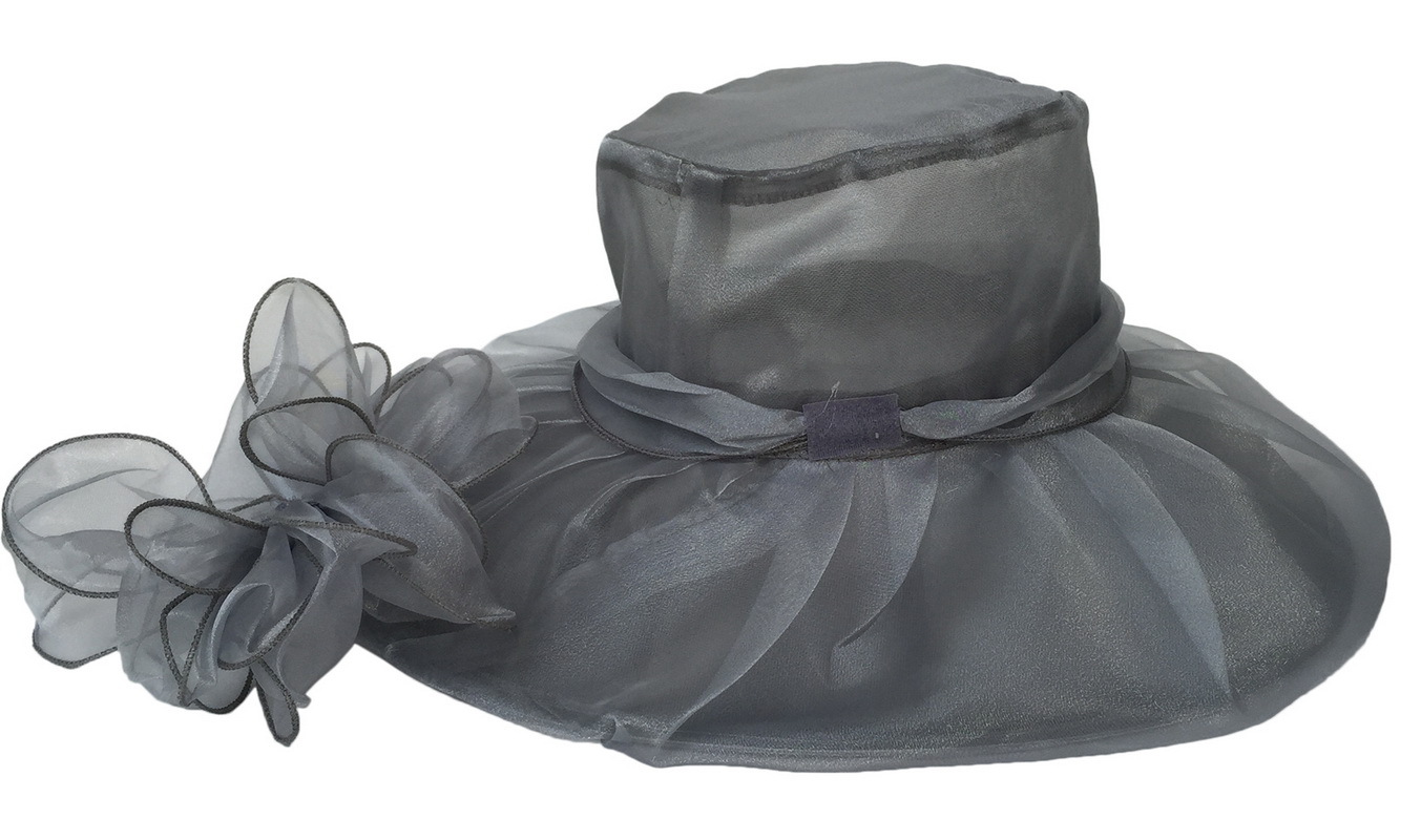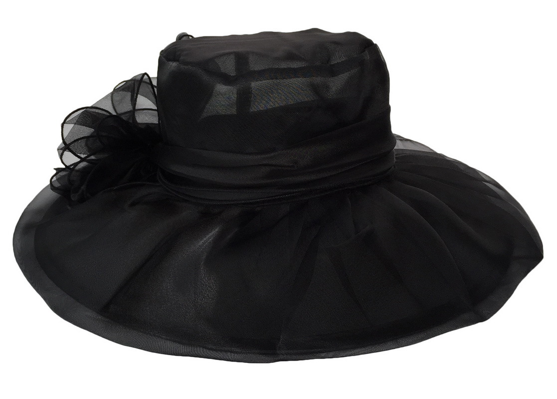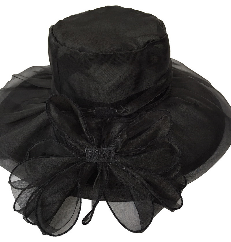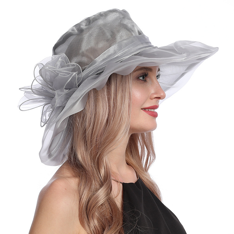 夏季帽子女欧美大头围欧根纱大檐帽可折叠网纱防紫外线防晒遮阳帽