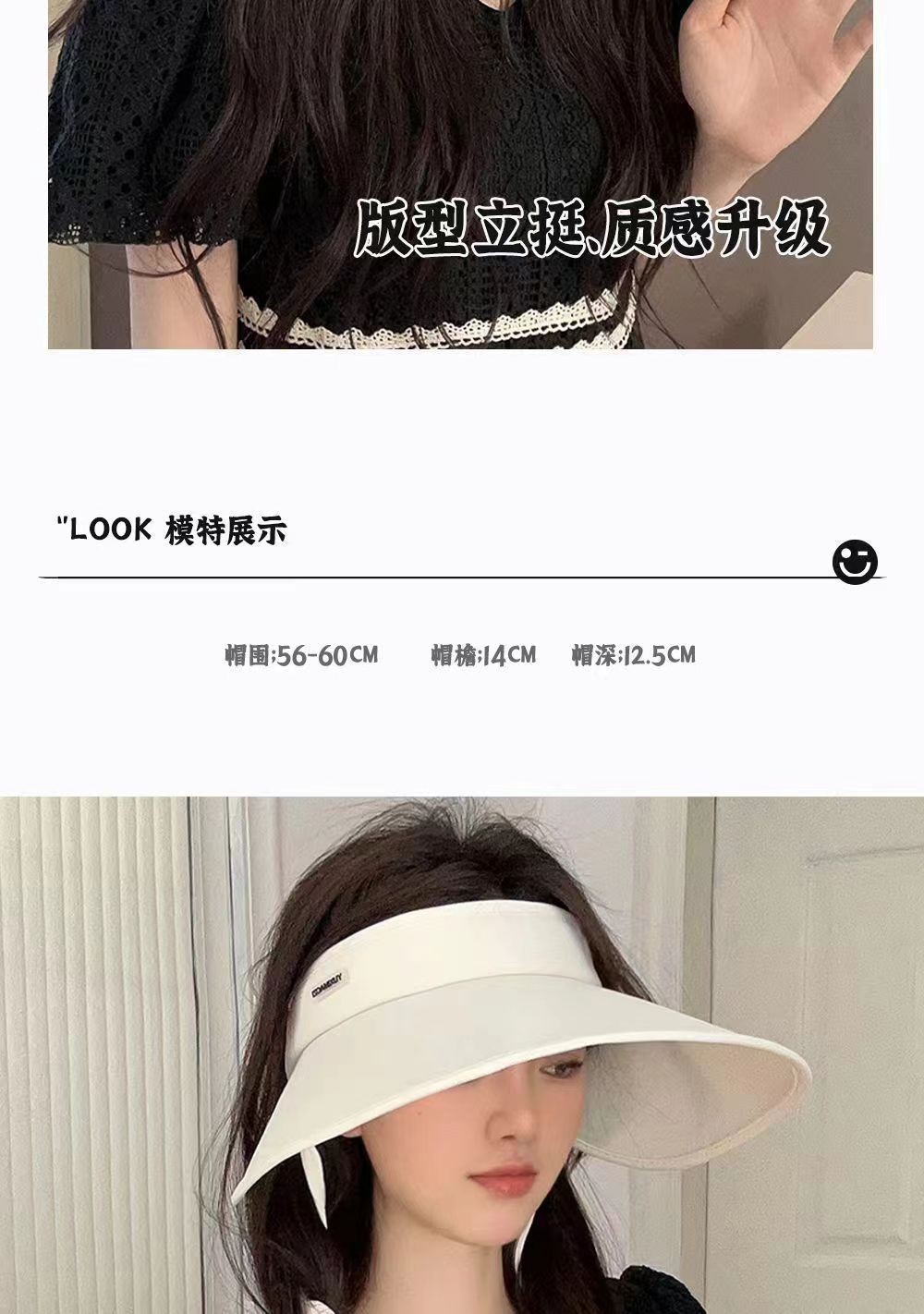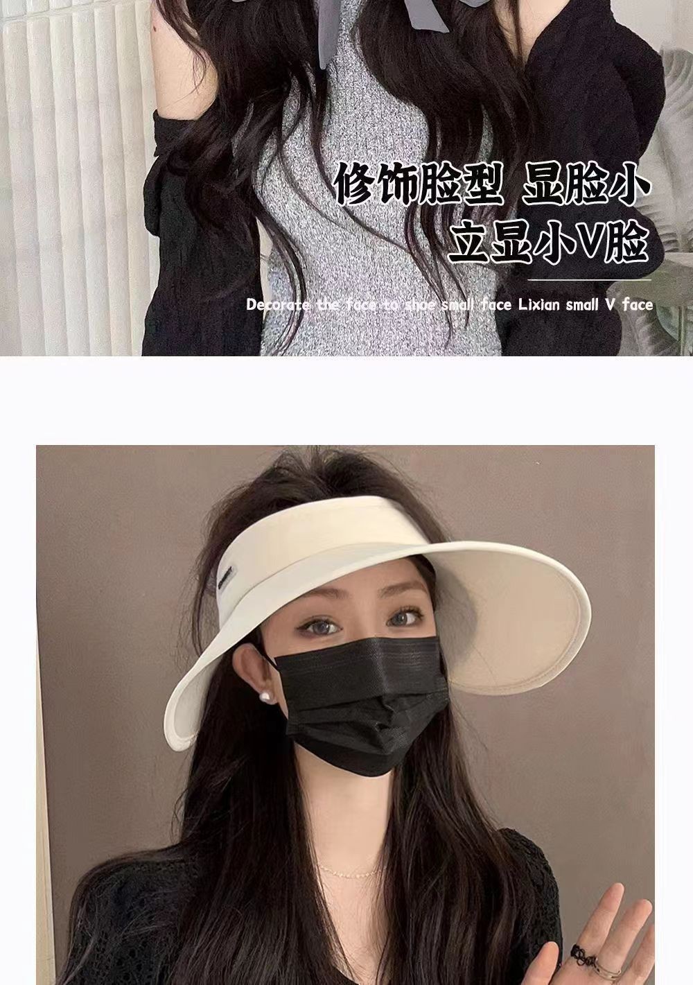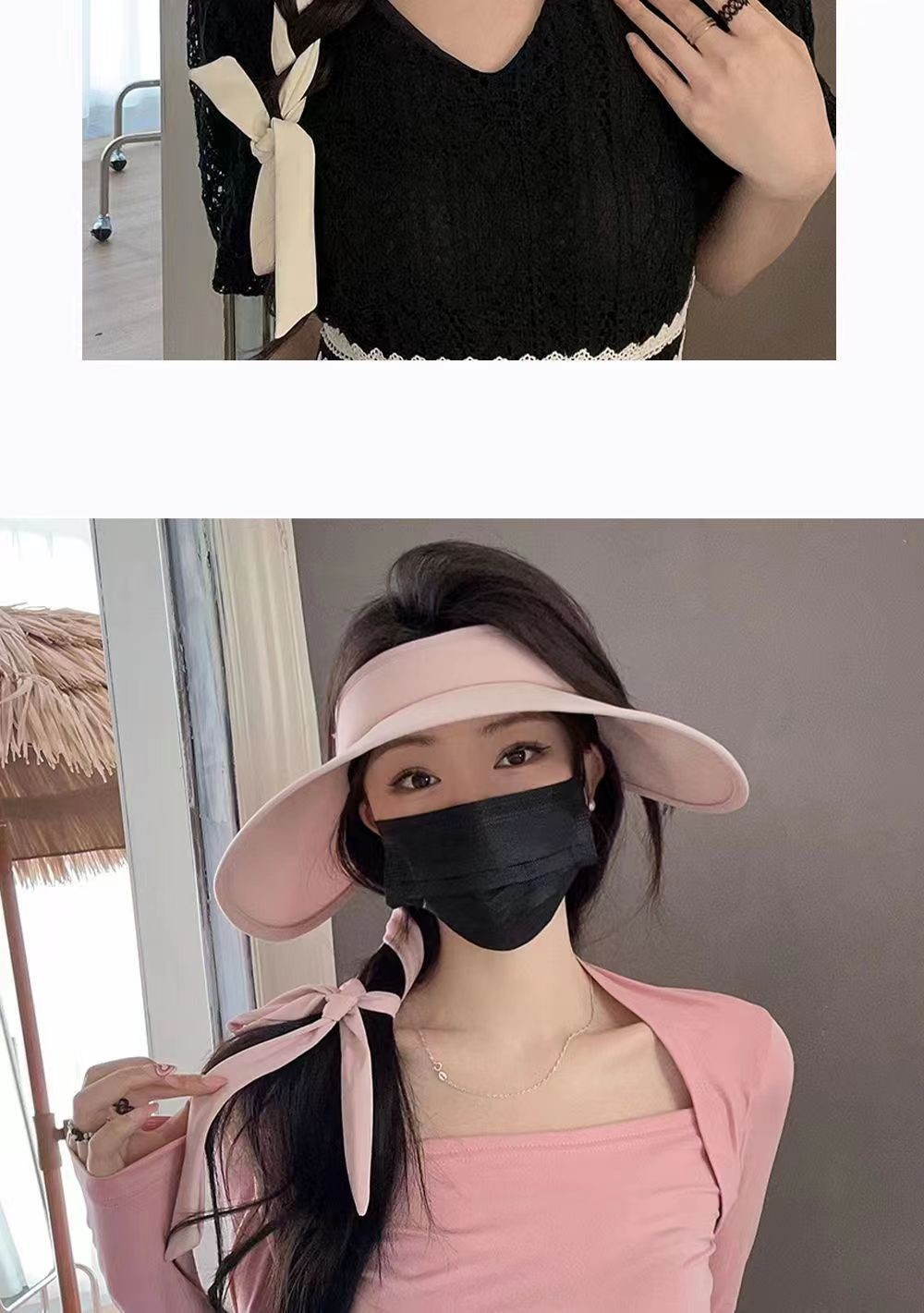 2026夏季新款遮阳帽时尚绑带UV太阳帽大檐透气户外冰丝防晒空顶帽
