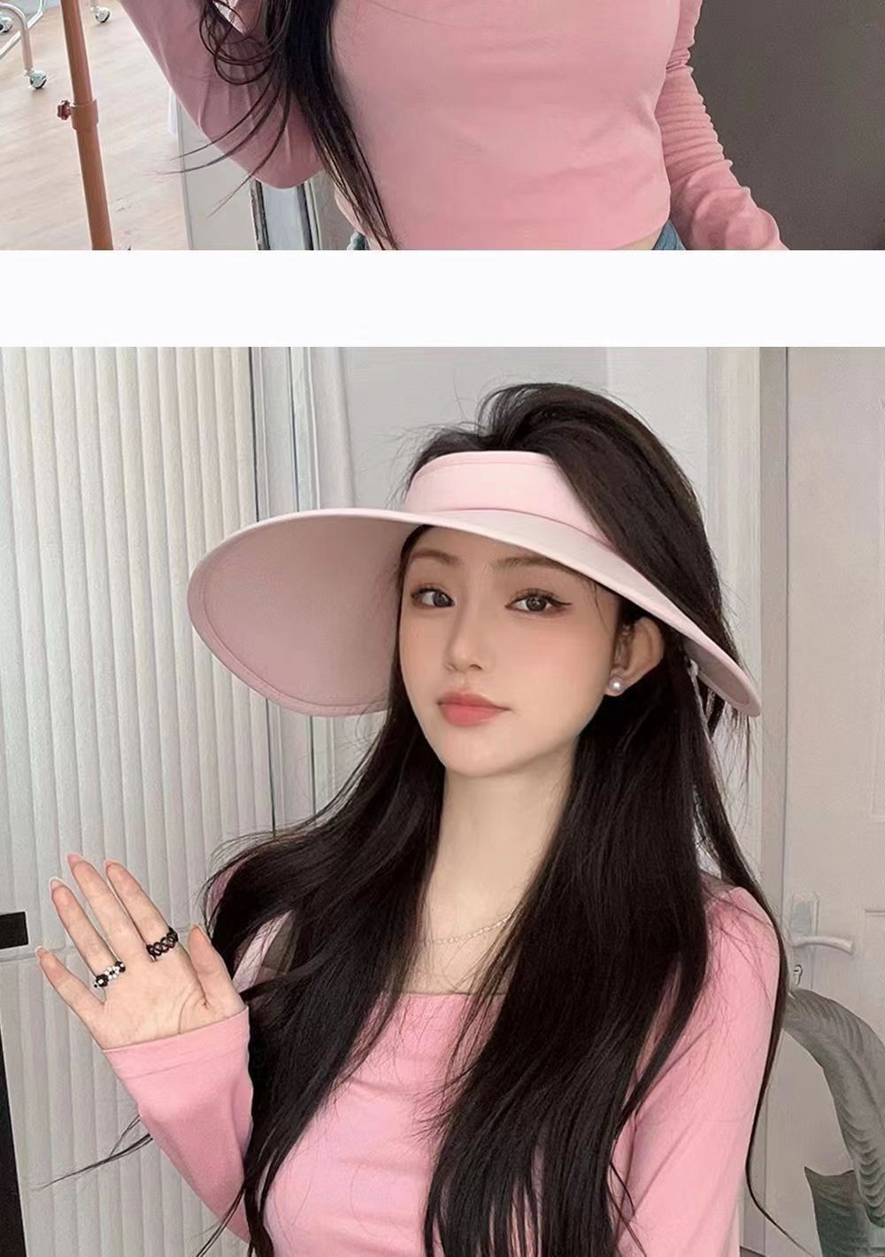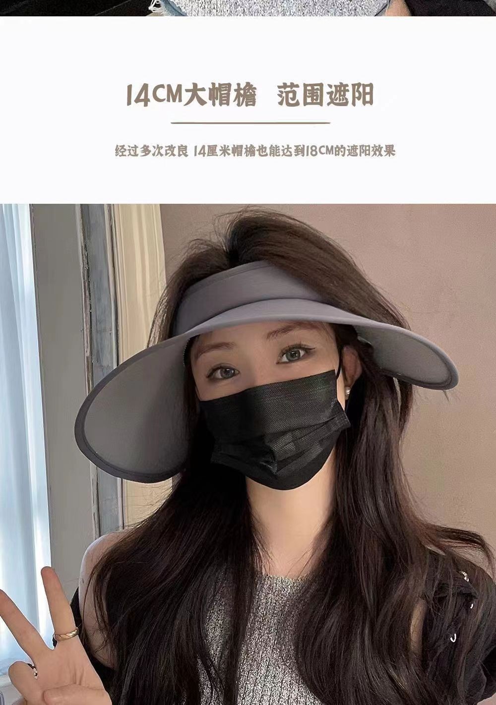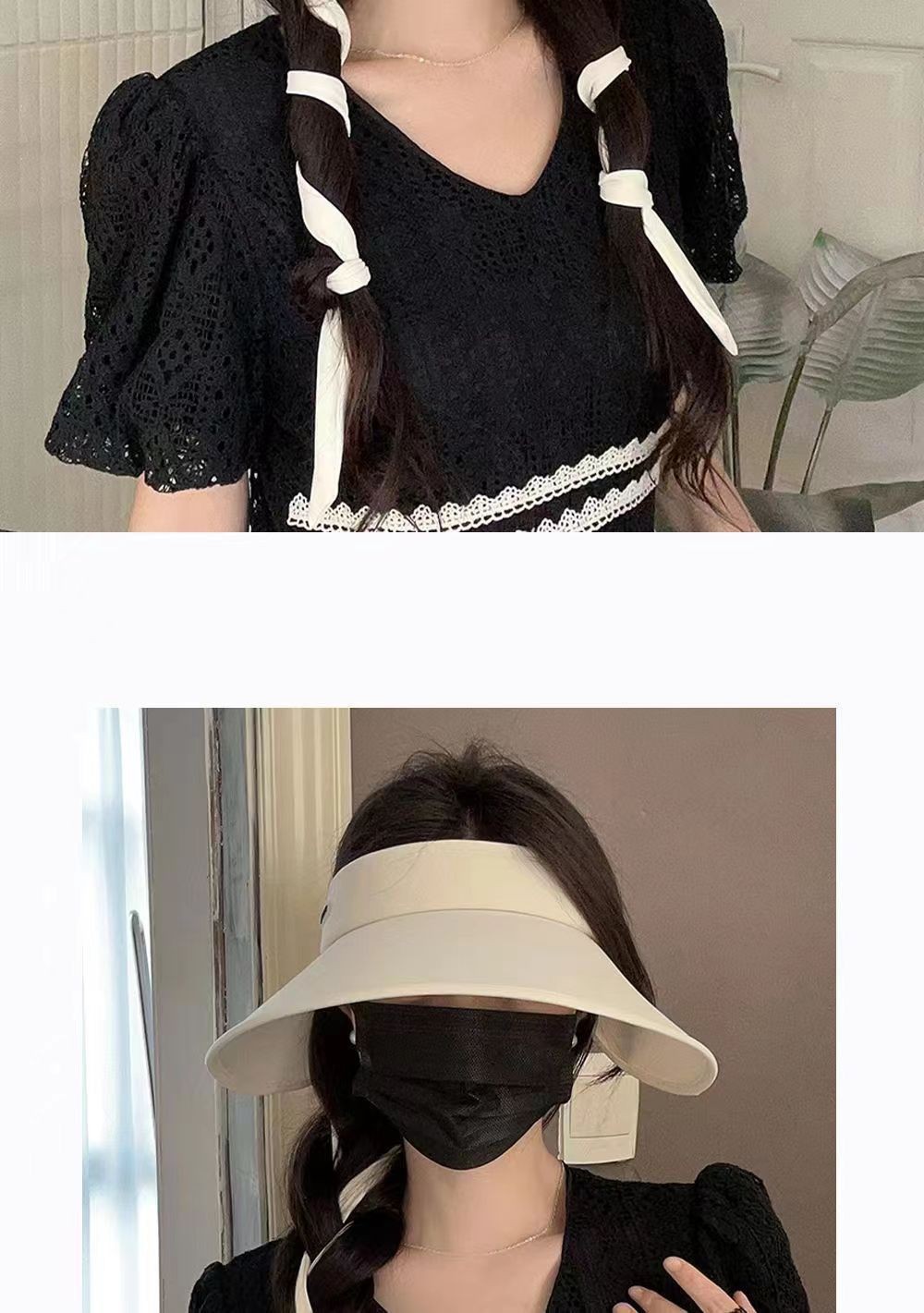 2026夏季新款遮阳帽时尚绑带UV太阳帽大檐透气户外冰丝防晒空顶帽