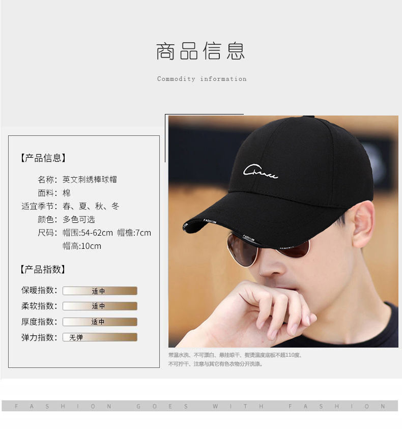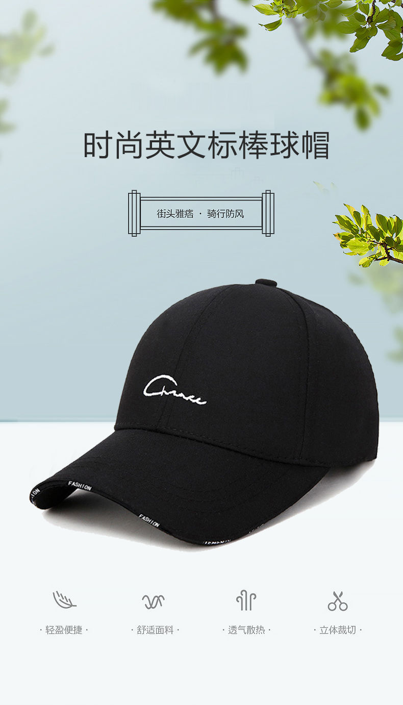 帽子男四季潮款简约刺绣字母宽檐鸭舌帽女户外休闲防晒青年遮阳帽