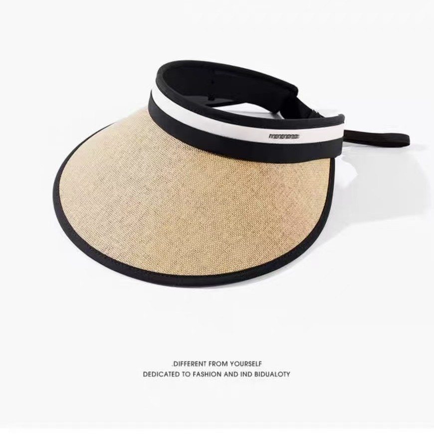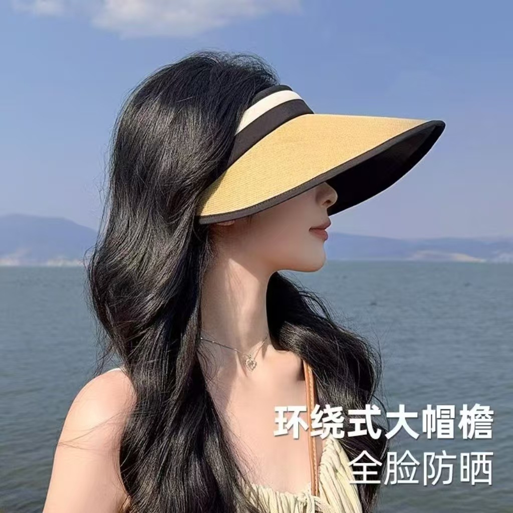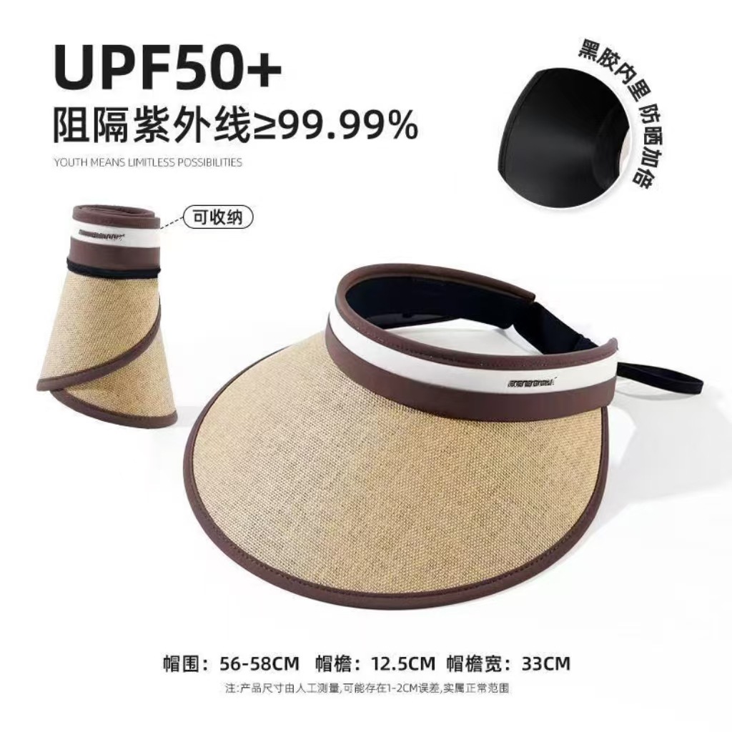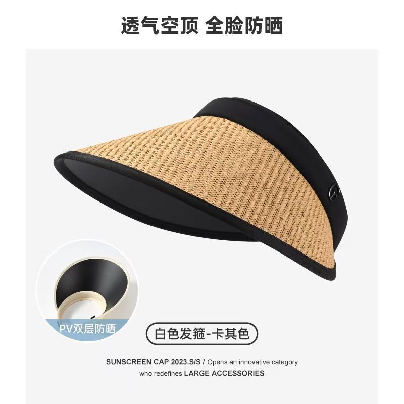 2025新款草编太阳帽子黑胶空顶帽女春夏季防晒帽大檐遮阳防紫外线