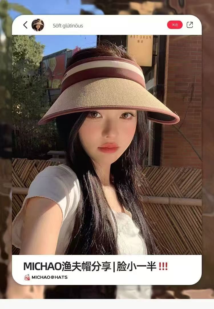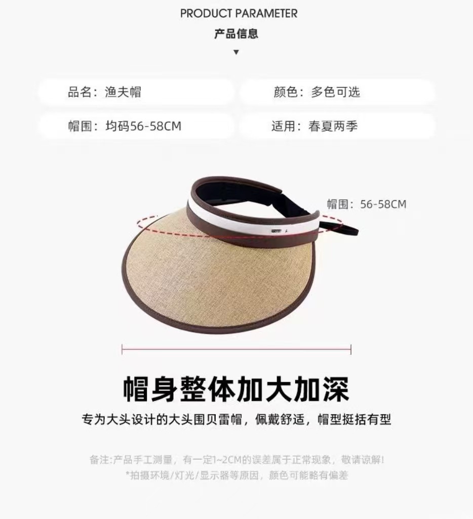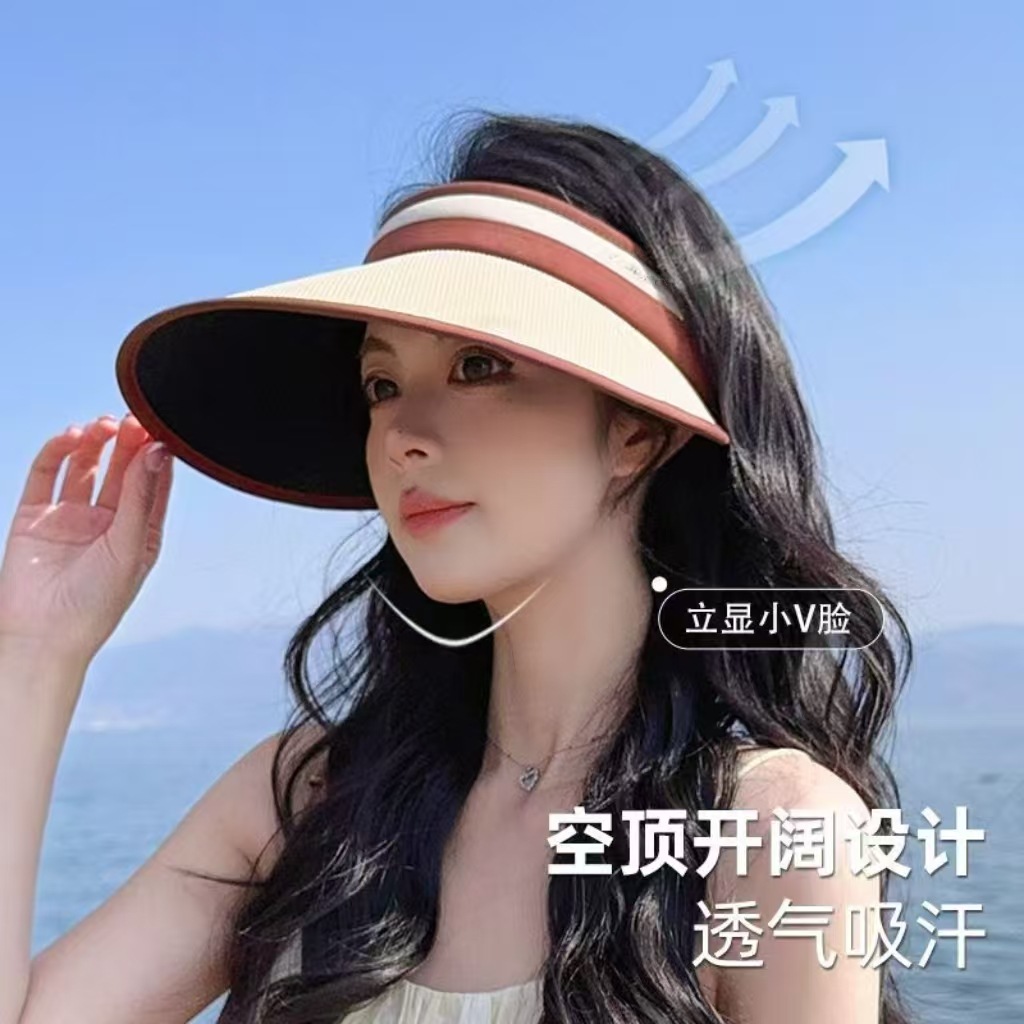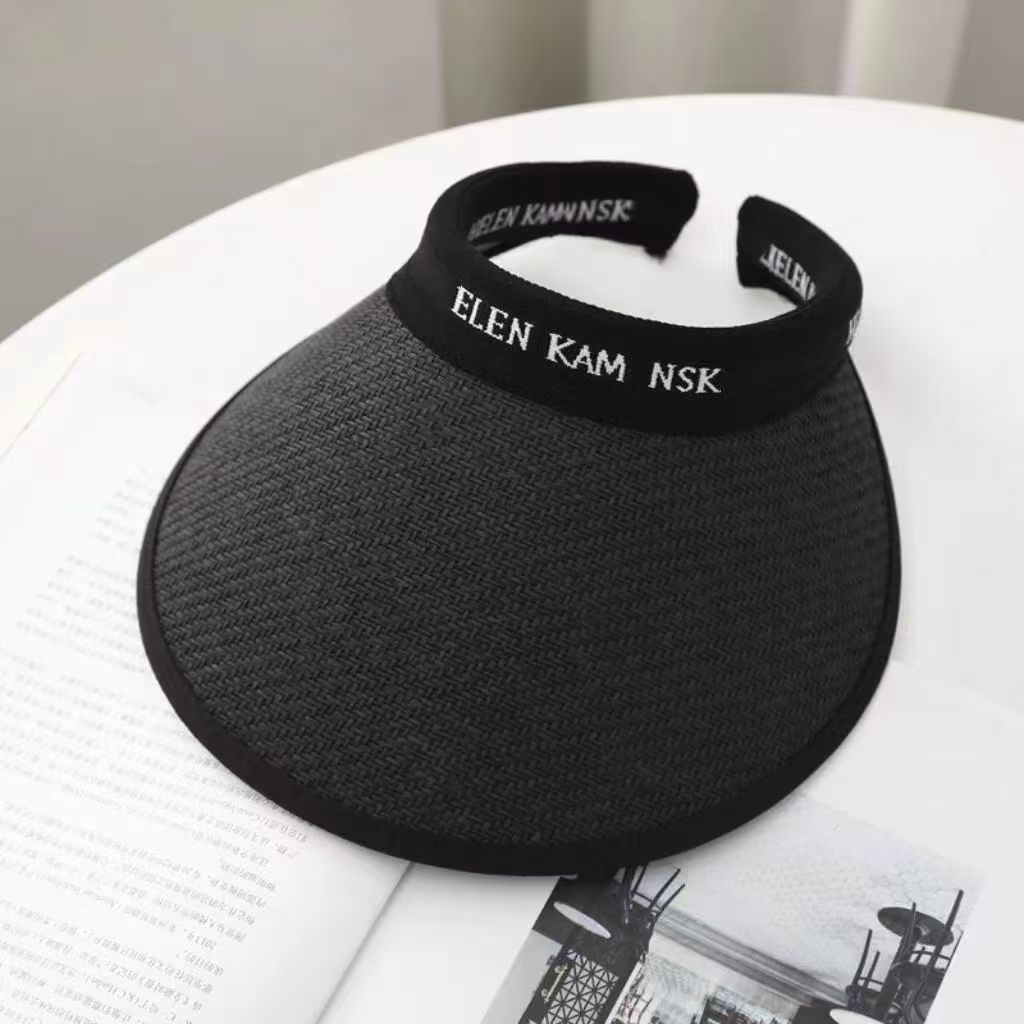 2025新款草编太阳帽子黑胶空顶帽女春夏季防晒帽大檐遮阳防紫外线