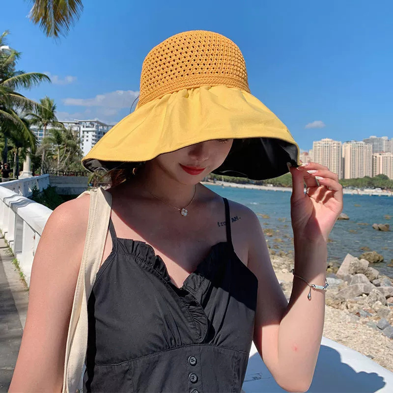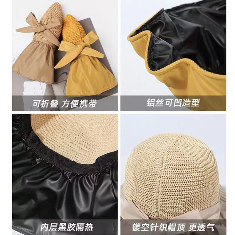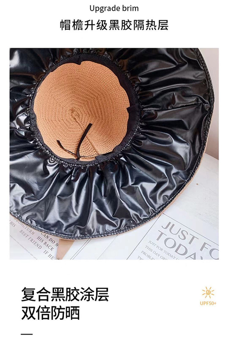 防晒帽女黑胶新款大帽檐渔夫帽子可折叠太阳帽防紫外线遮脸遮阳帽
