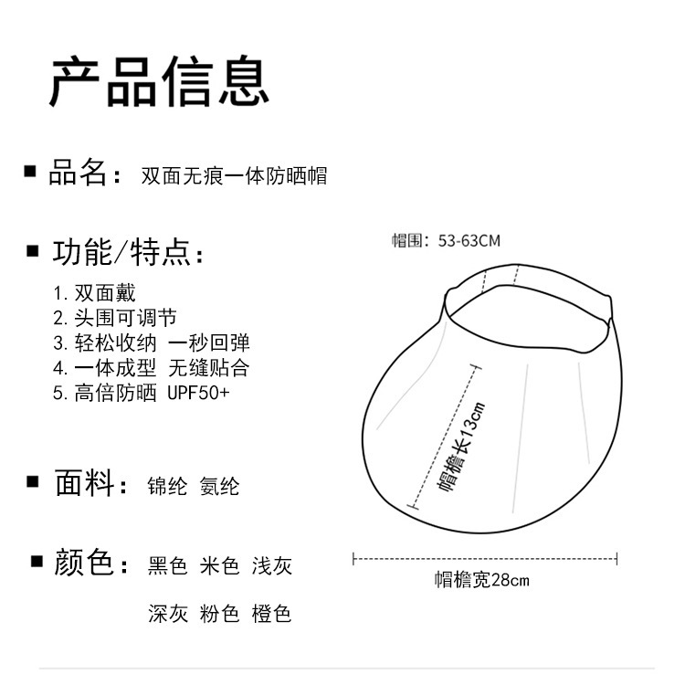 无痕一体防晒帽女夏季遮阳可折叠遮阳帽户外防紫外线空顶太阳帽子