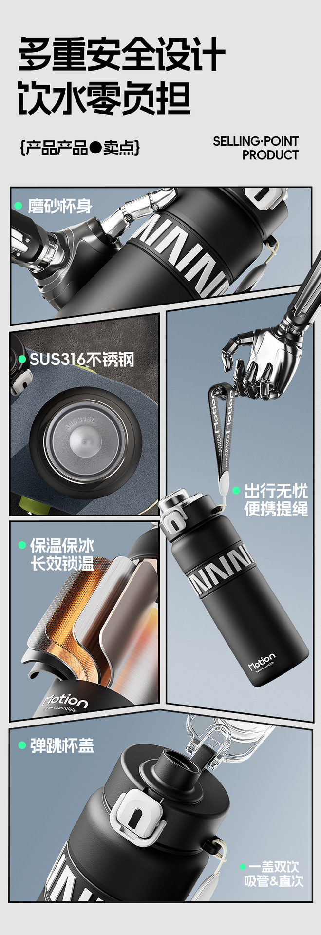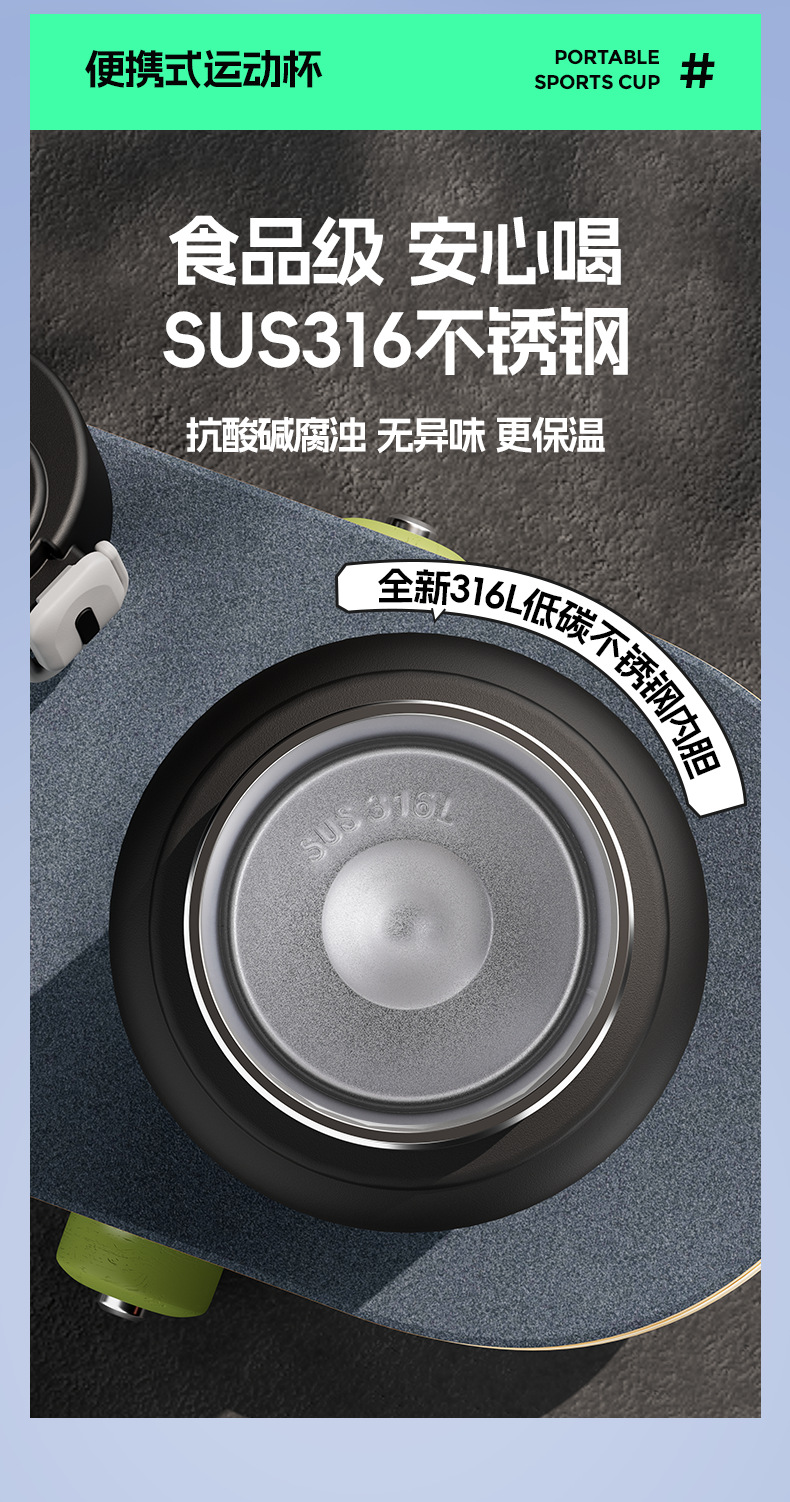 水杯大容量316L不锈钢保温杯子男女学生儿童上学专用运动水壶吸管