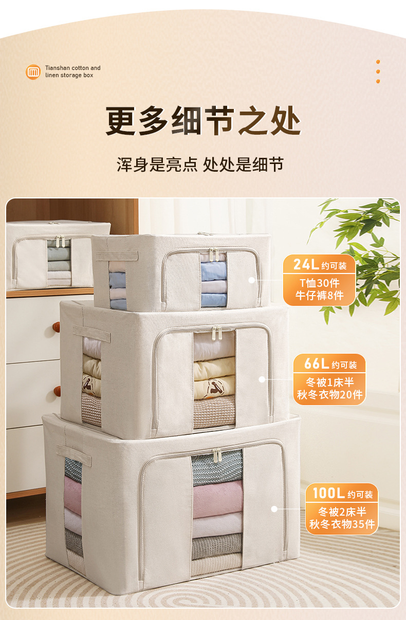 天山棉麻5.0mm加粗钢架收纳箱家用可折叠衣服收纳盒收纳箱pp板