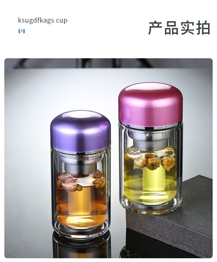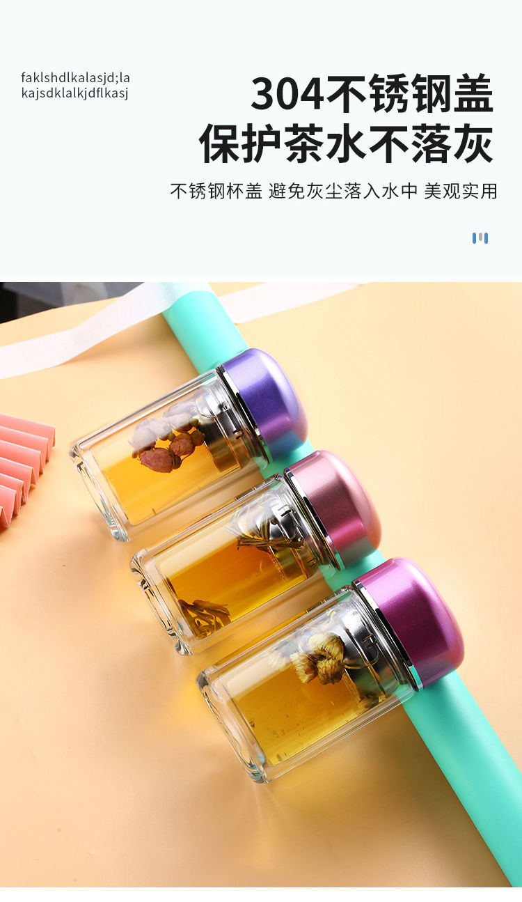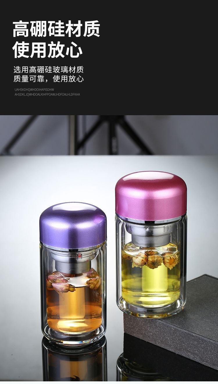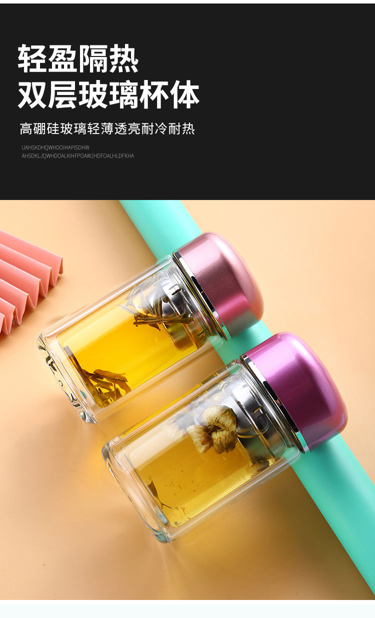 双层玻璃杯水晶加厚杯茶水分离隔热高硼硅印字女士便携高颜值水杯