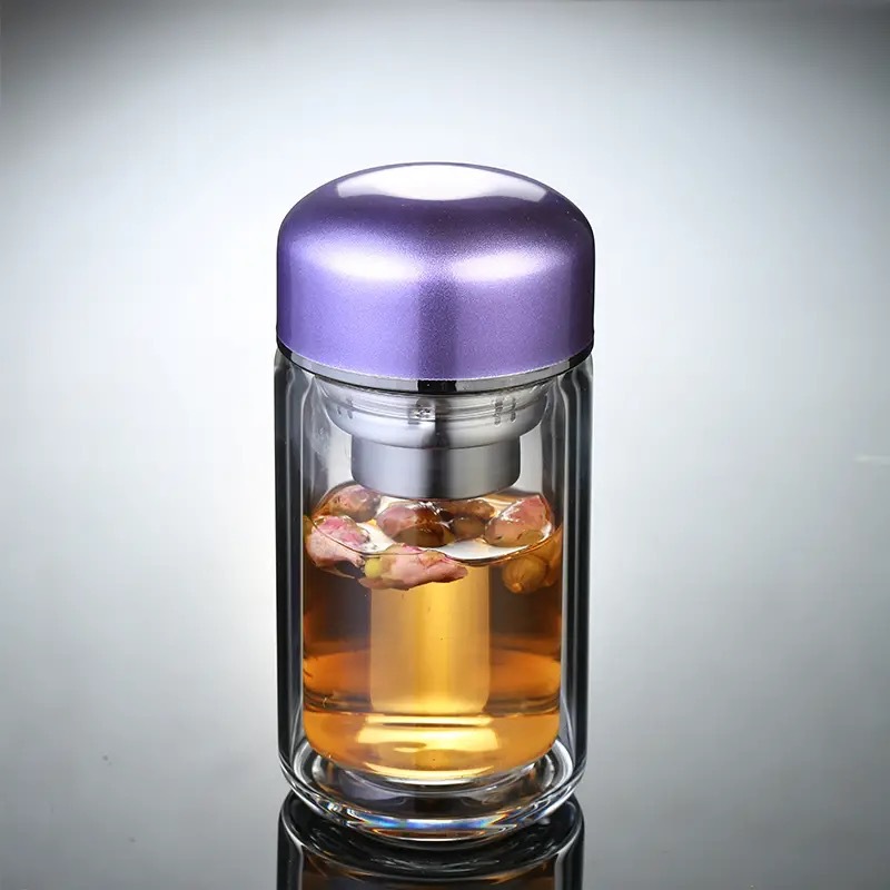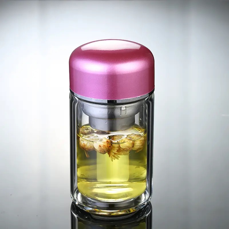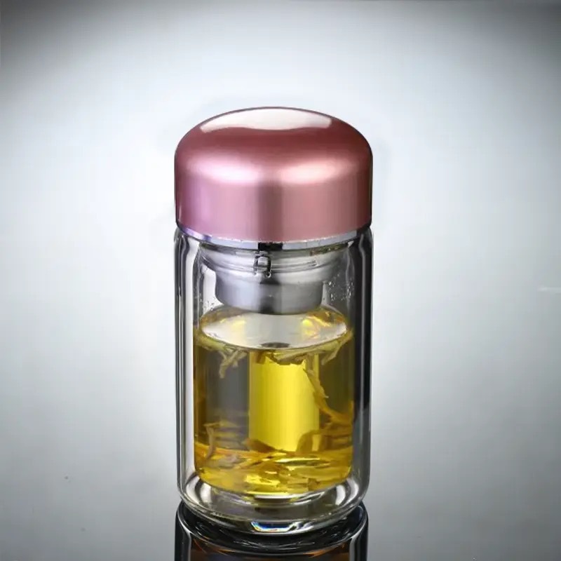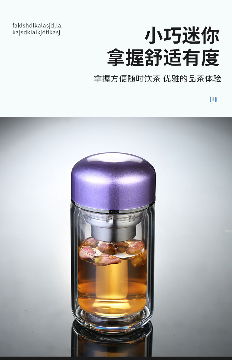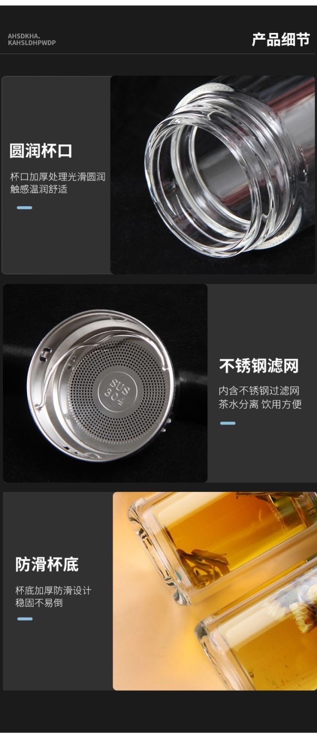 双层玻璃杯水晶加厚杯茶水分离隔热高硼硅印字女士便携高颜值水杯