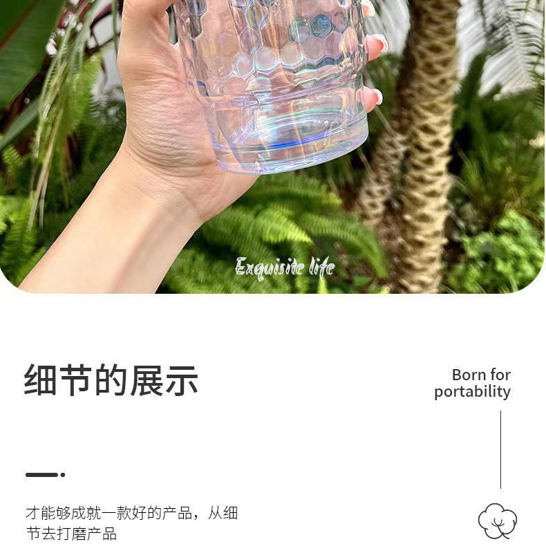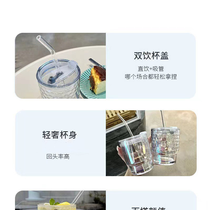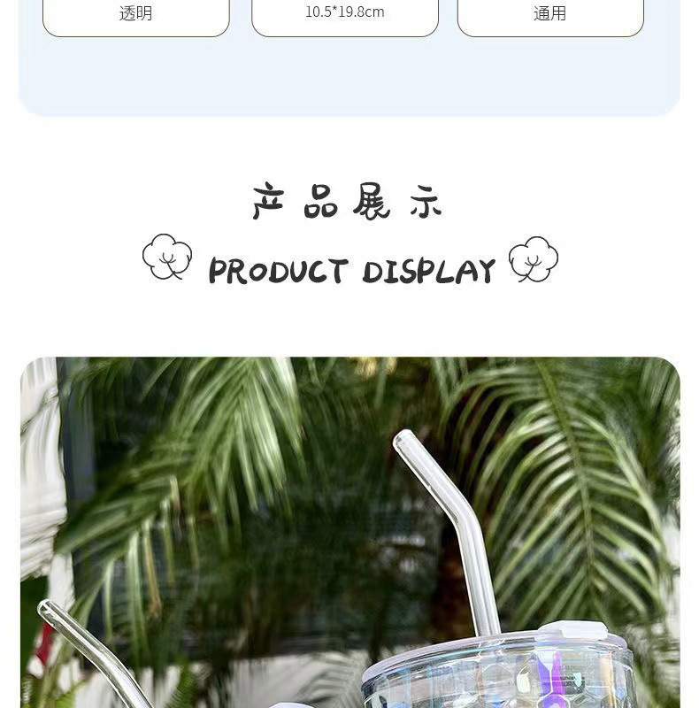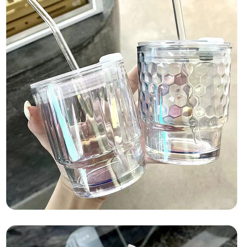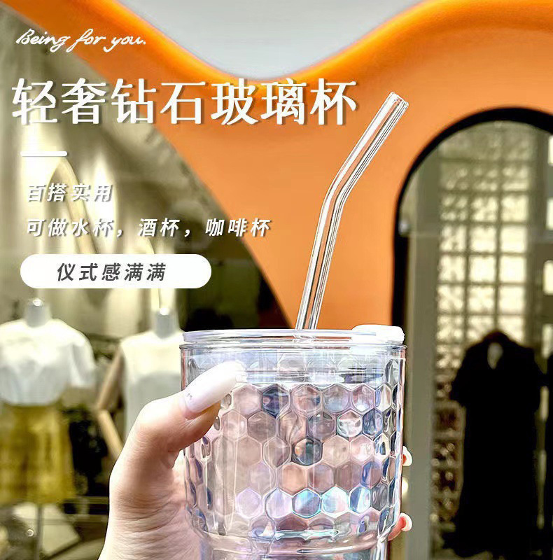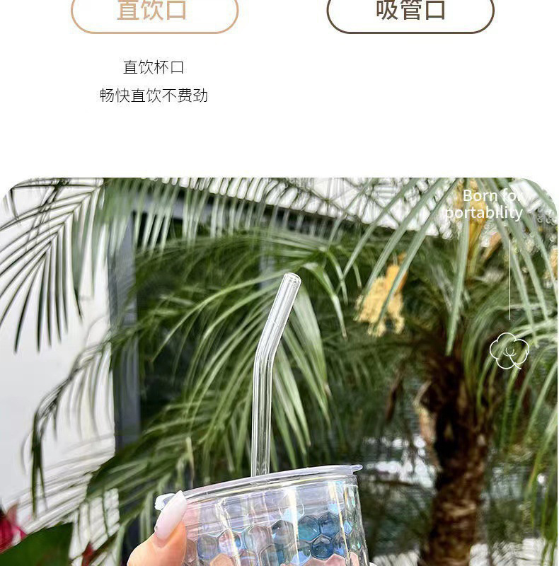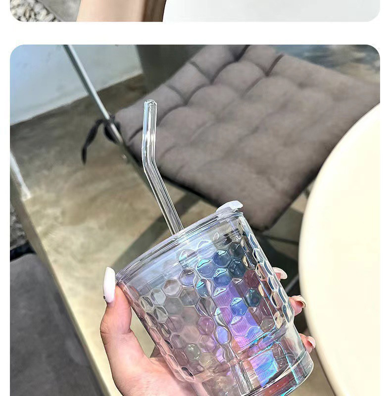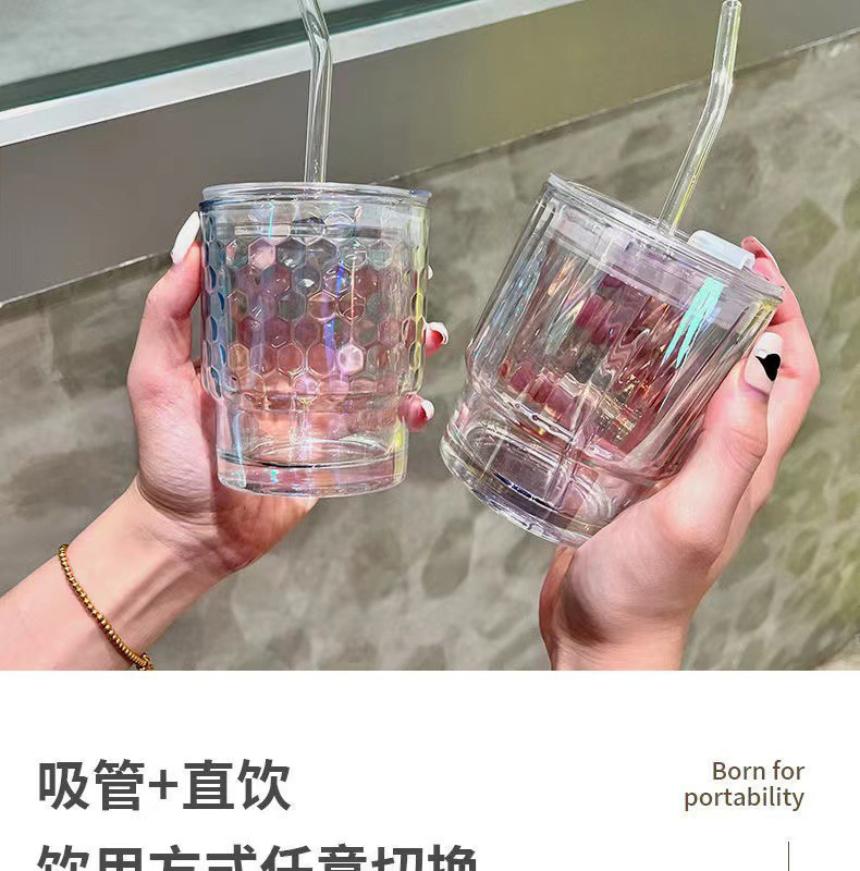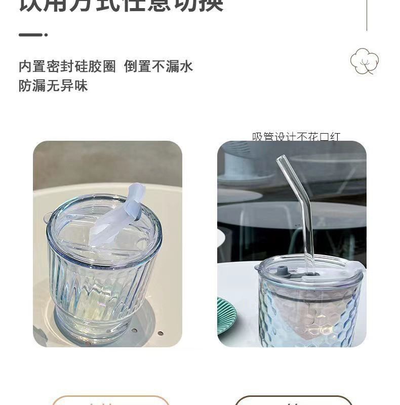 网红镭射炫彩玻璃吸管杯高颜值带盖吸管网红竹节杯琉璃杯时尚礼品