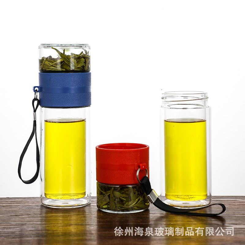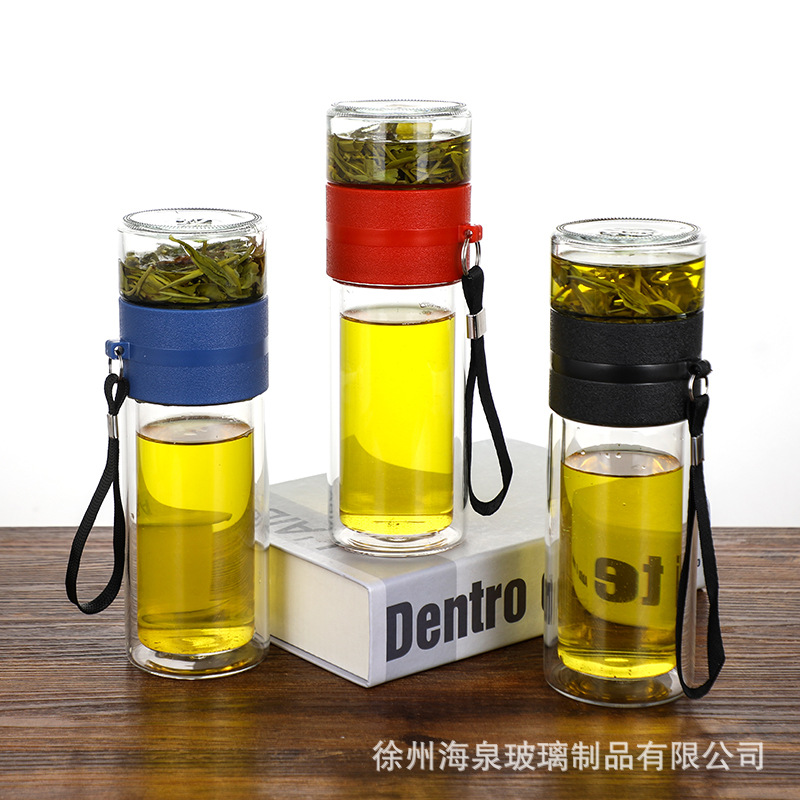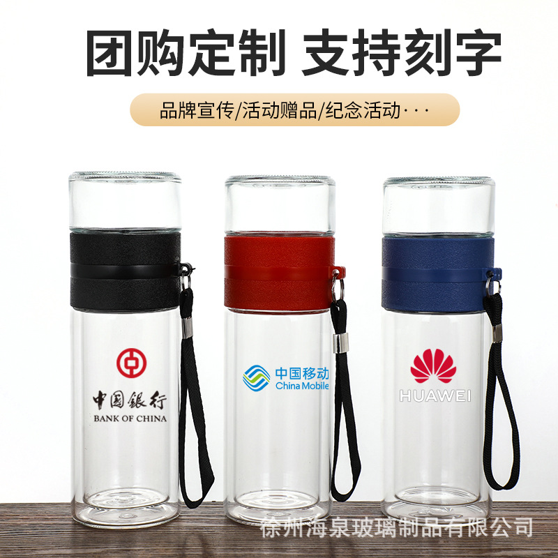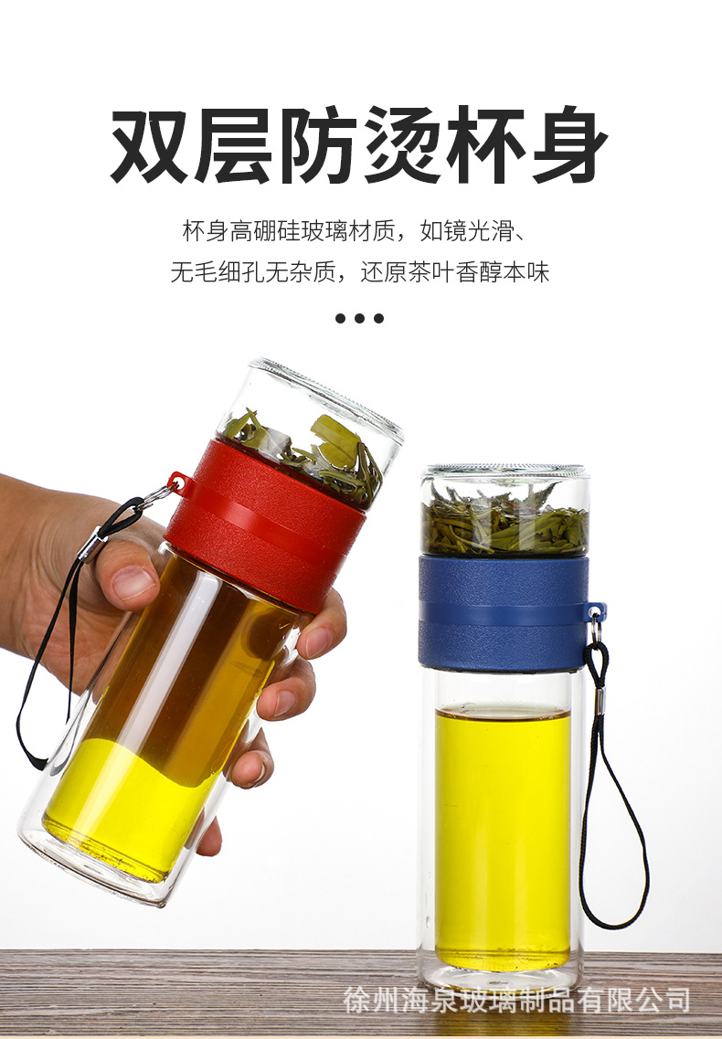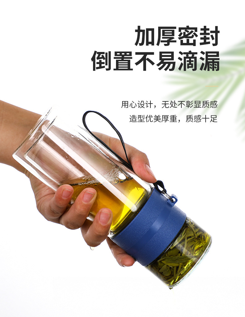 商务水杯便携茶漏过滤杯子批发节日礼品水杯高硼硅隔热茶水分离杯