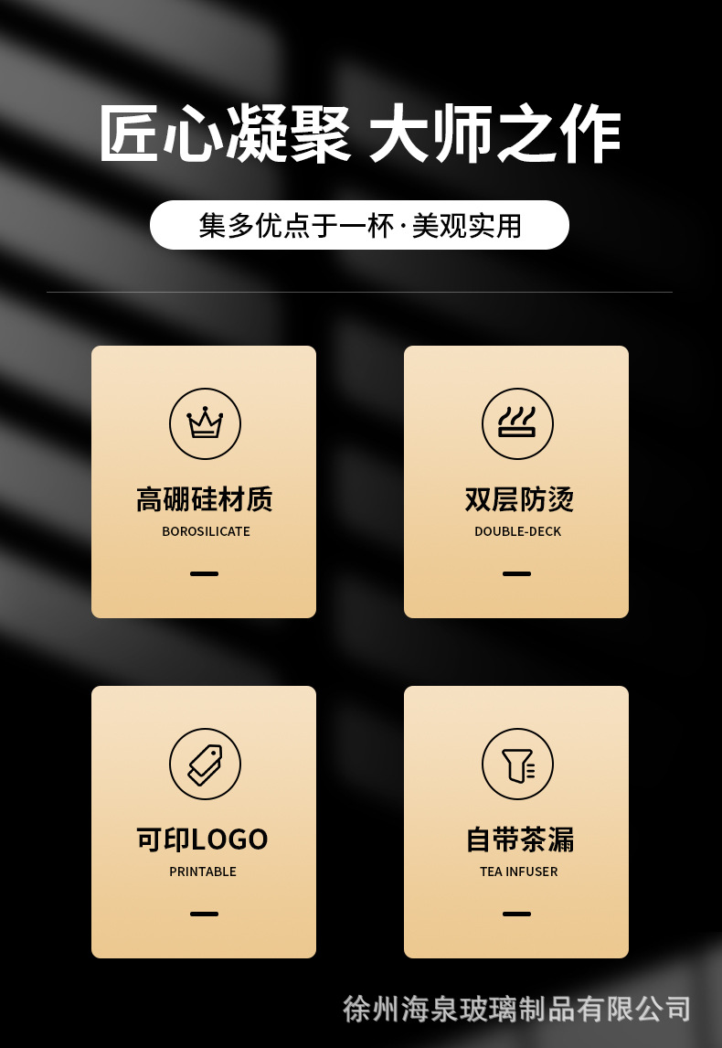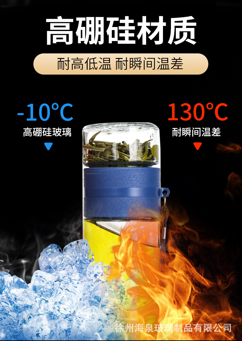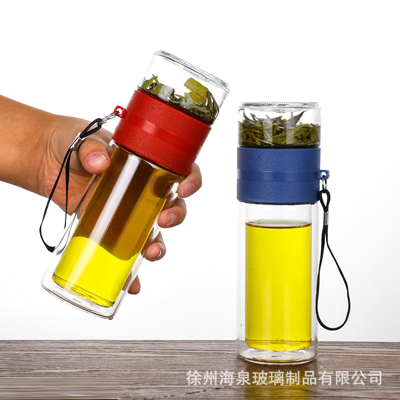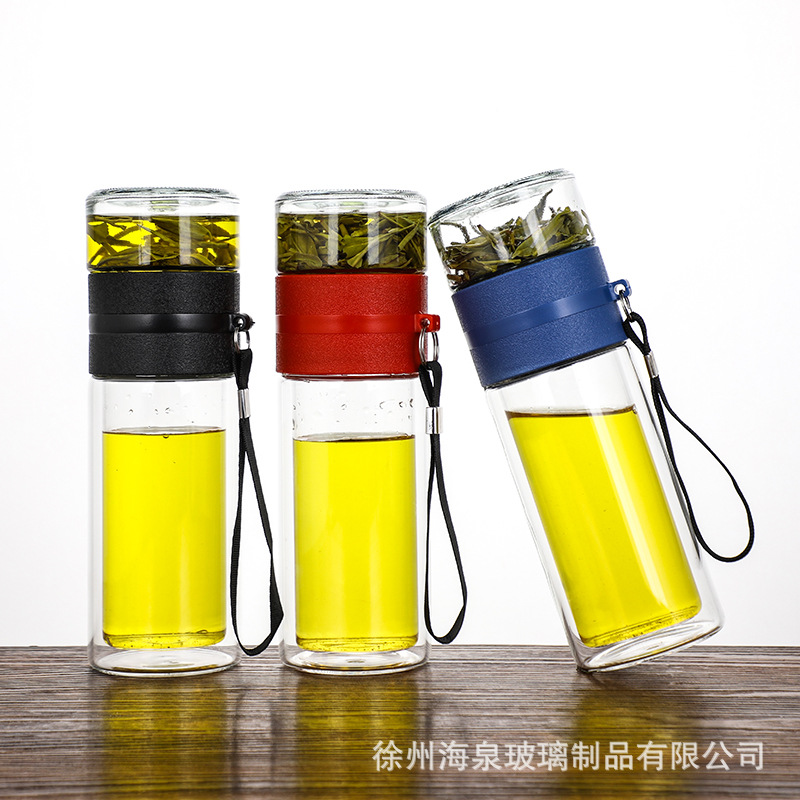 商务水杯便携茶漏过滤杯子批发节日礼品水杯高硼硅隔热茶水分离杯